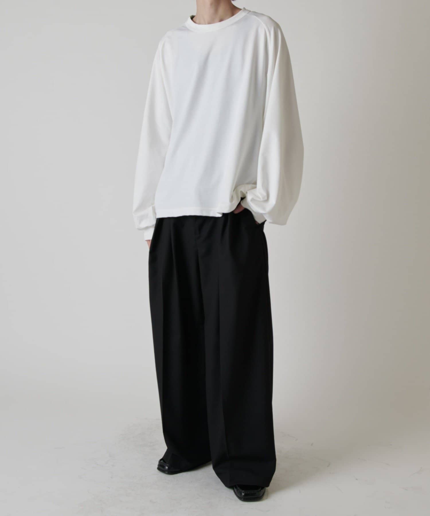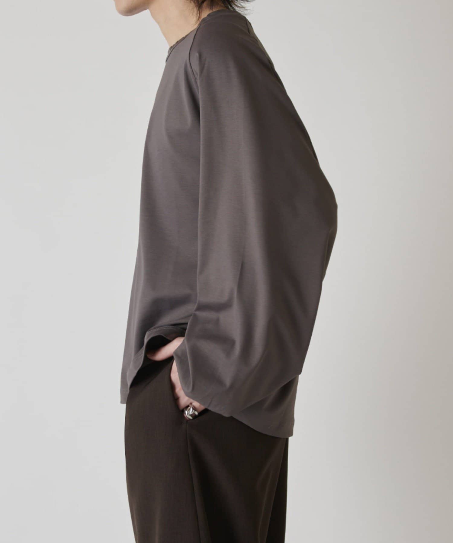 ・通常のカットソーに比べて身幅やアームを広く設定することにより、スウェットライクなシルエットに仕上げました。