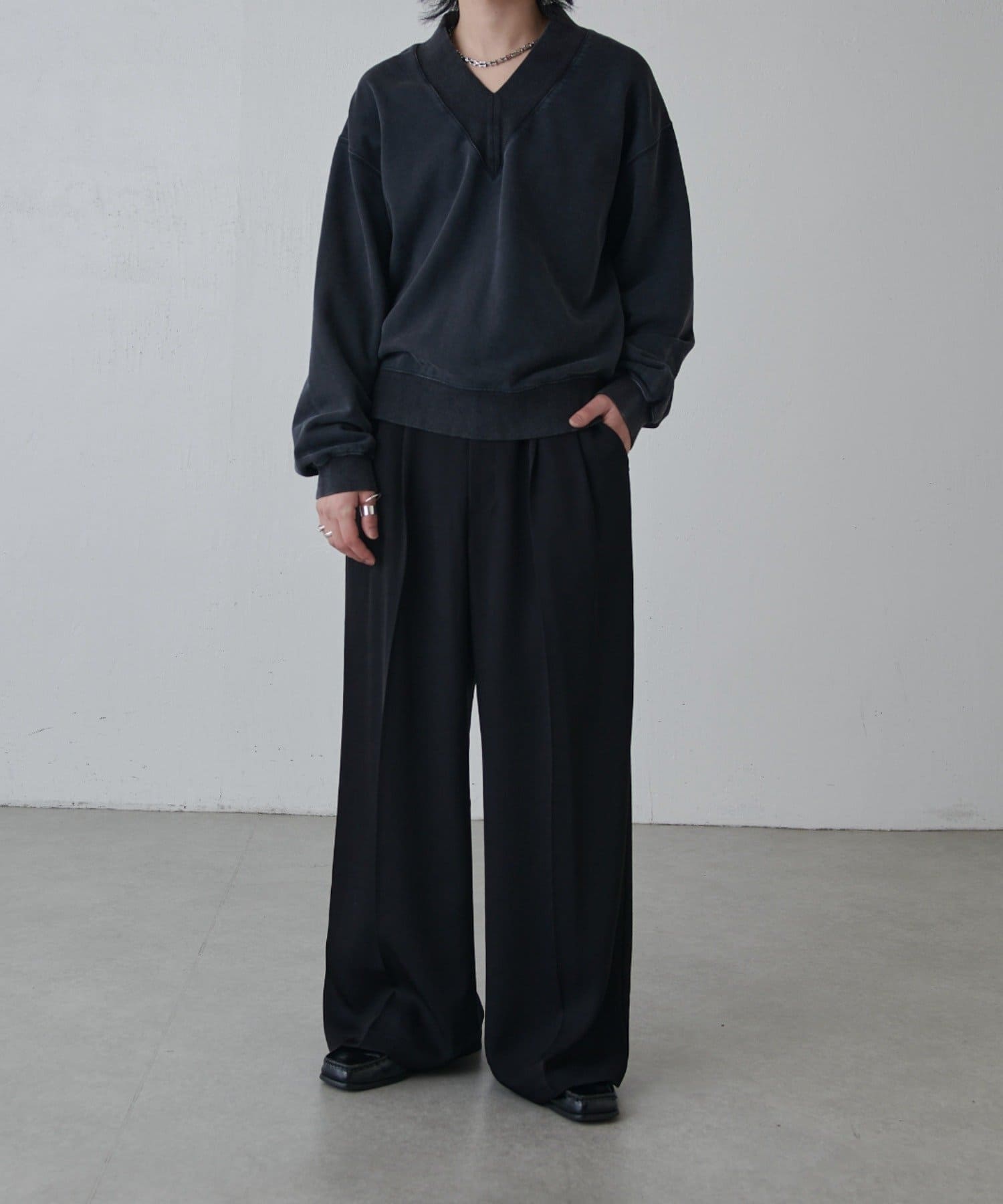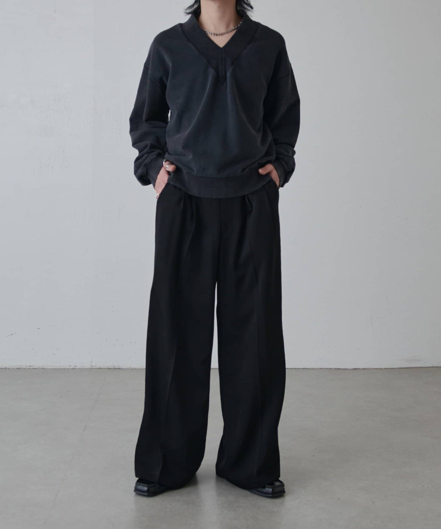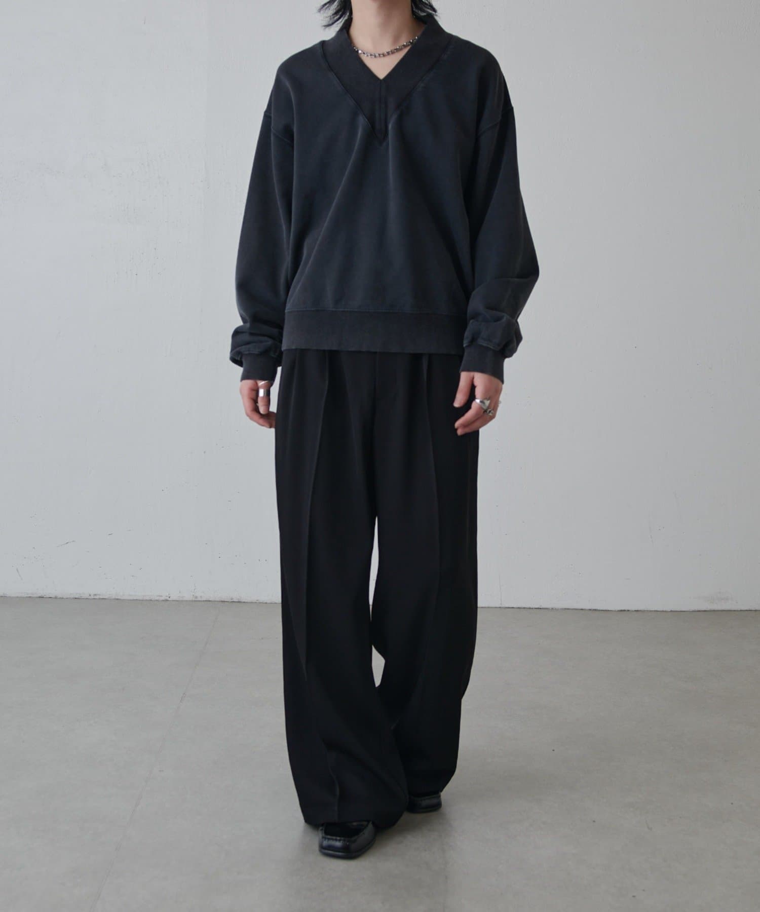 奥行きのある表情が特徴的なこちらのV/Nスウェット。着丈に対して身幅をやや広く取ったBOXシルエット。