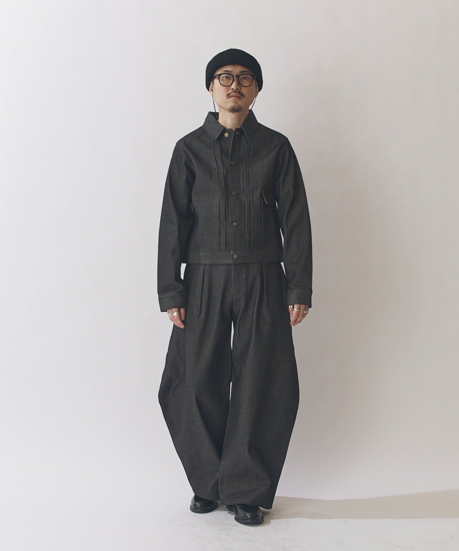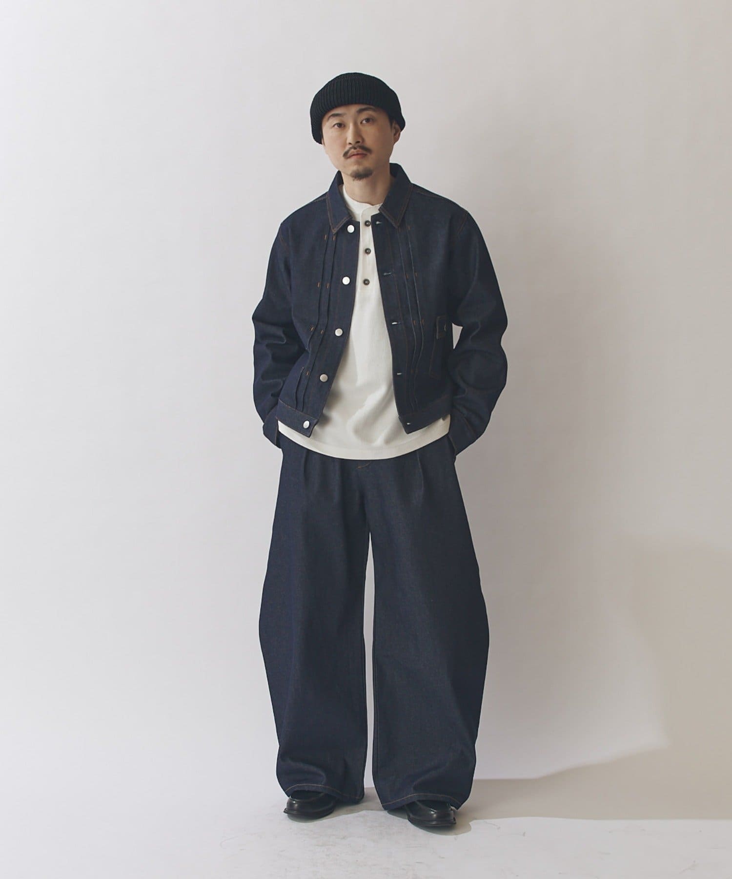 素材には13.5ozのクリーンでシルエットがしっかり残る、リジットのコットンデニムを使用。