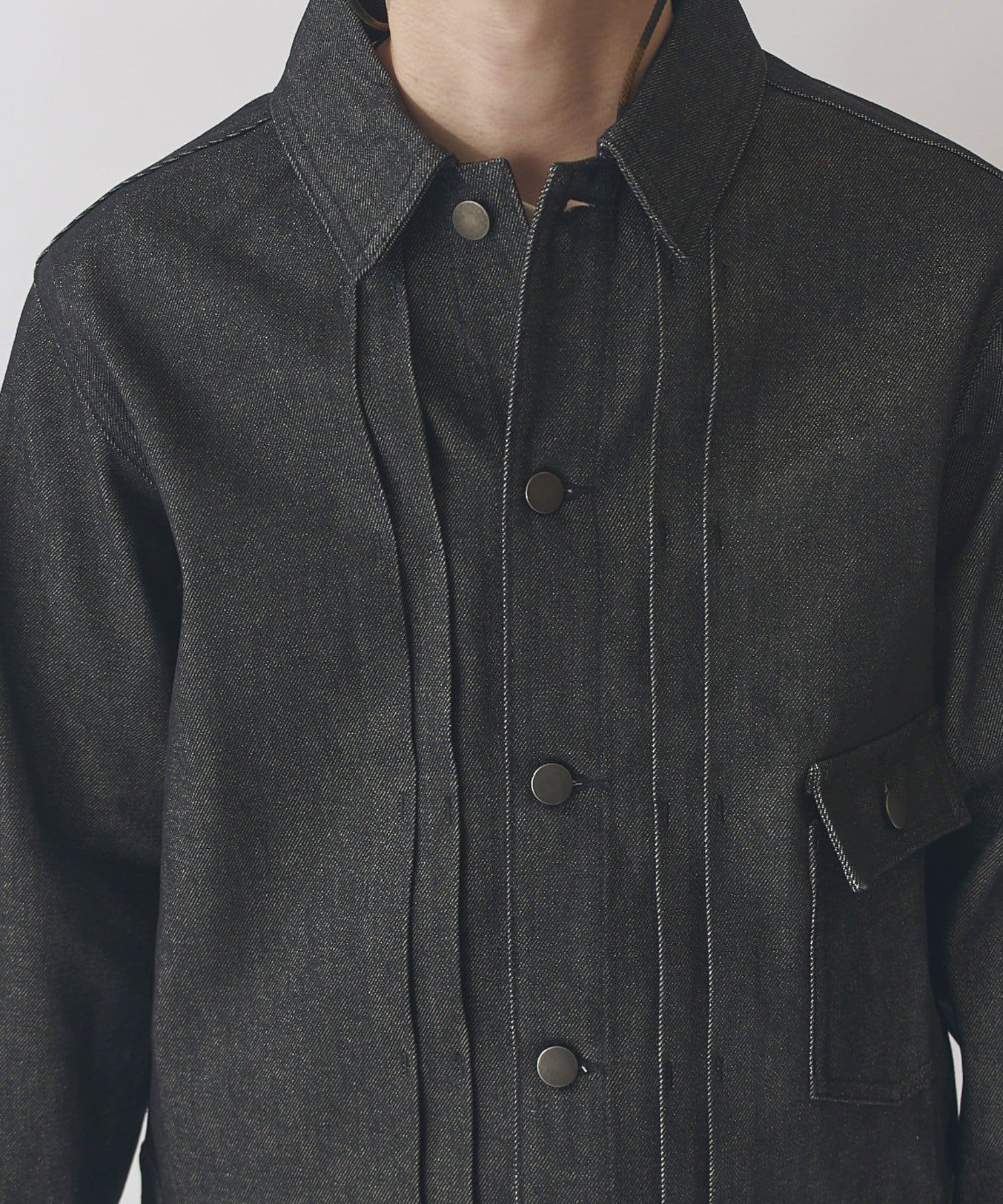 ミニマルでコンパクトなシルエットのデニムブルゾン。ヴィンテージデニムのシルエットからオマージュして、シルエットをコンパクトにしました。
