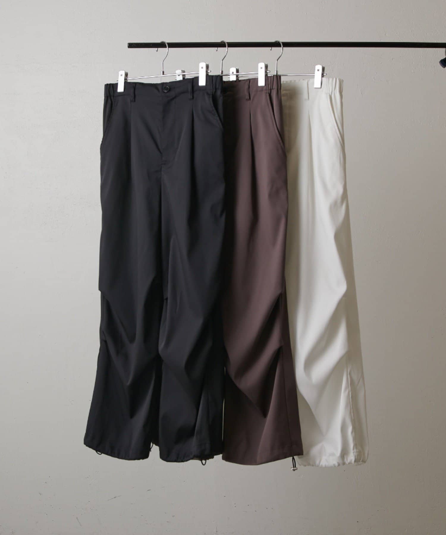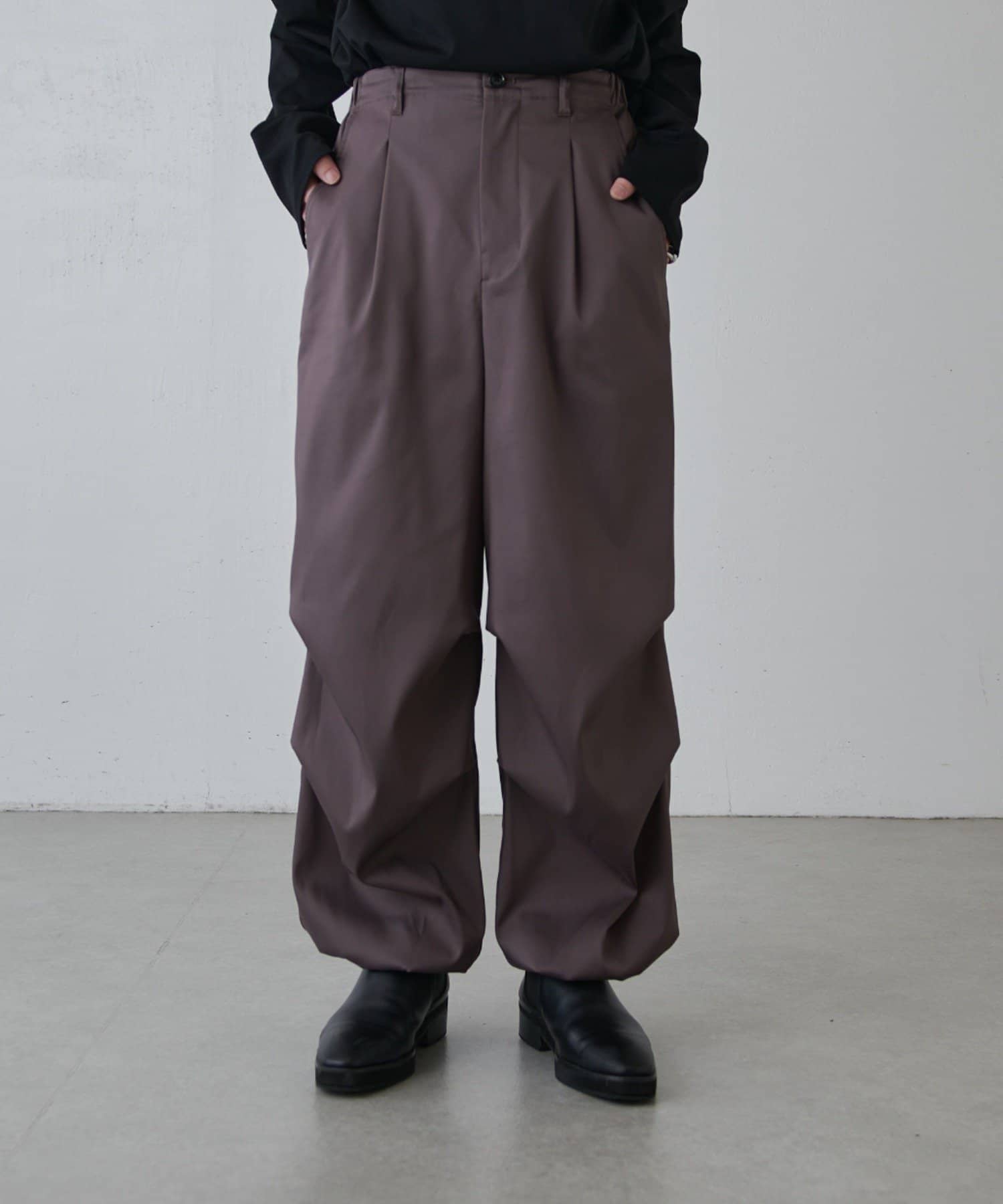 「ハイツイストオーバーパラシュートパンツ」