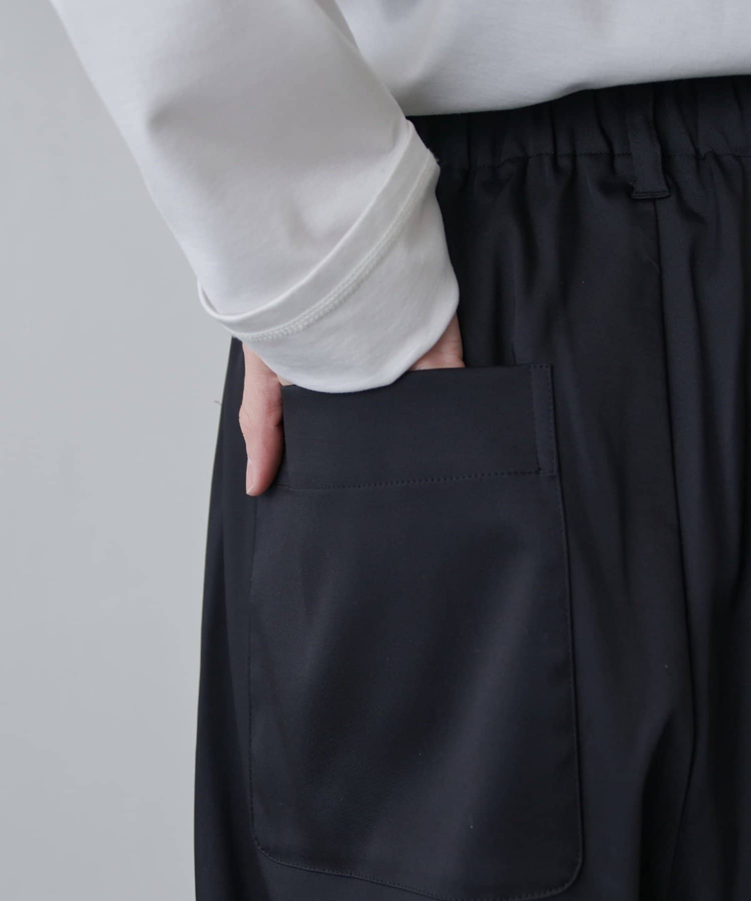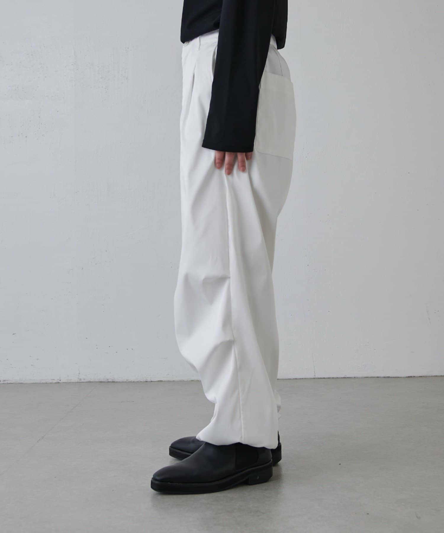 ・カジュアルなシルエットをキレイな素材で落とし込んだパンツ