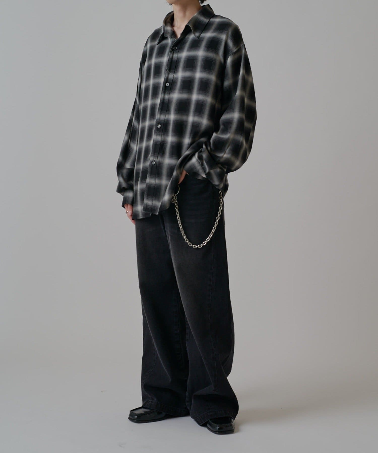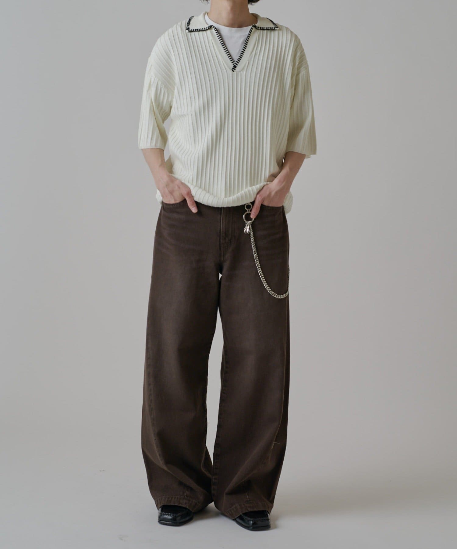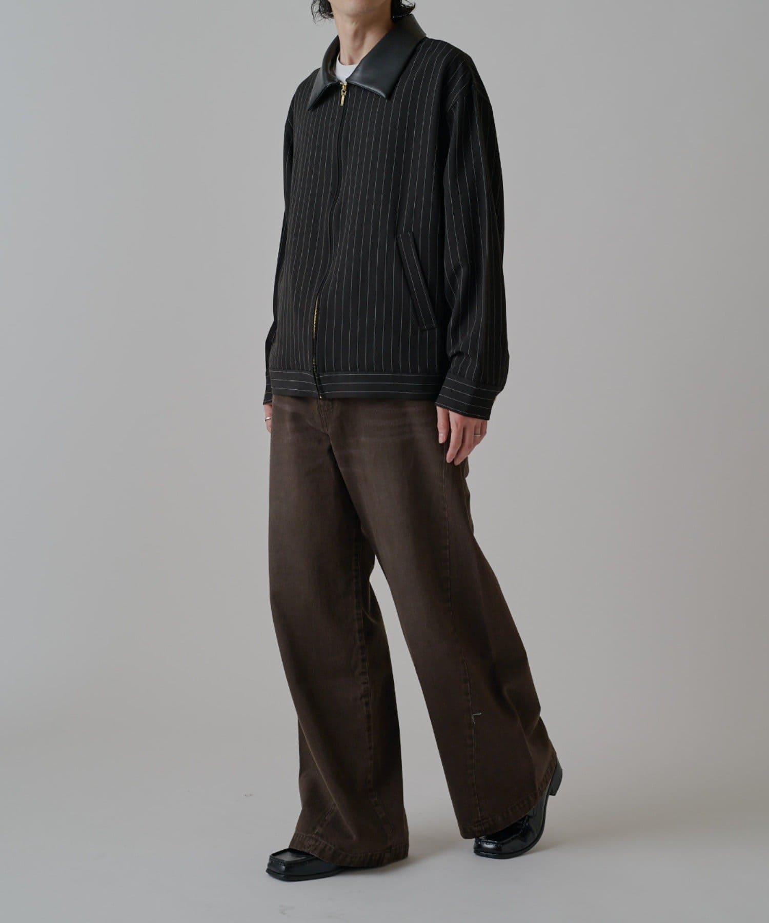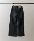 膝下からストンと下に落ちるパターンで仕上げており、クリーンでキレイな見た目に。また、通常の股上をやや深く取るワイドデニムと比べて、股上はレギュラーのデニムと同様にすることで、穿くだけでスタイルがよく見えるように仕上げました。