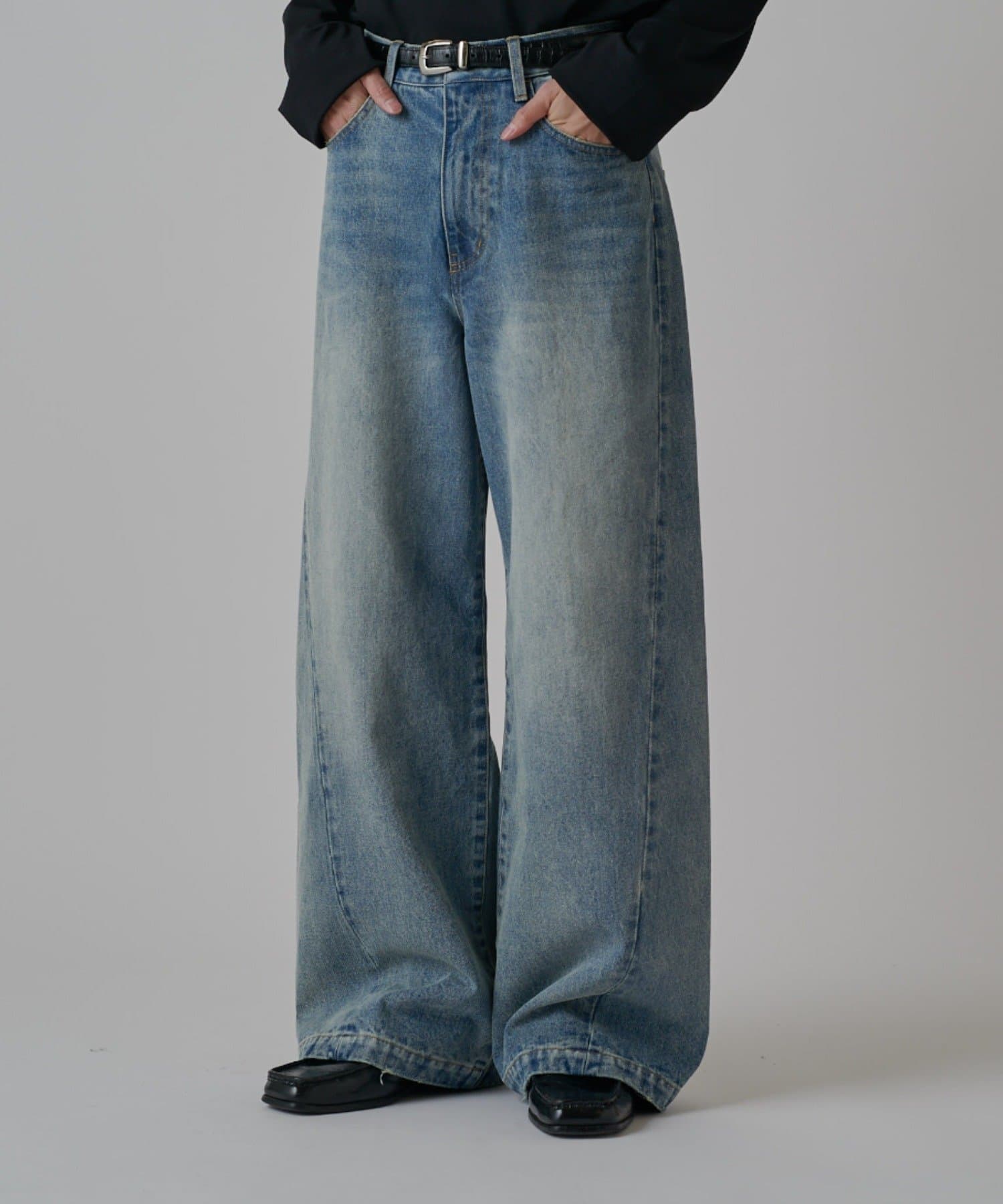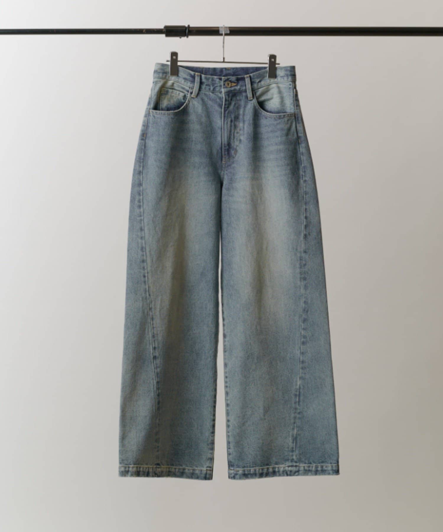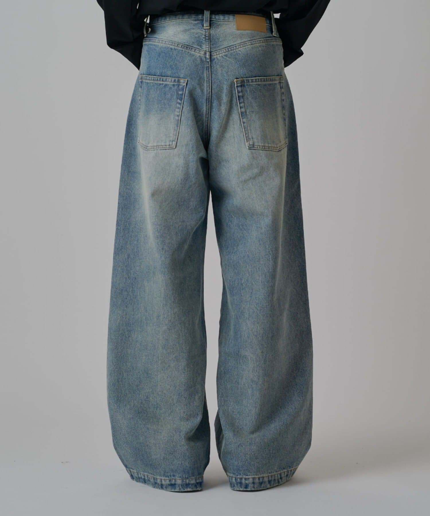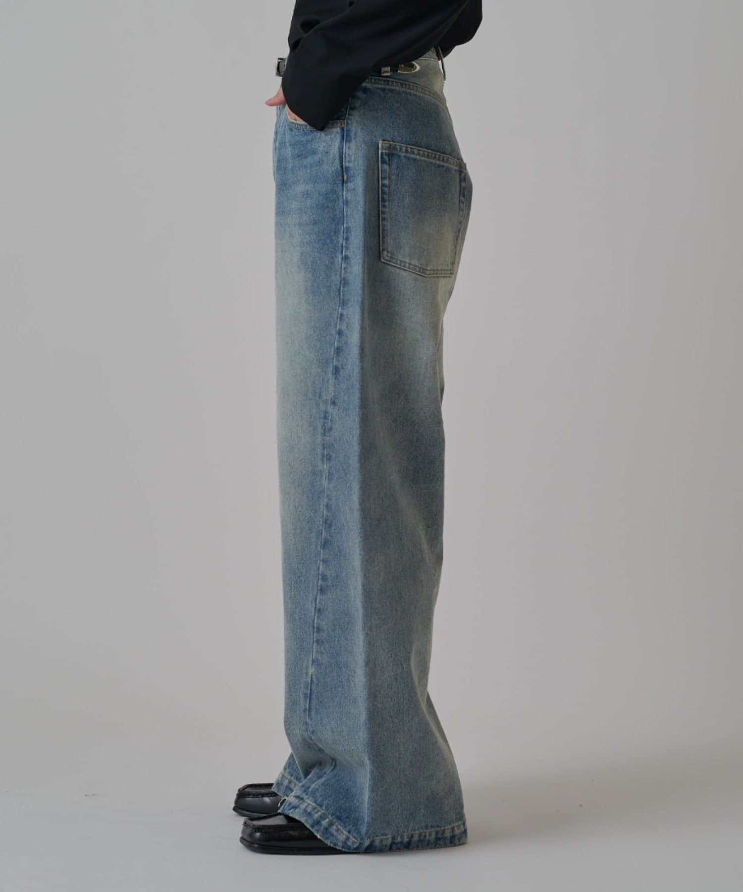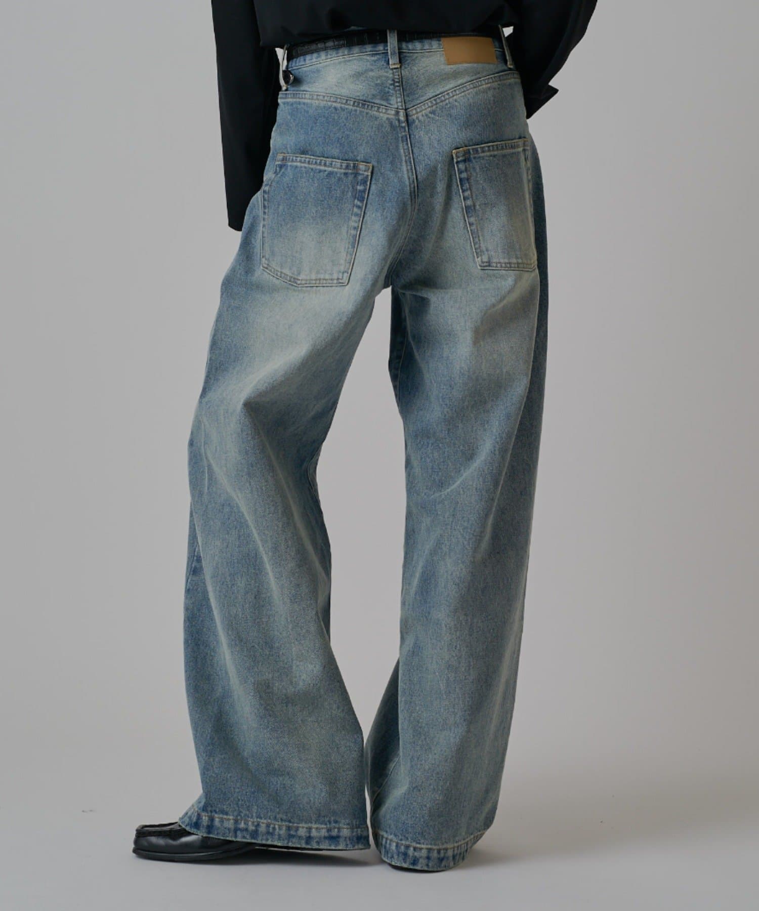 真っ直ぐストンと落ちるワイドストレートシルエットが特徴的なこちらのデニム。