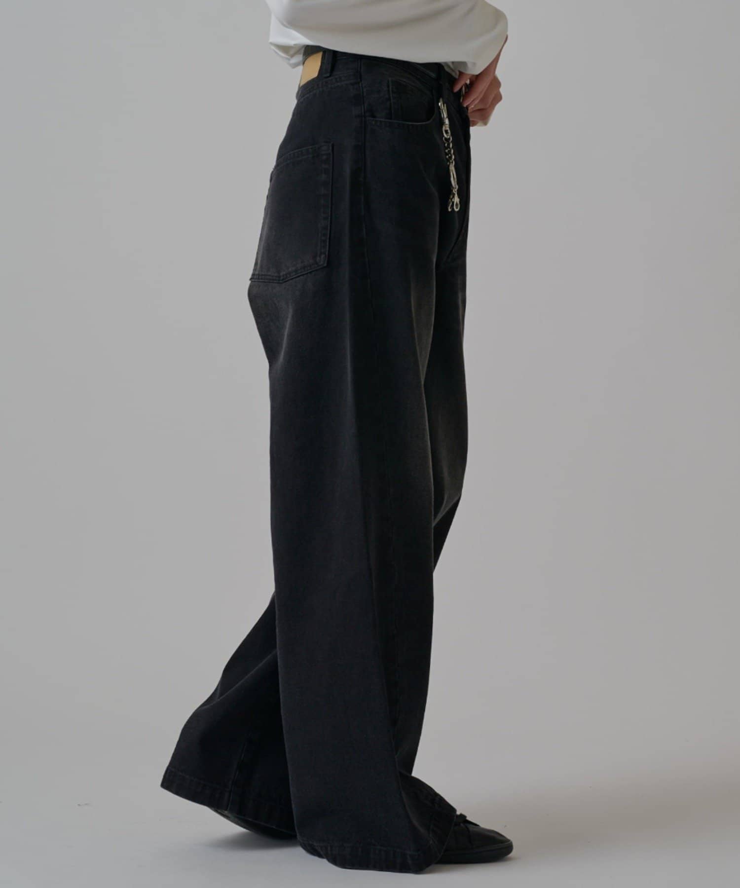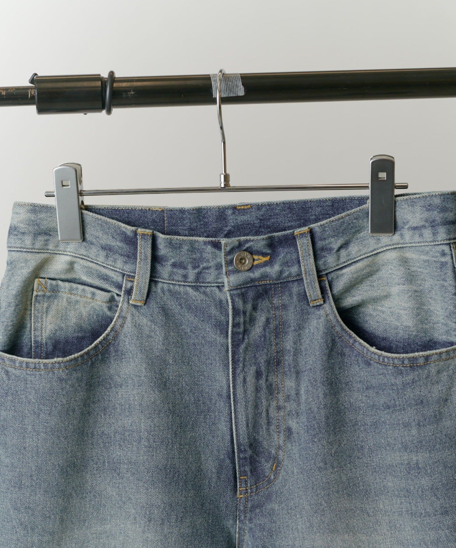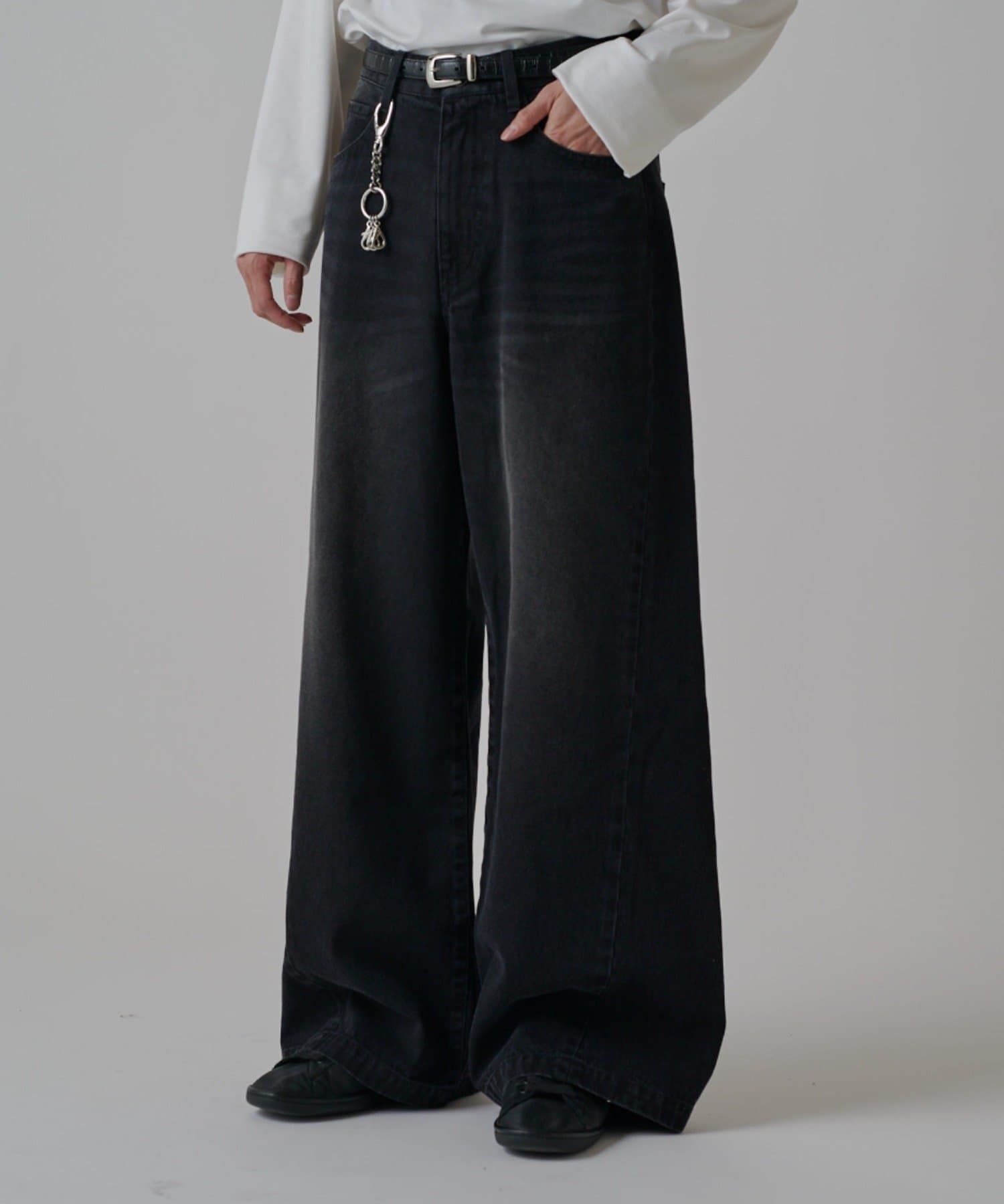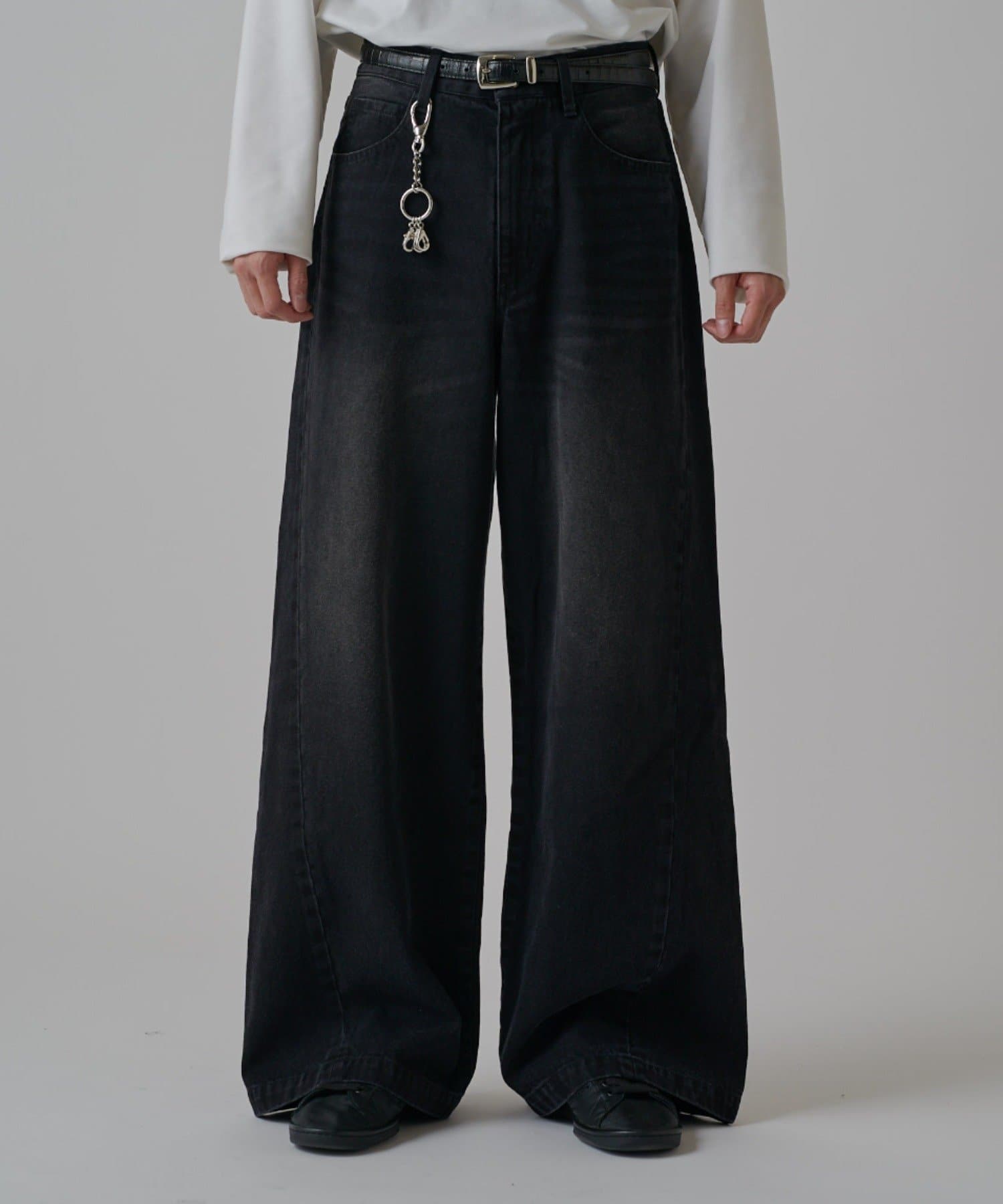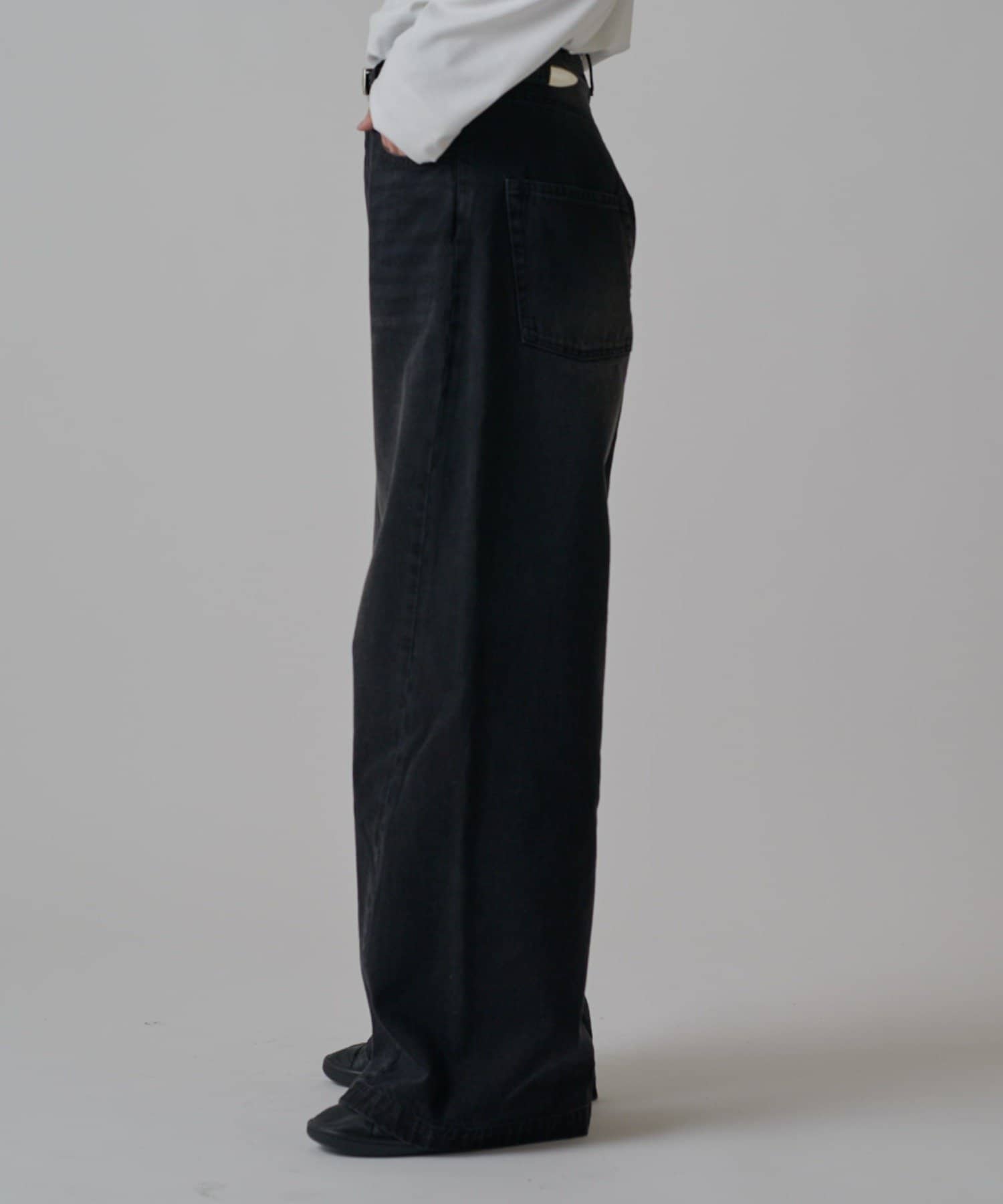 真っ直ぐストンと落ちるワイドストレートシルエットが特徴的なこちらのデニム。