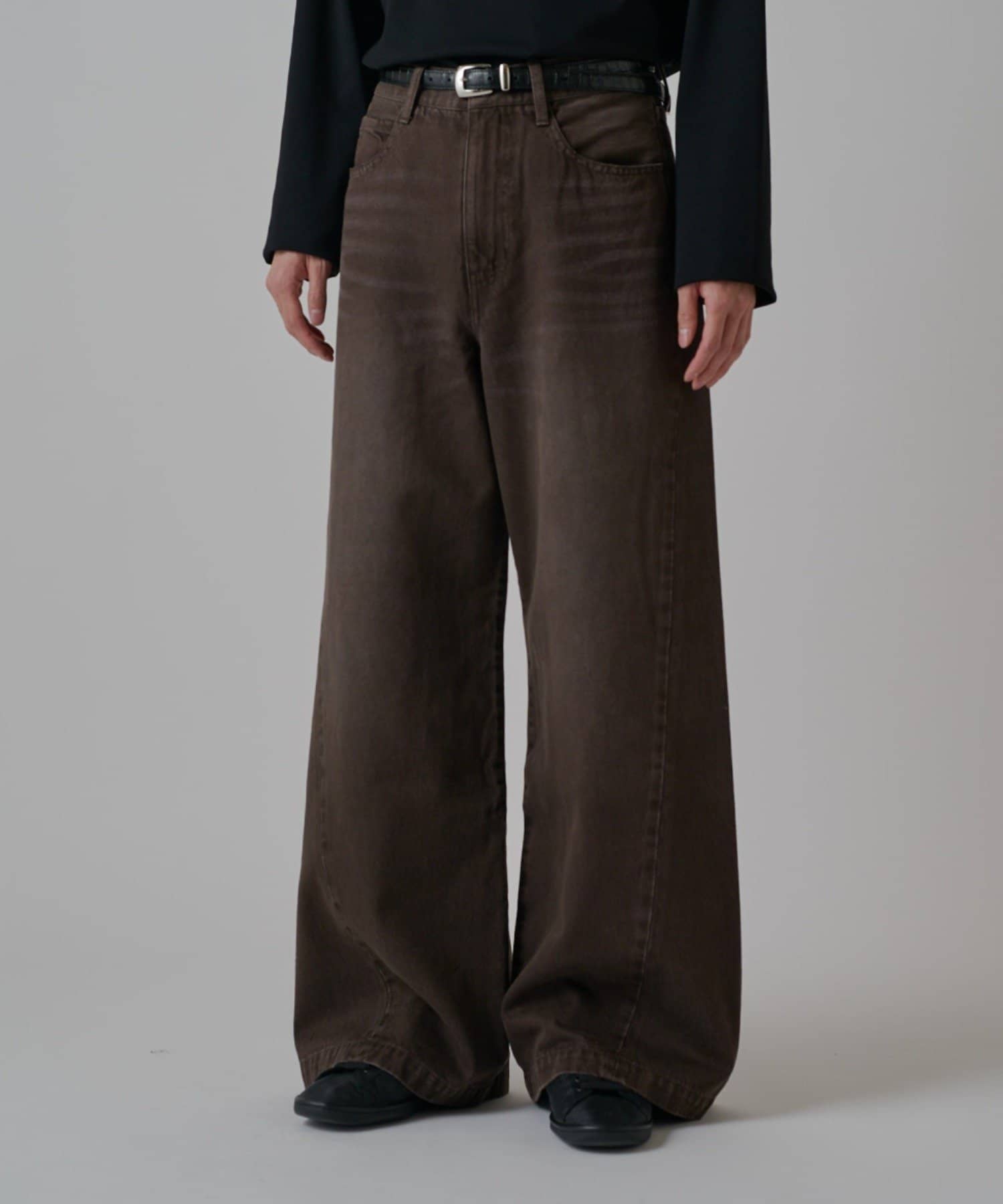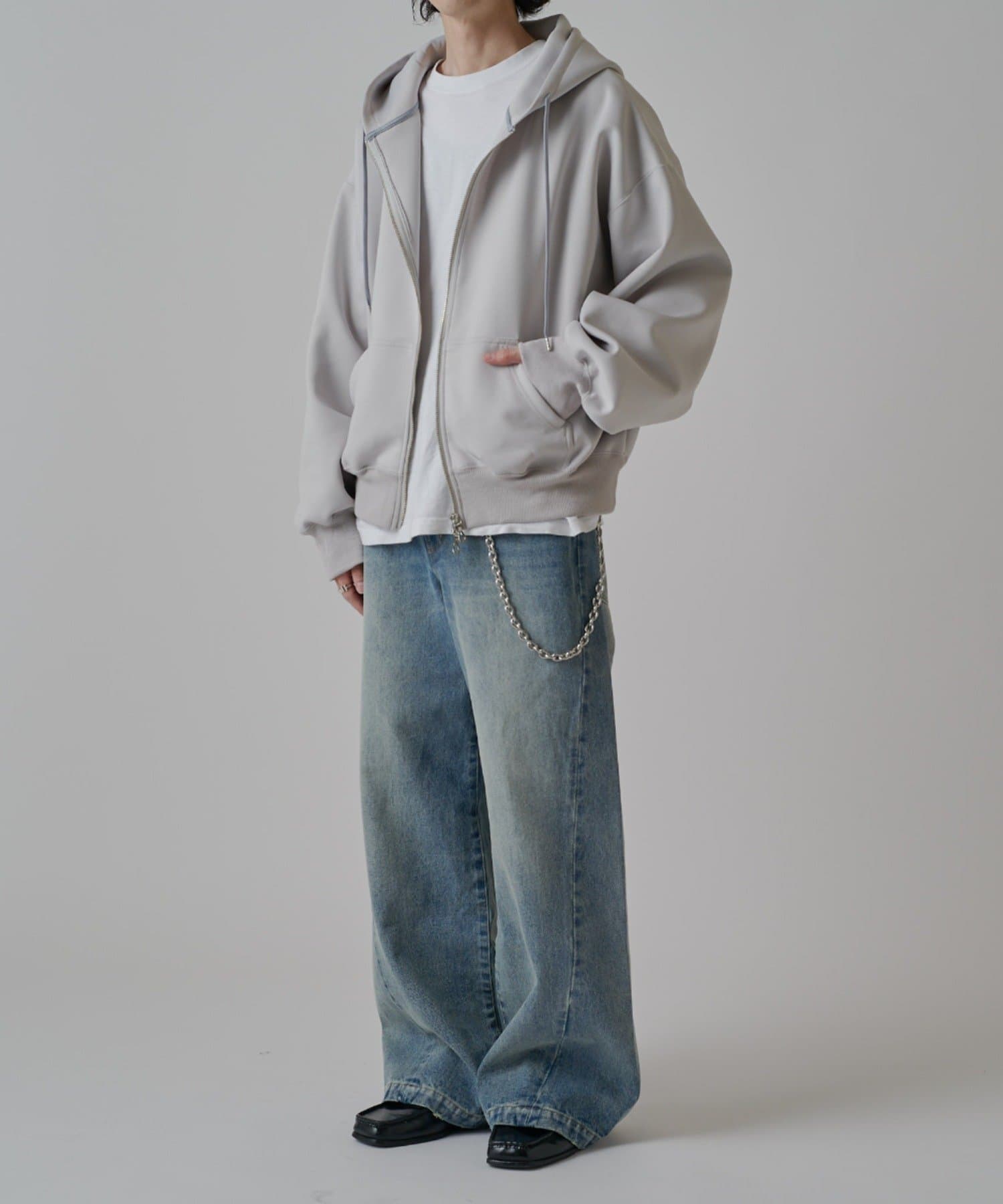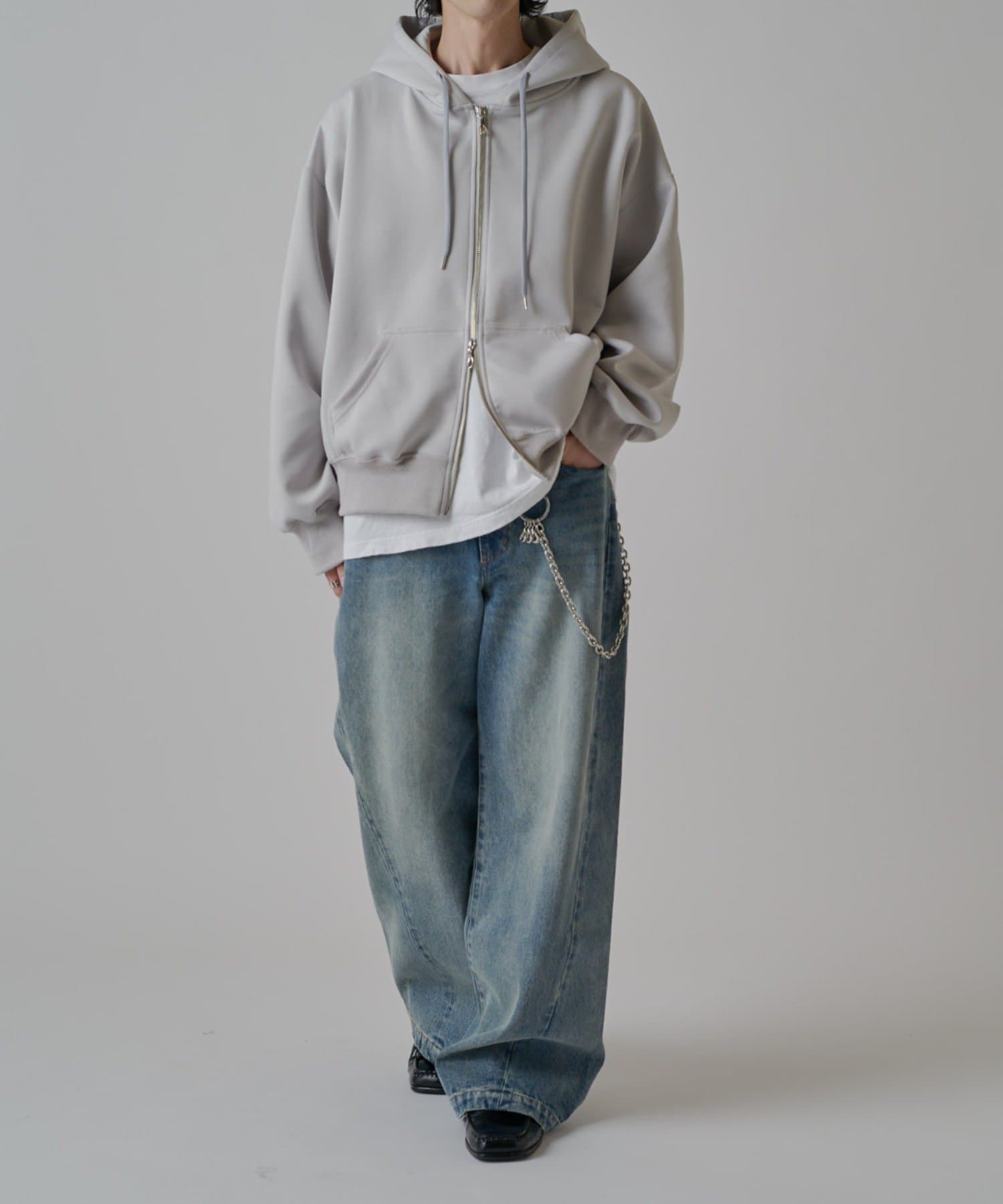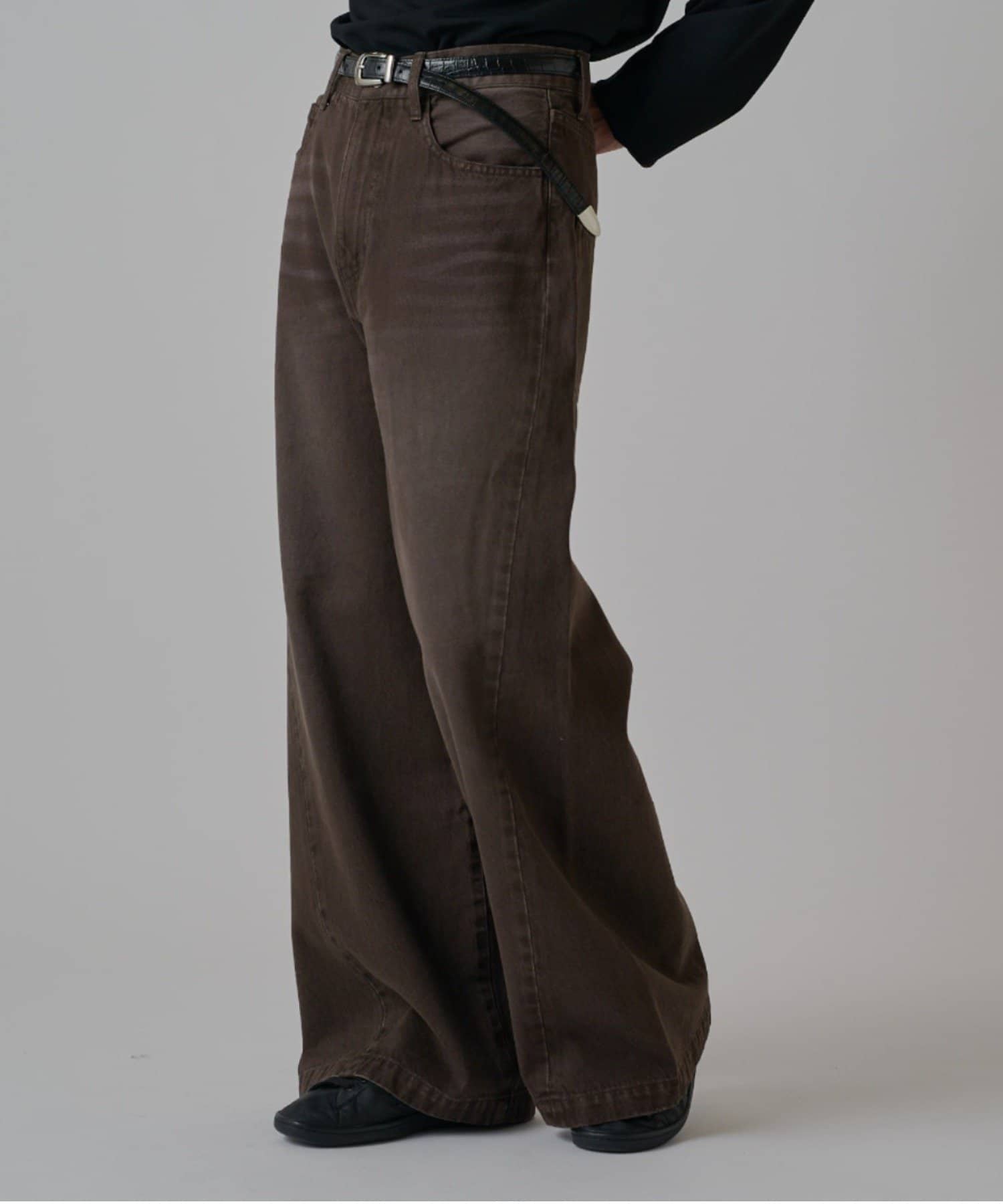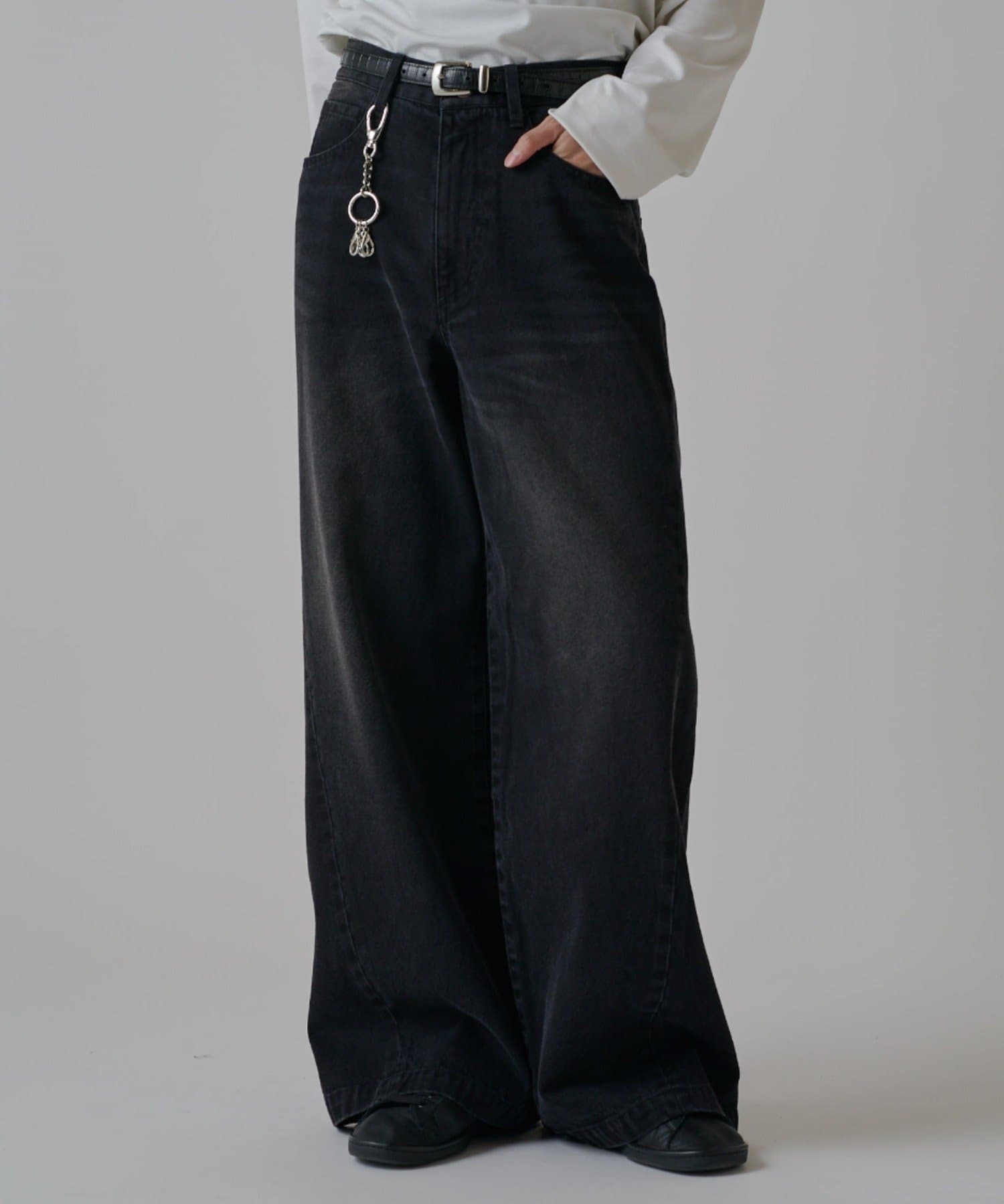 真っ直ぐストンと落ちるワイドストレートシルエットが特徴的なこちらのデニム。