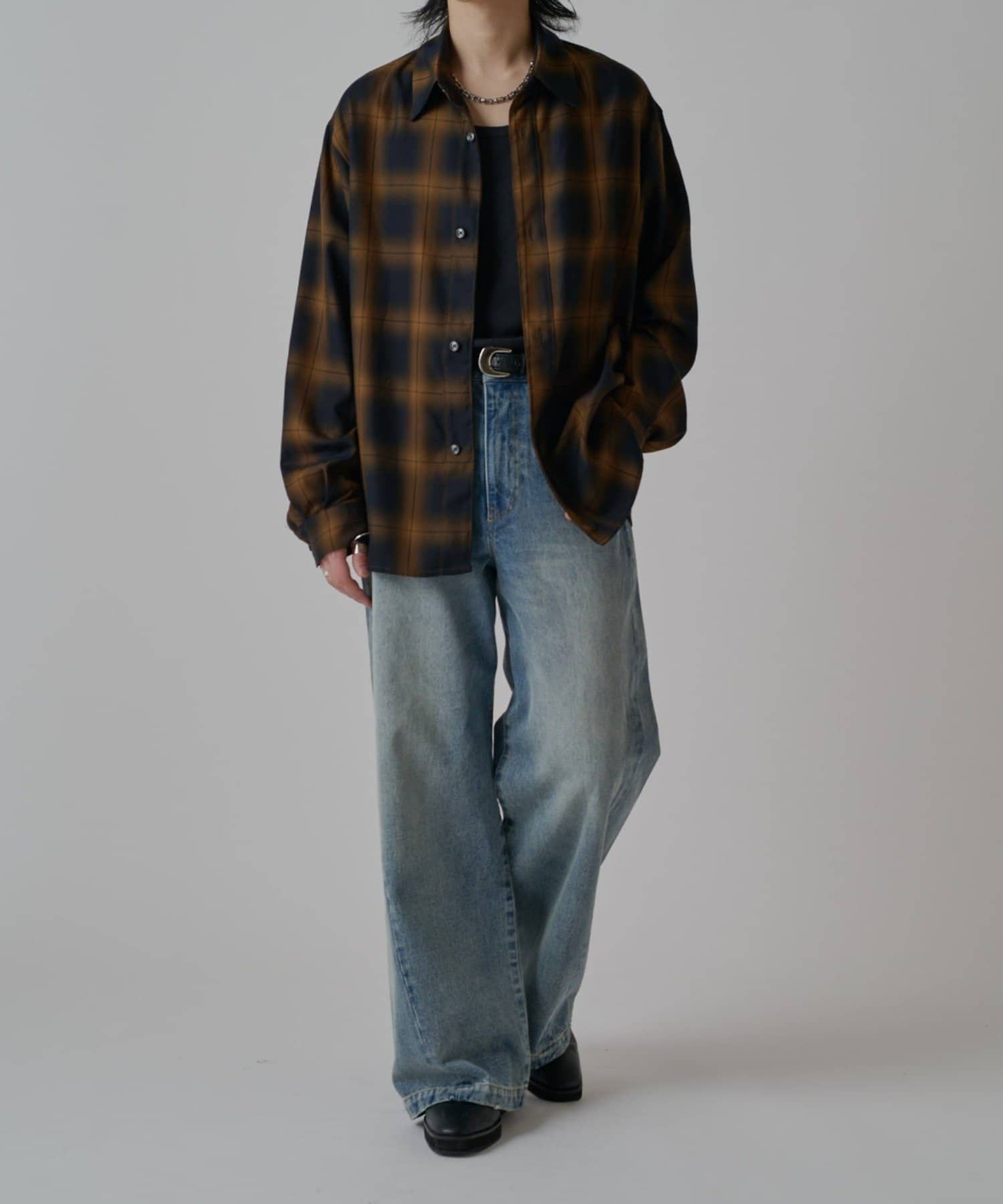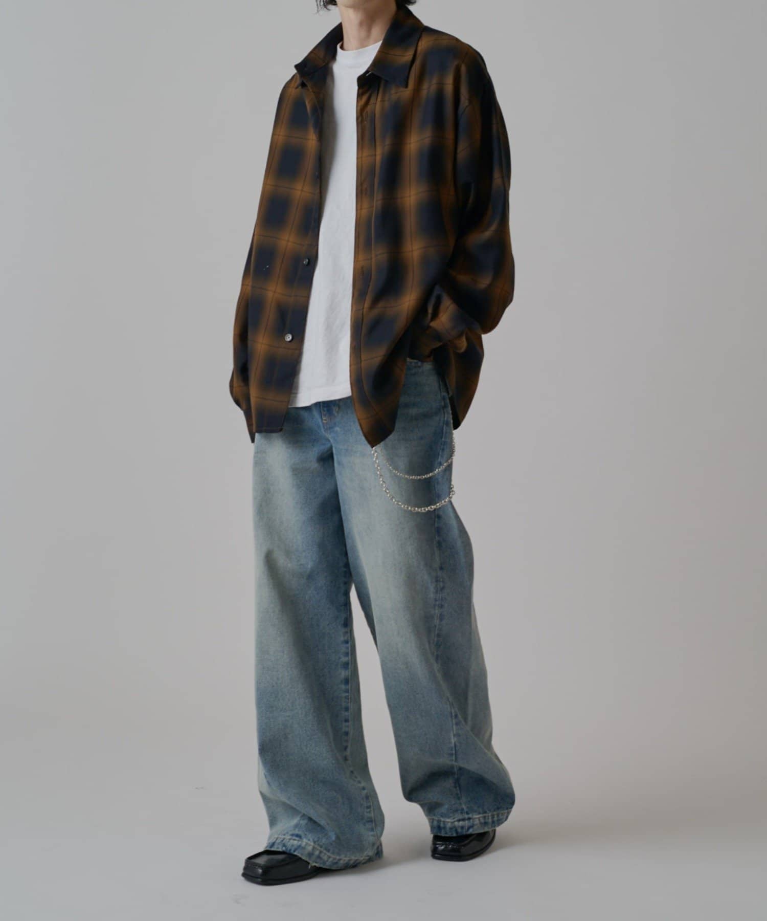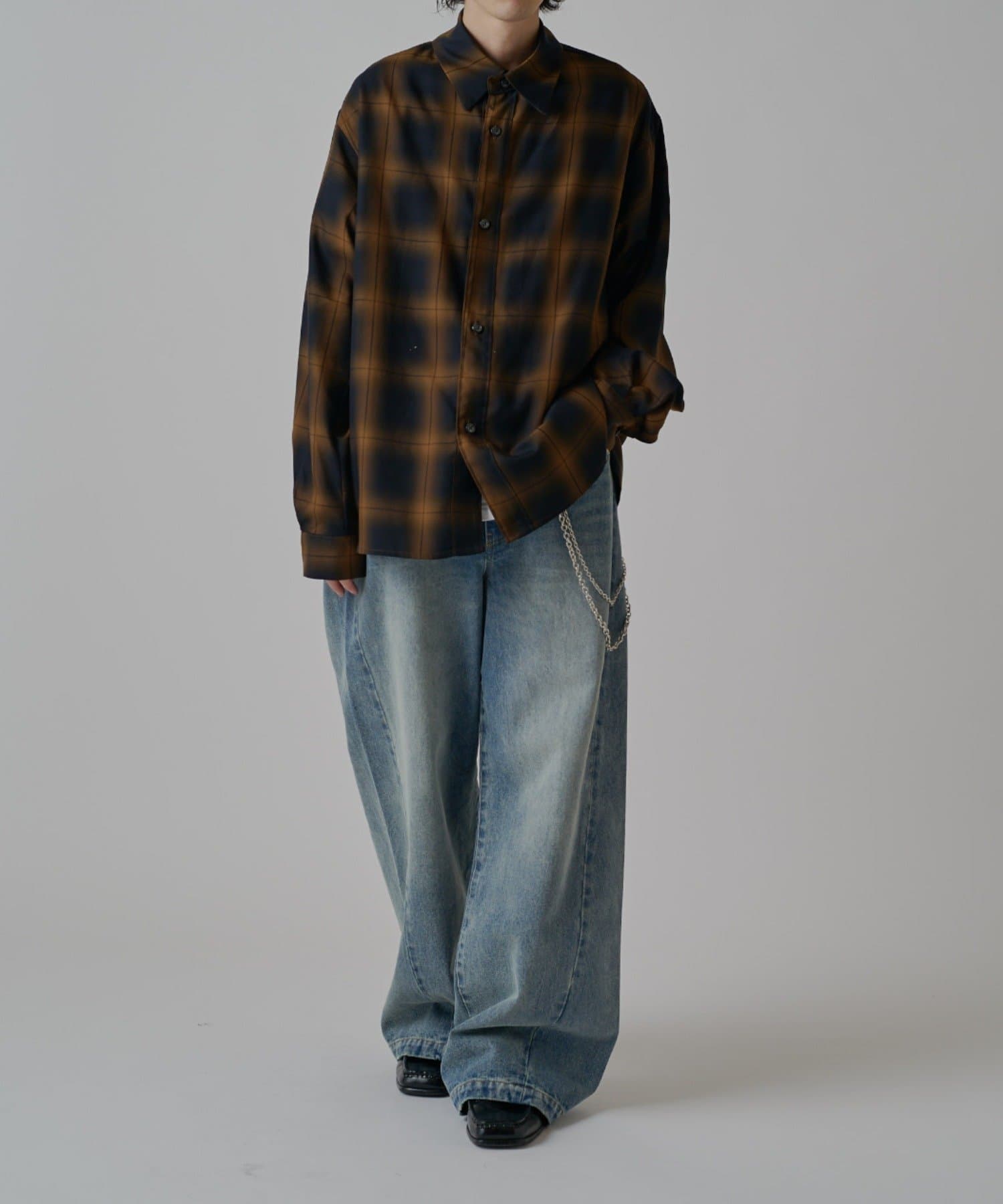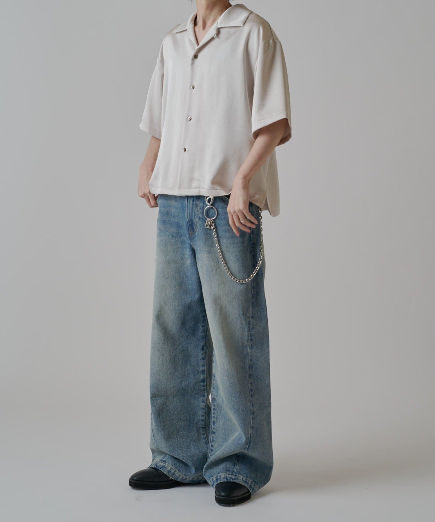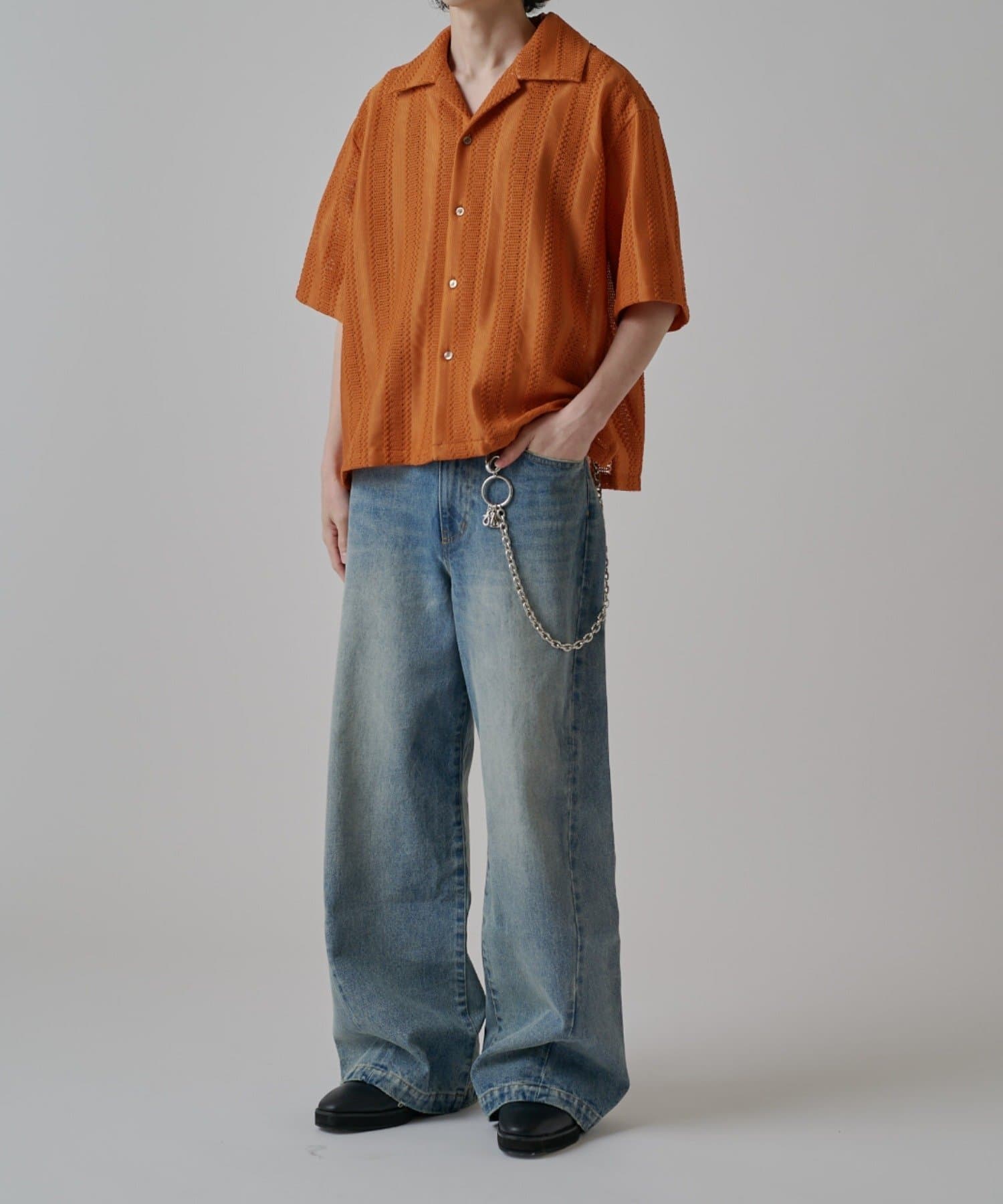 真っ直ぐストンと落ちるワイドストレートシルエットが特徴的なこちらのデニム。