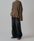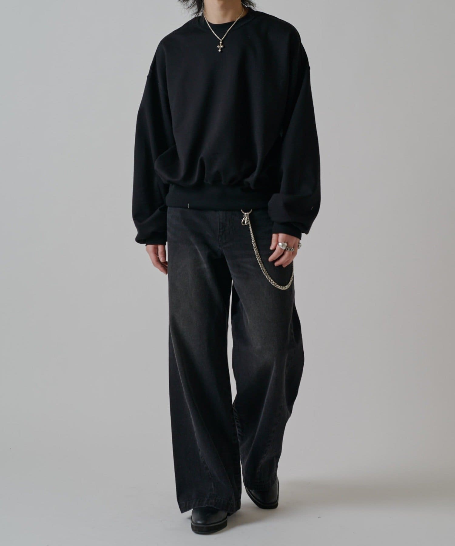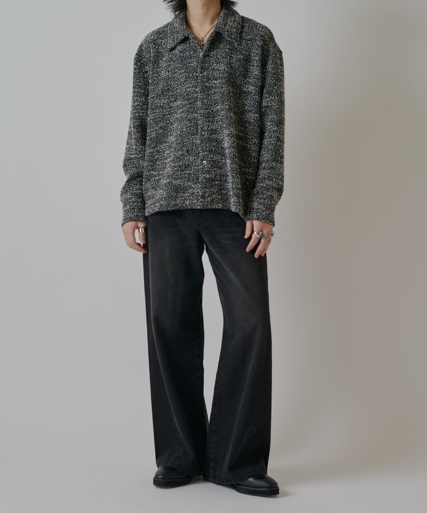 膝下からストンと下に落ちるパターンで仕上げており、クリーンでキレイな見た目に。また、通常の股上をやや深く取るワイドデニムと比べて、股上はレギュラーのデニムと同様にすることで、穿くだけでスタイルがよく見えるように仕上げました。
