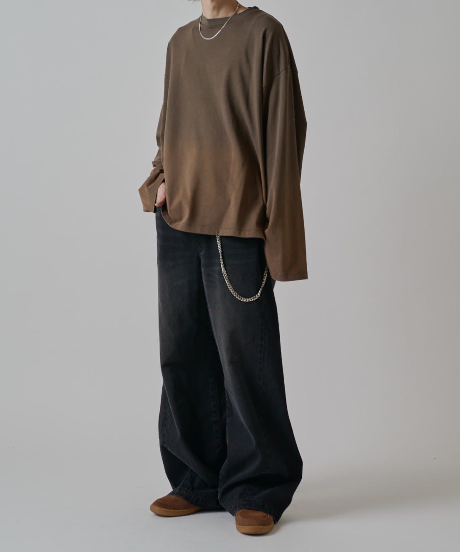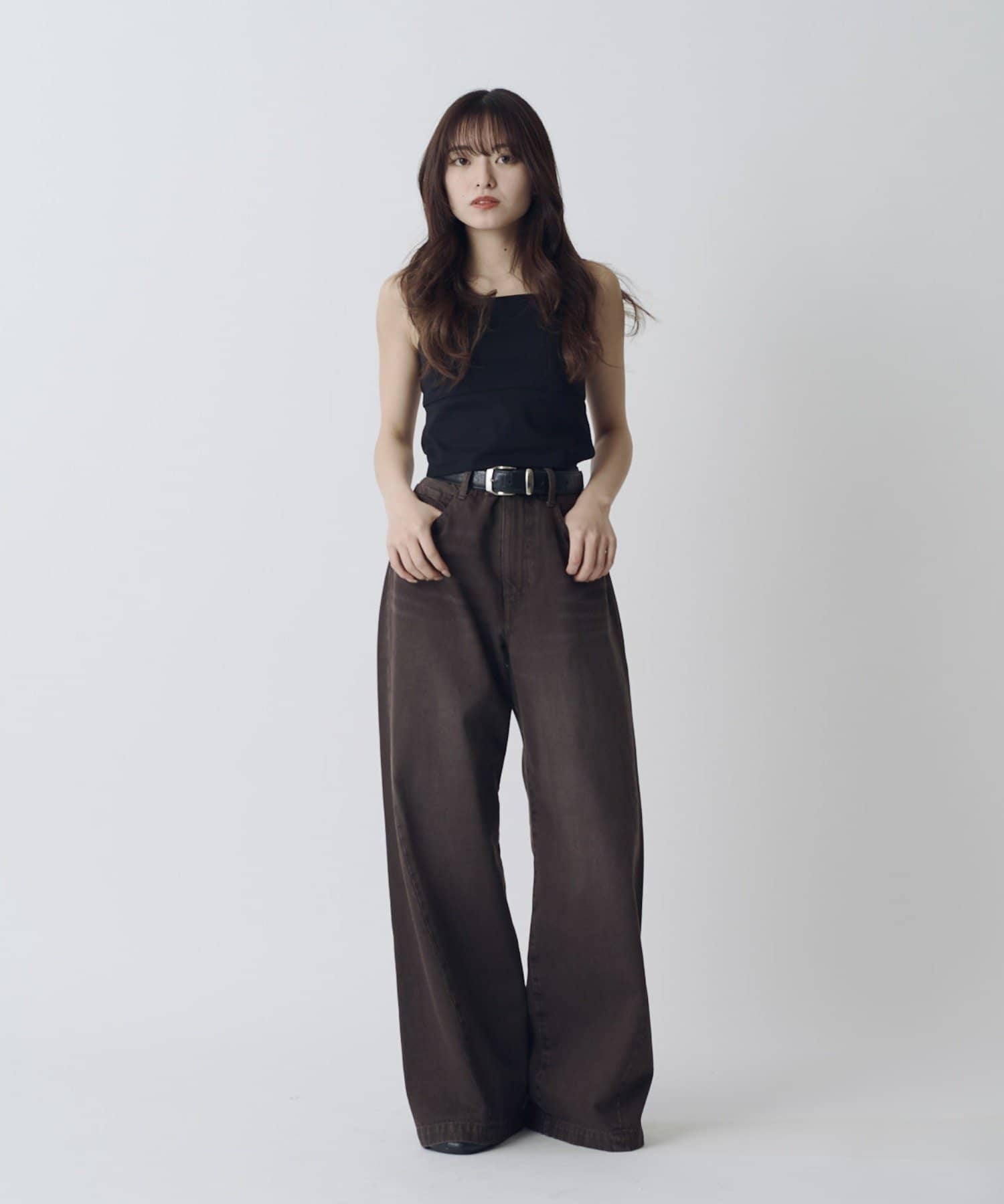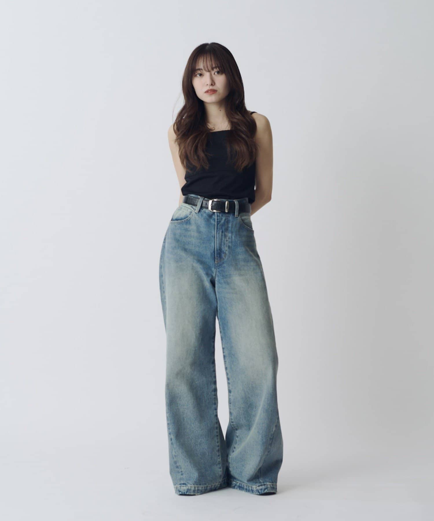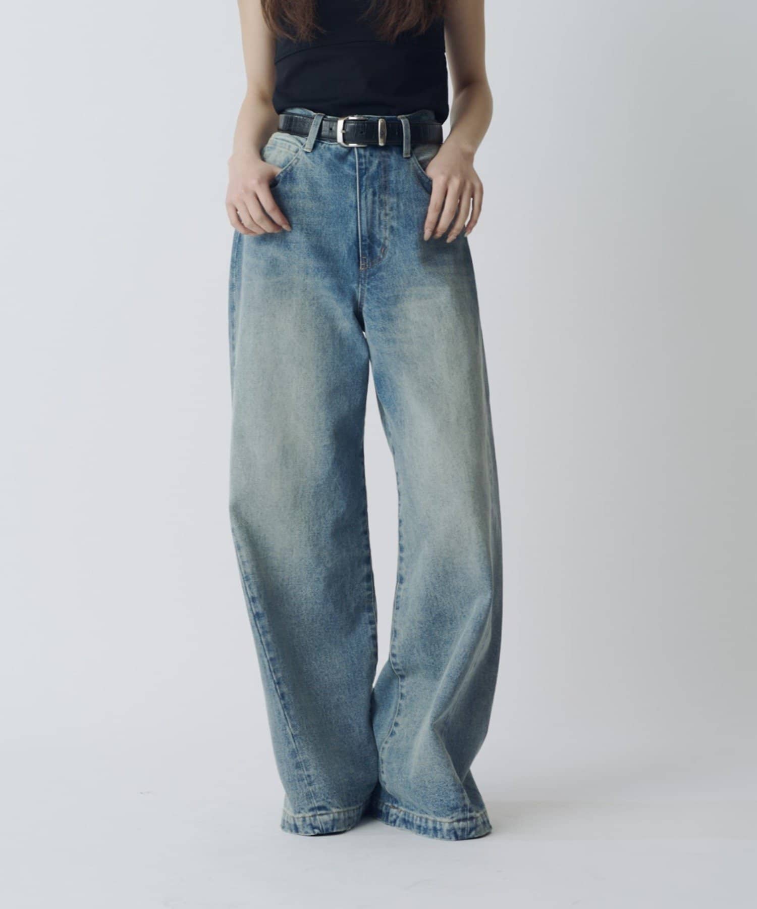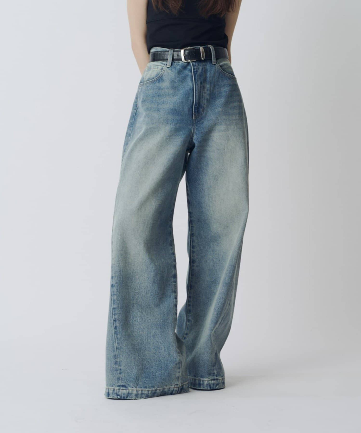 真っ直ぐストンと落ちるワイドストレートシルエットが特徴的なこちらのデニム。