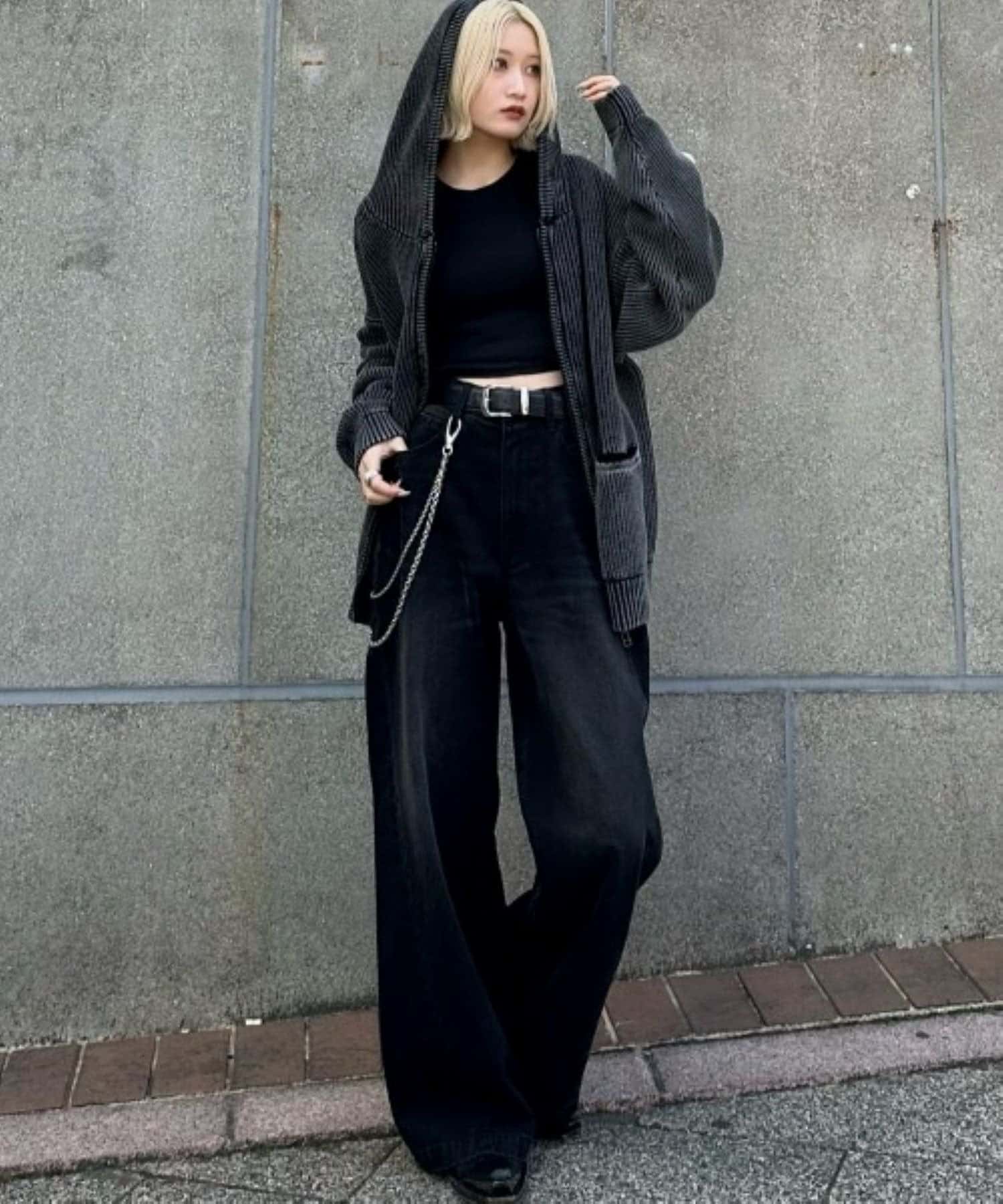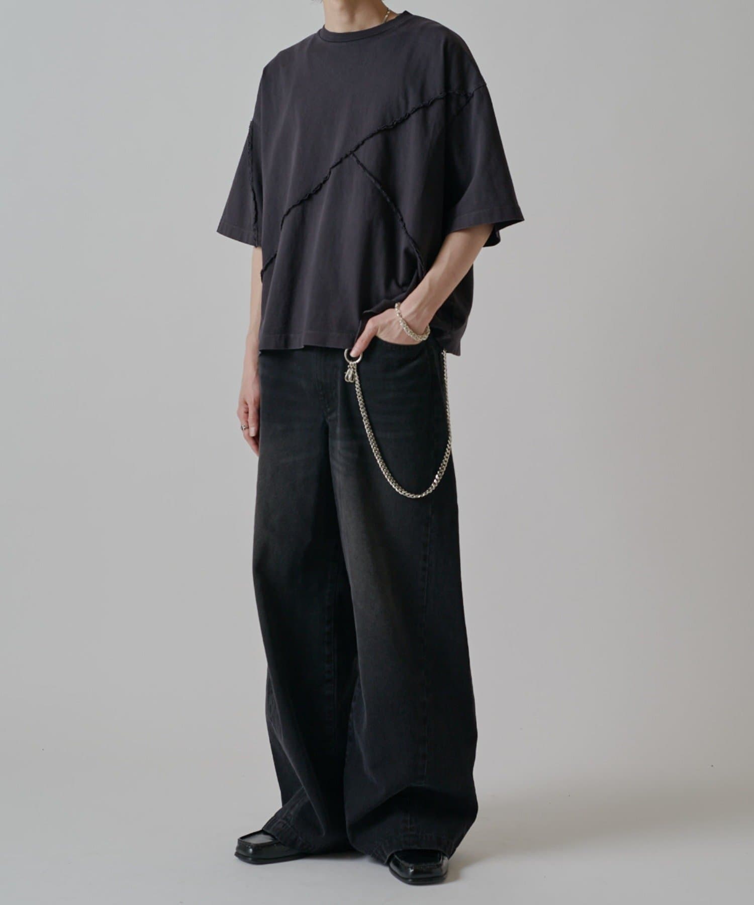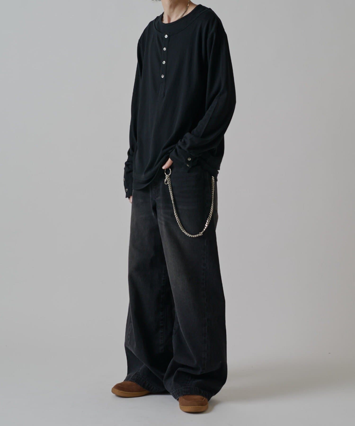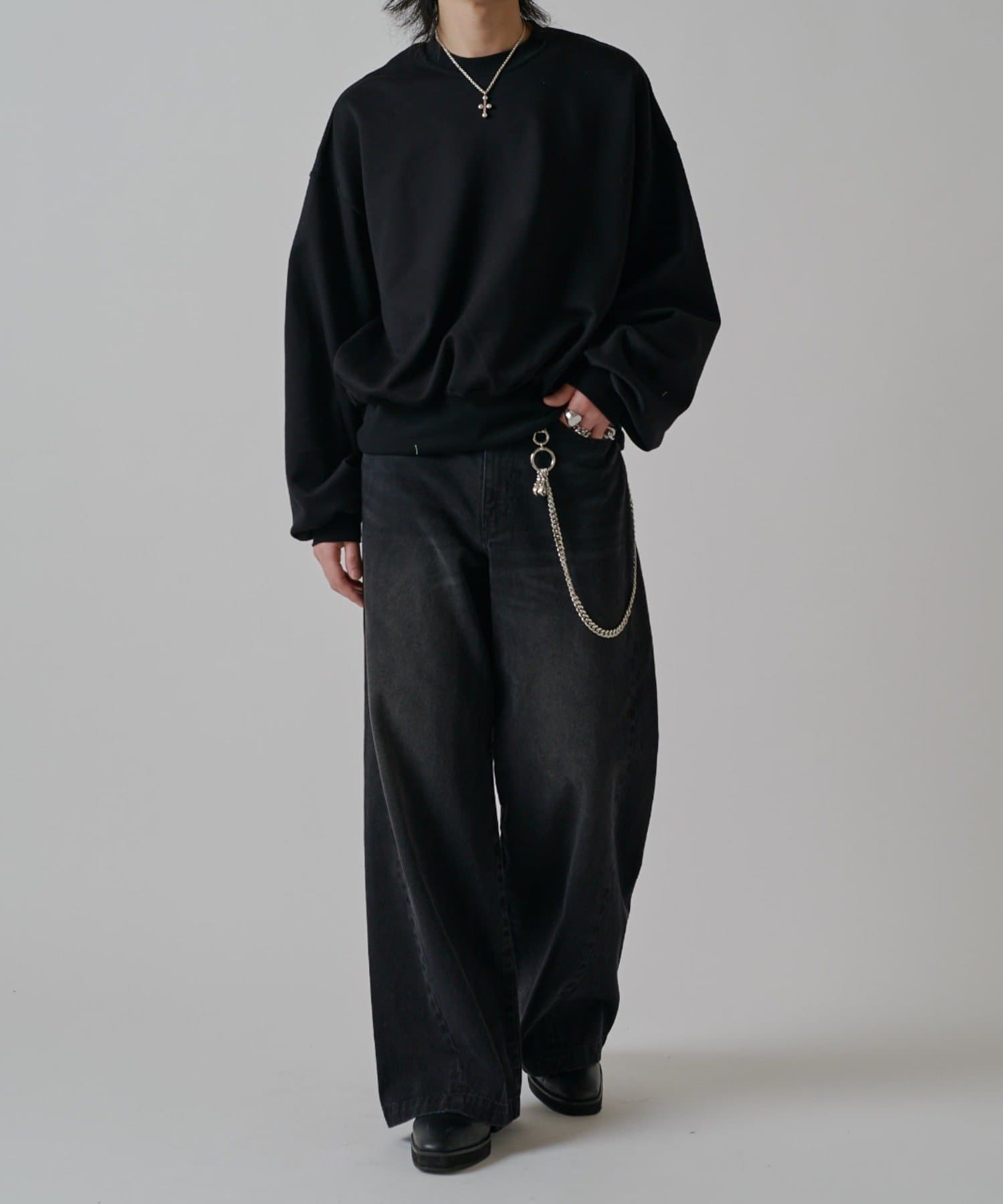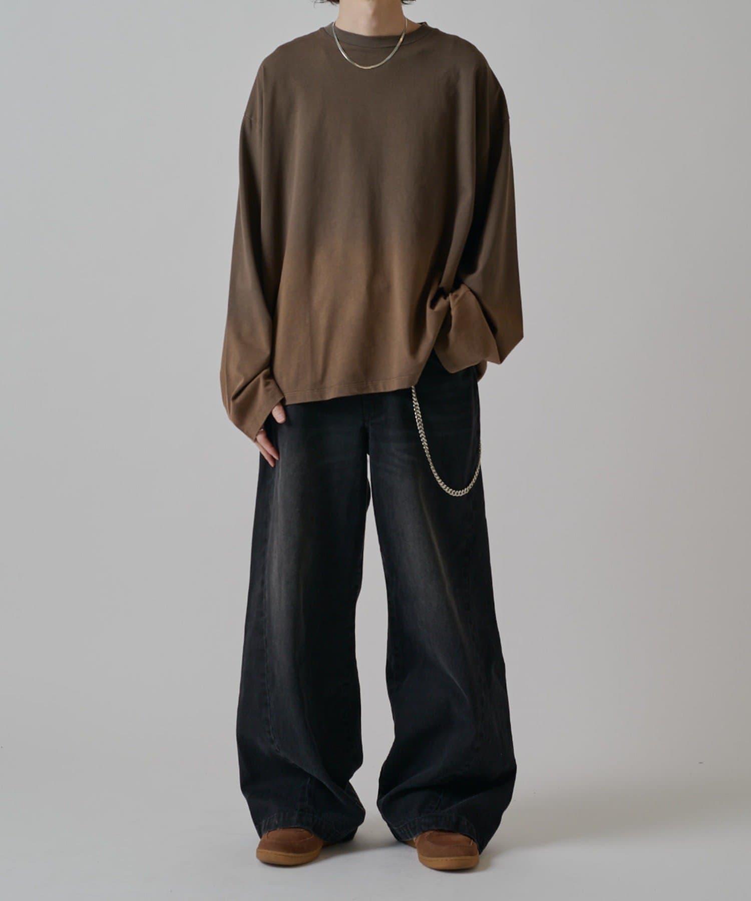 真っ直ぐストンと落ちるワイドストレートシルエットが特徴的なこちらのデニム。