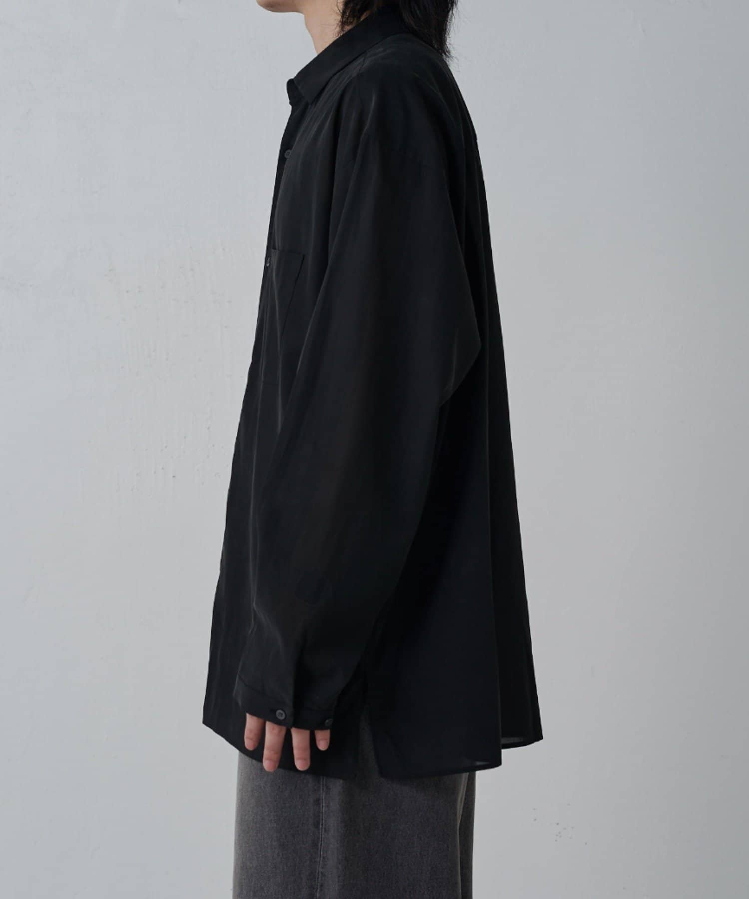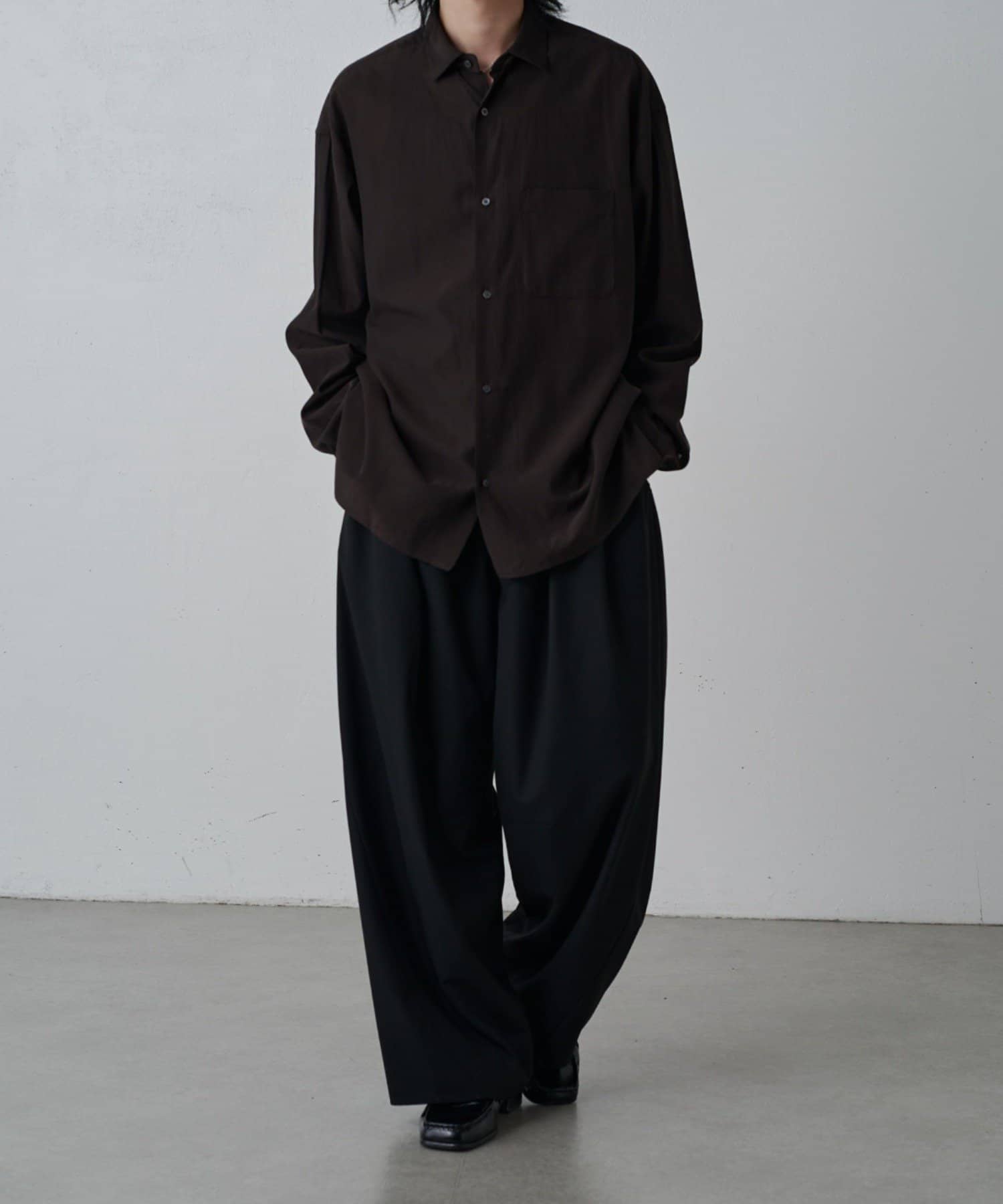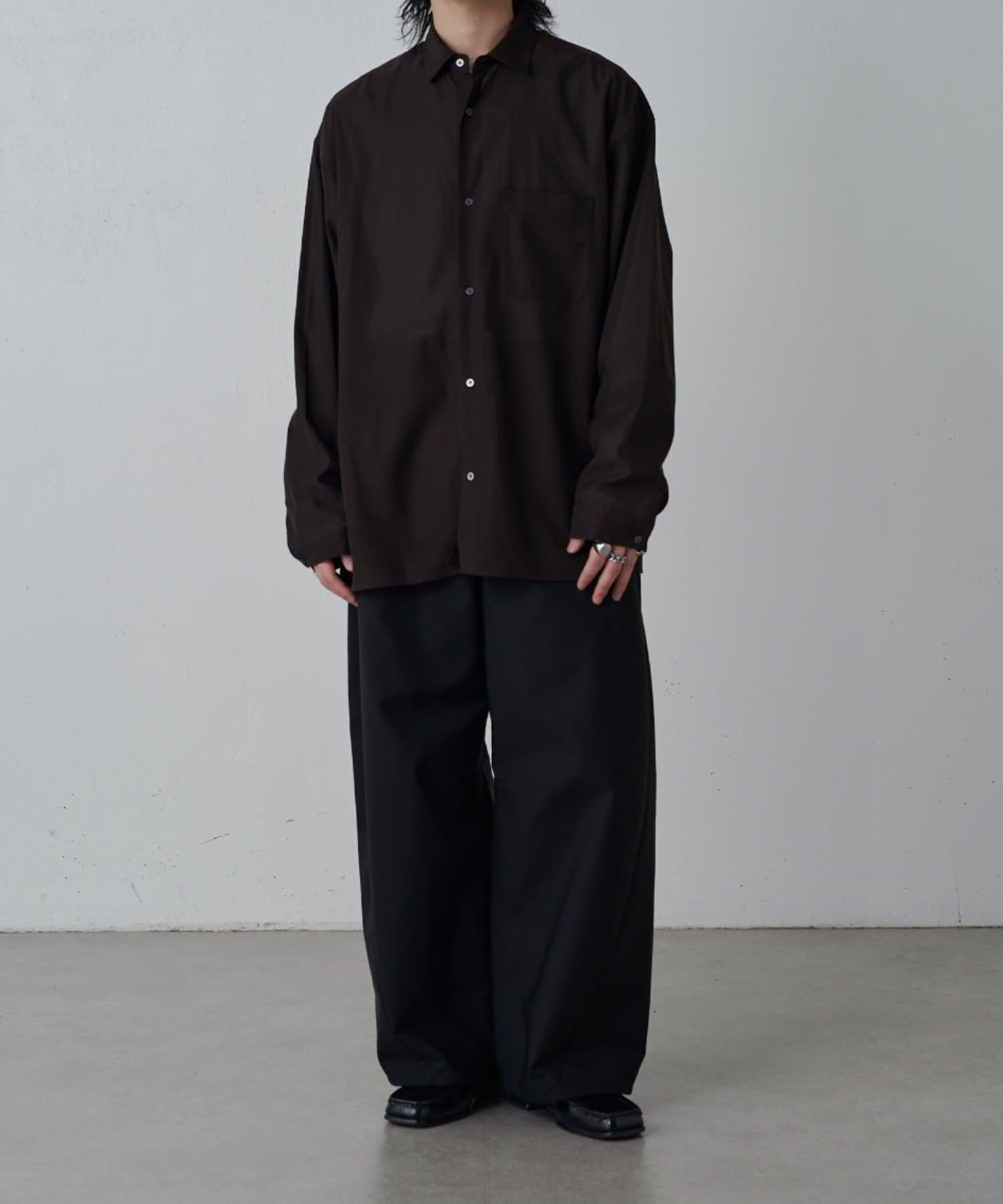 ・キュプラ素材ならではの上品な品質と程よい抜け感を引き立てる洗練されたモードな雰囲気を演出。