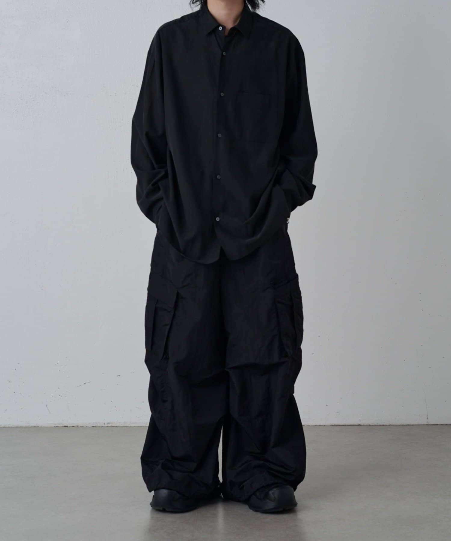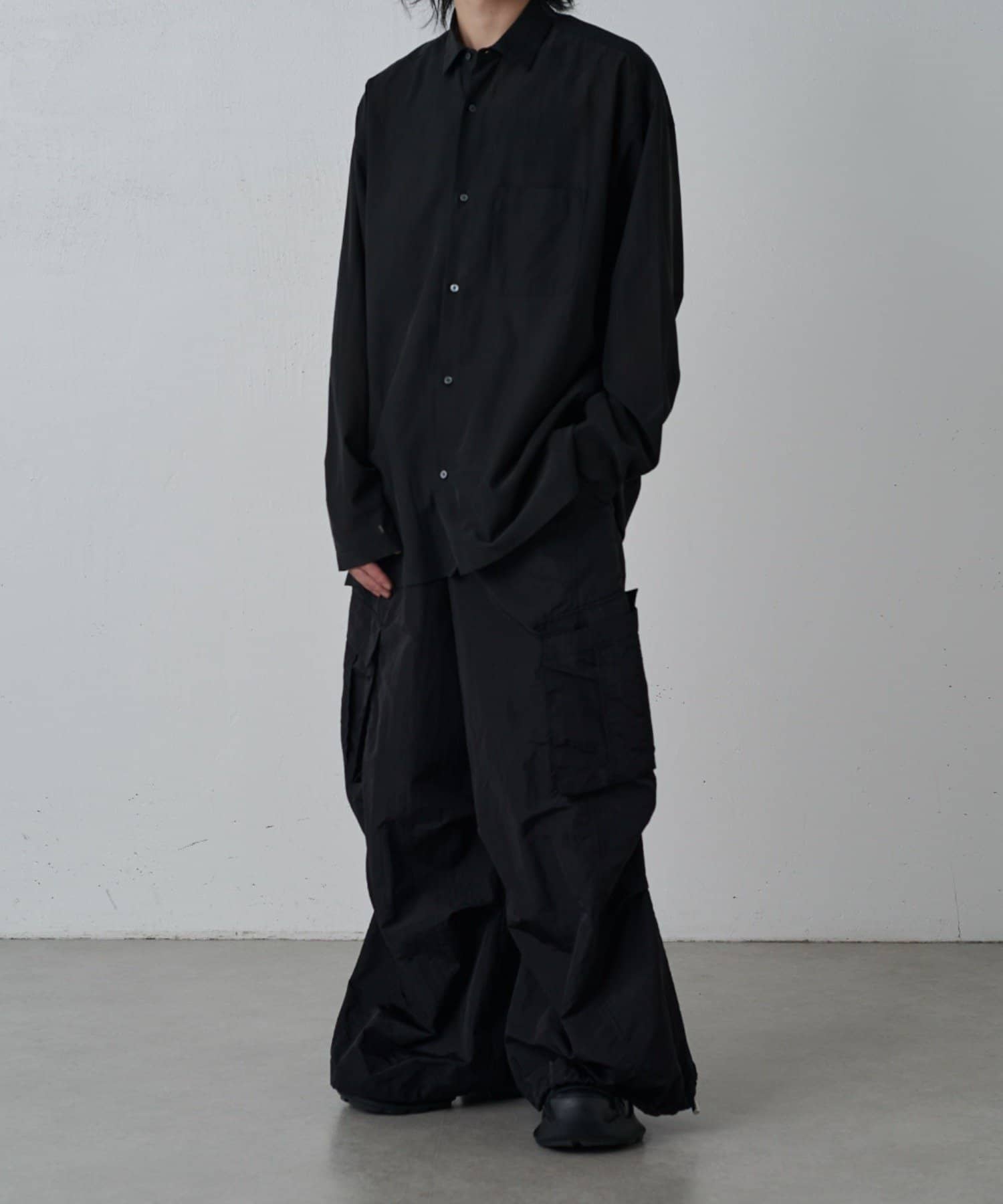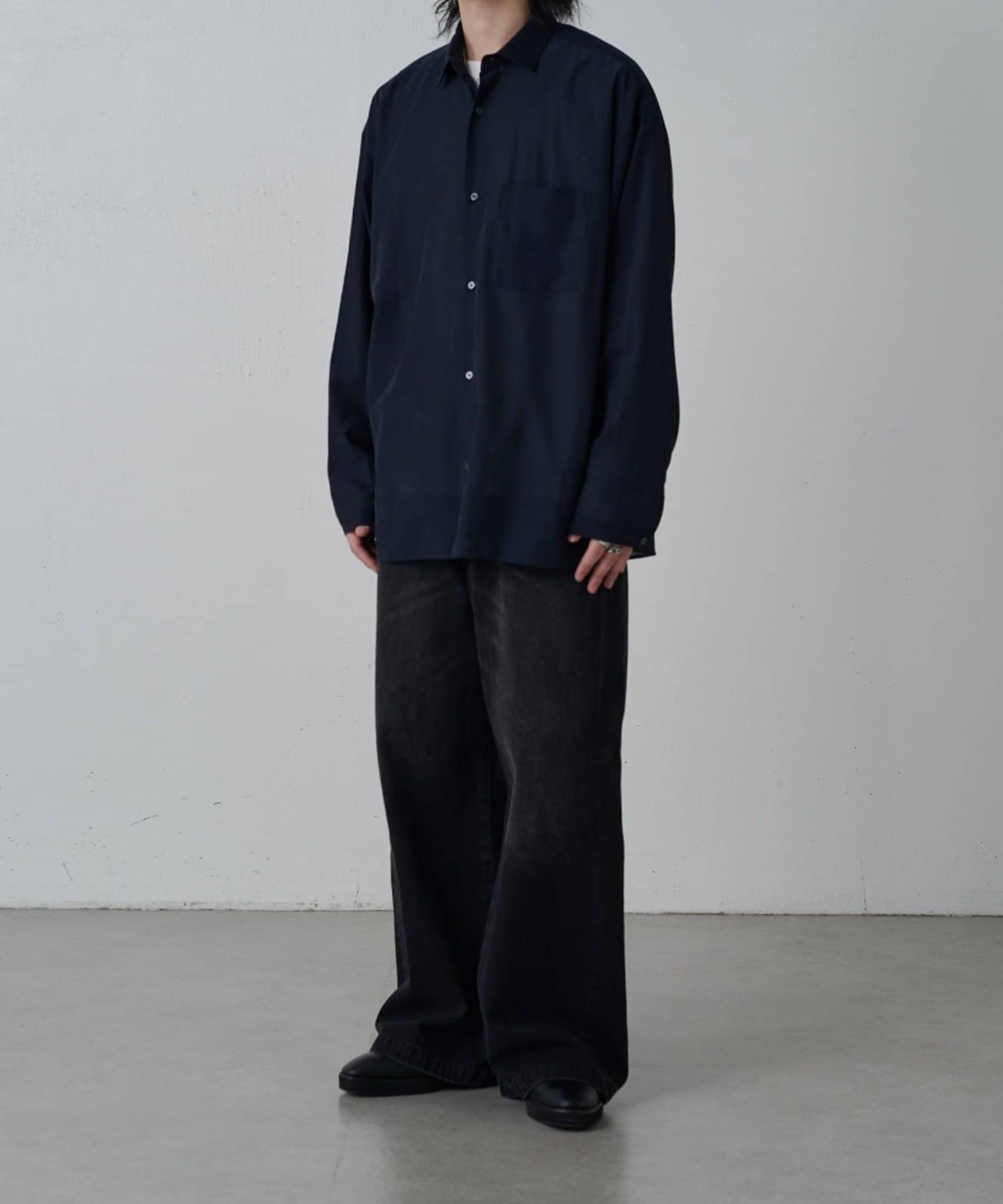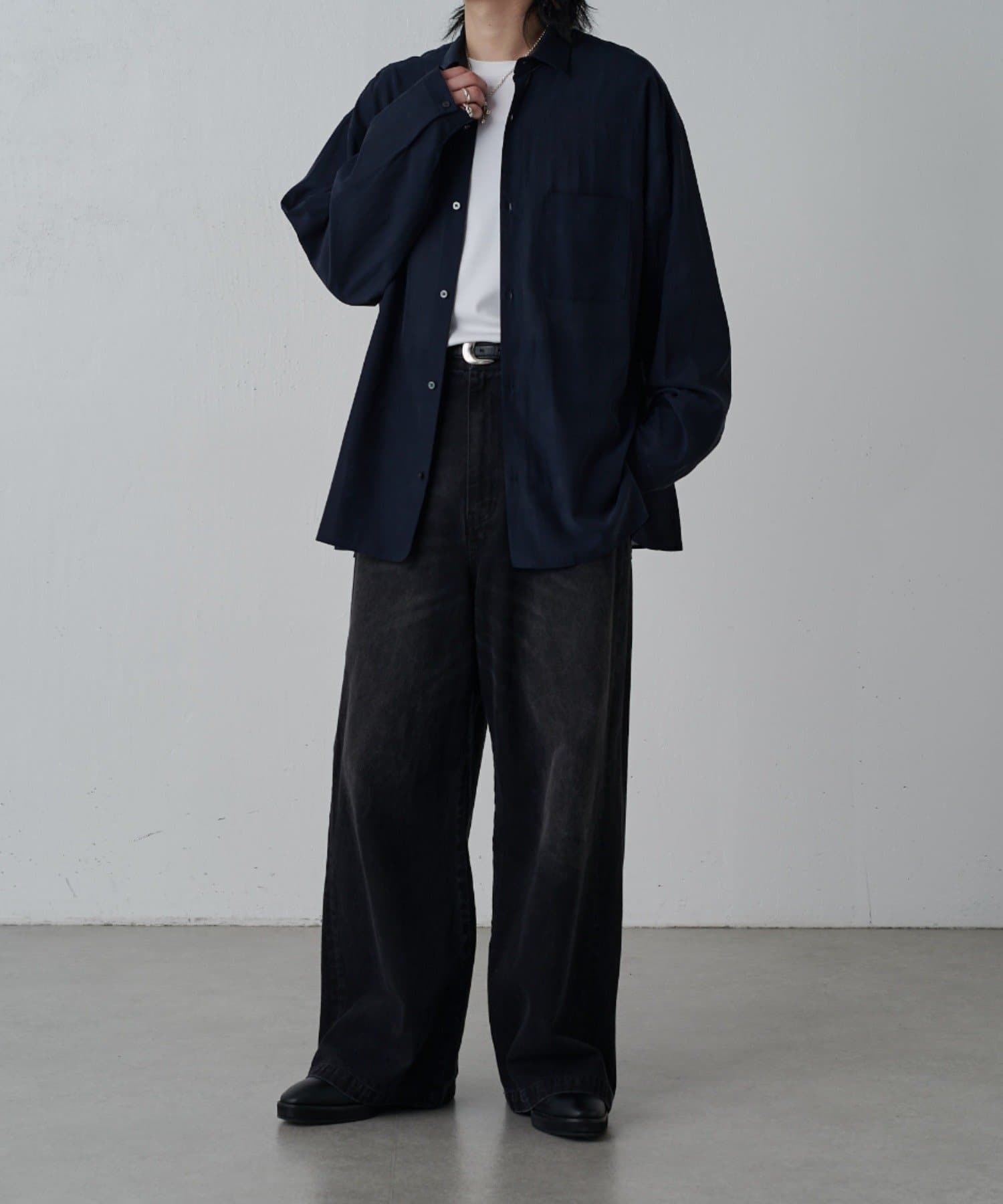・キュプラ素材ならではの上品な品質と程よい抜け感を引き立てる洗練されたモードな雰囲気を演出。