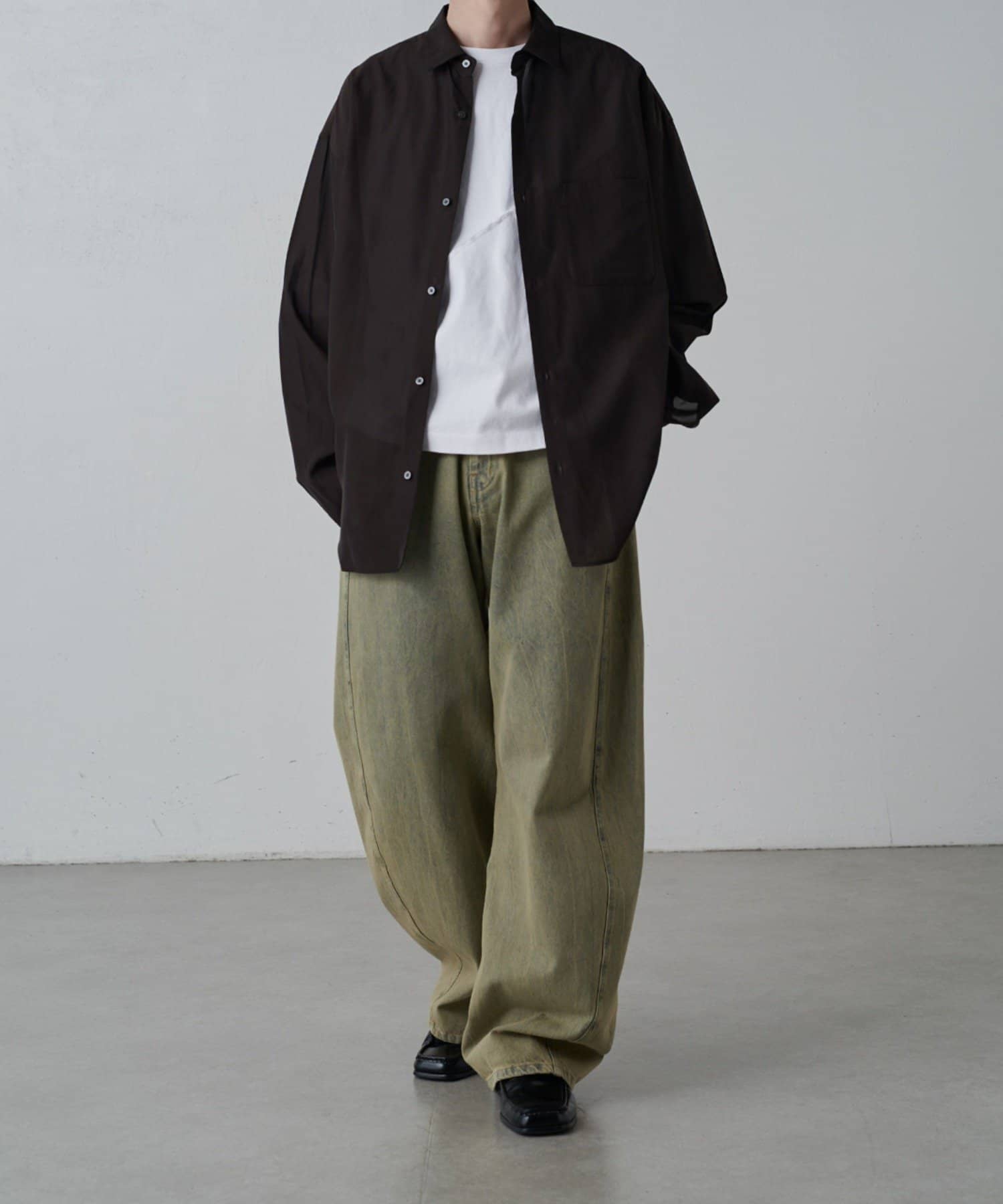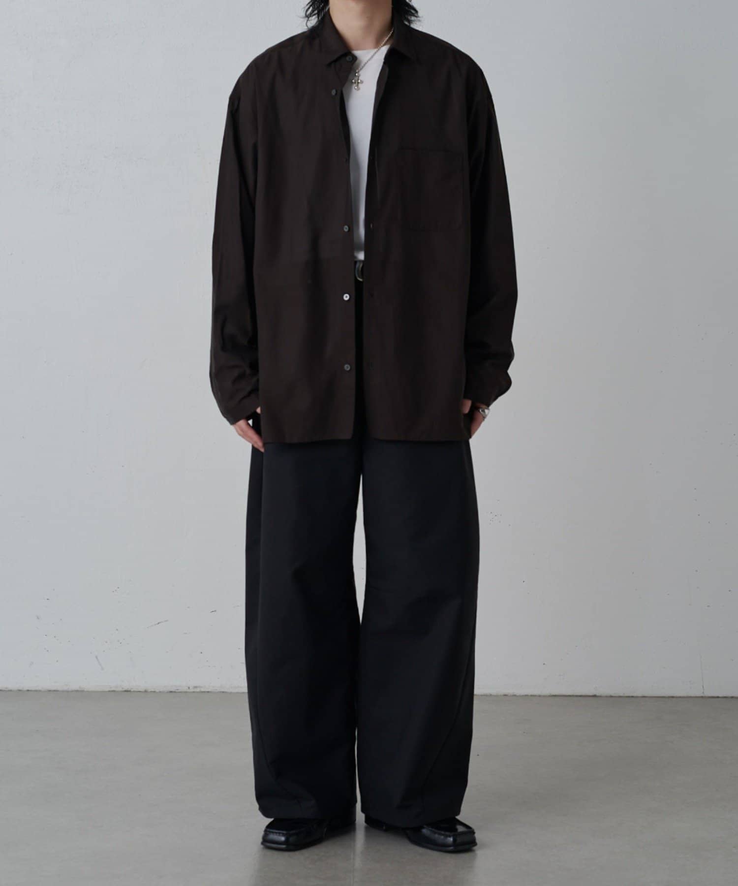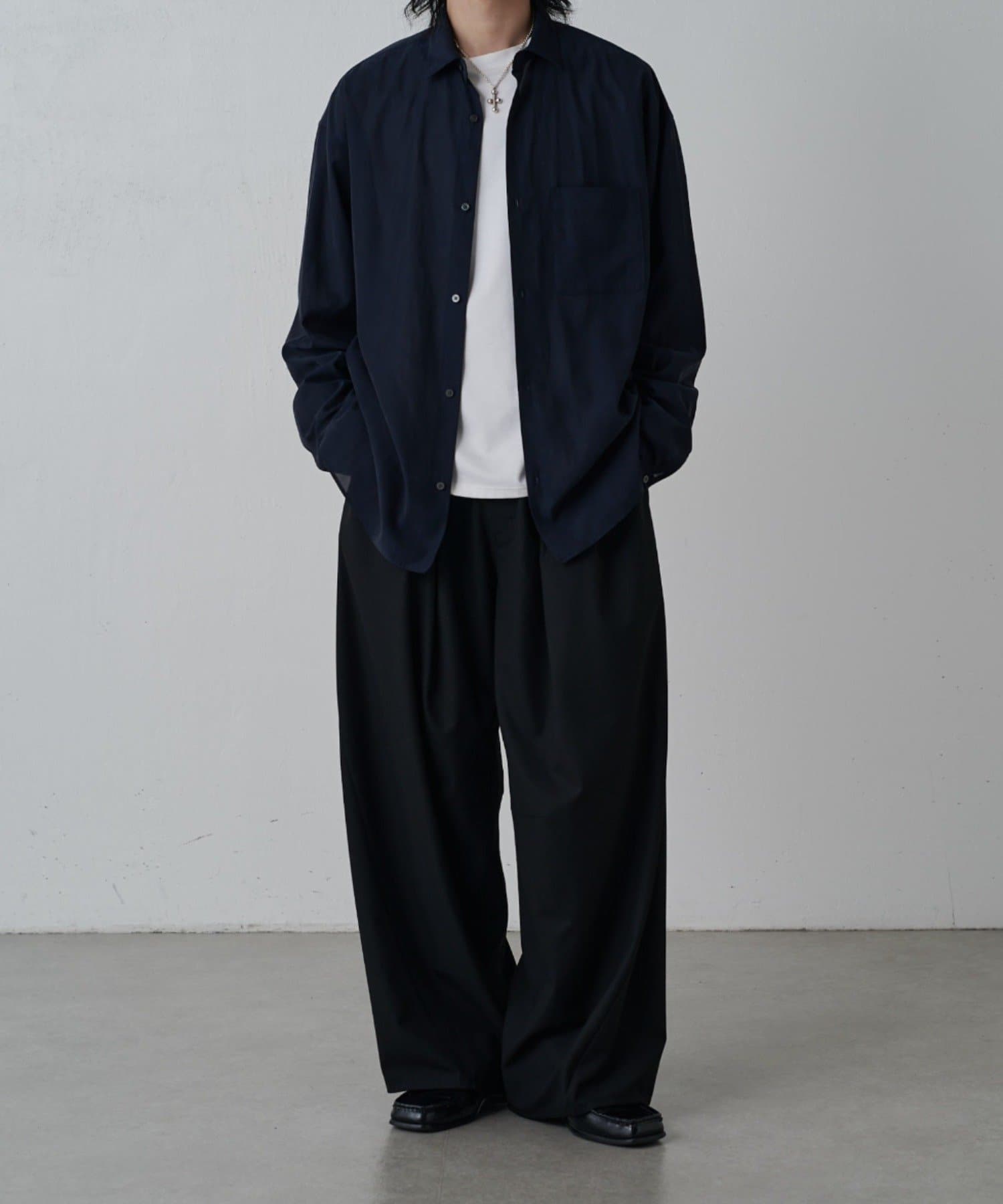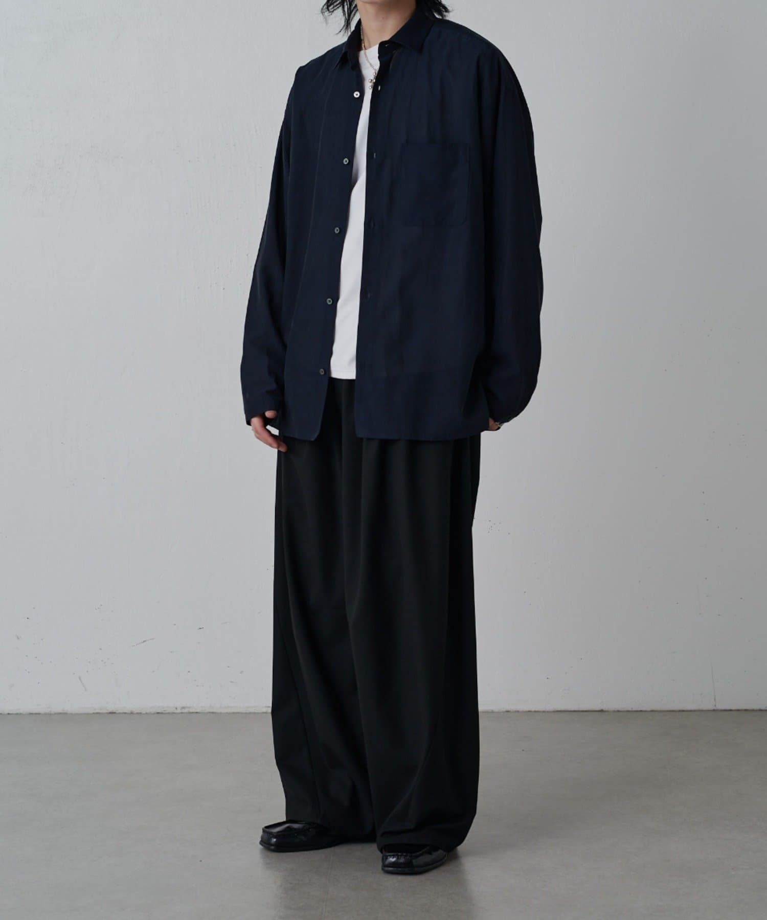 ・程よくゆとりを持たせたシルエットに仕上げることで抜け感を生み、一枚着としてはもちろん軽い羽織としても着回しやすいバランス設計。