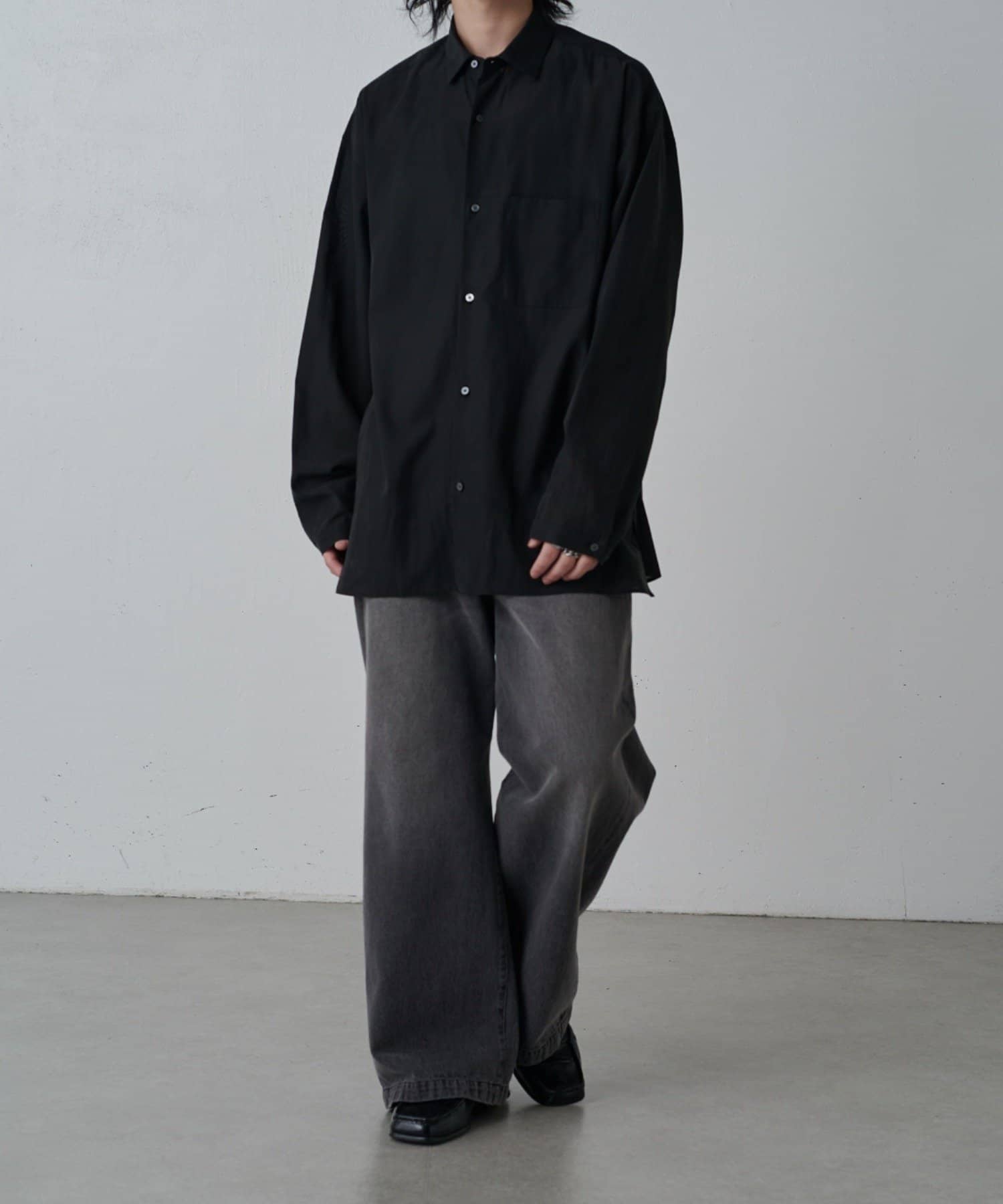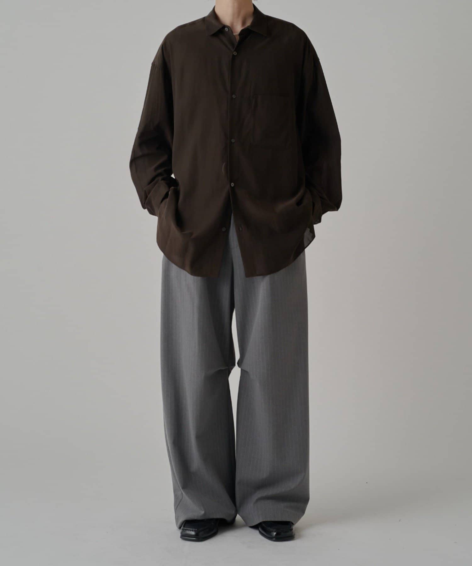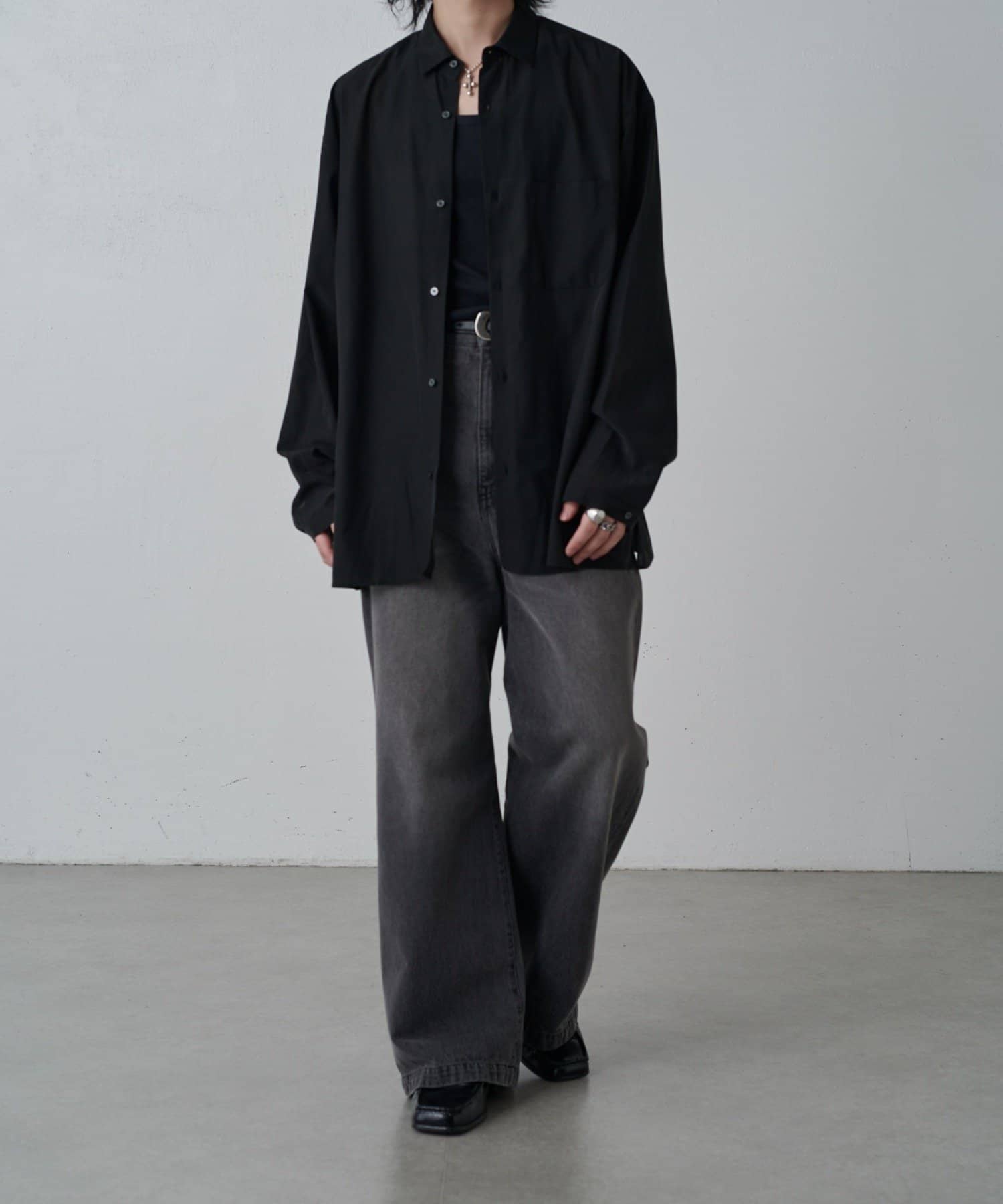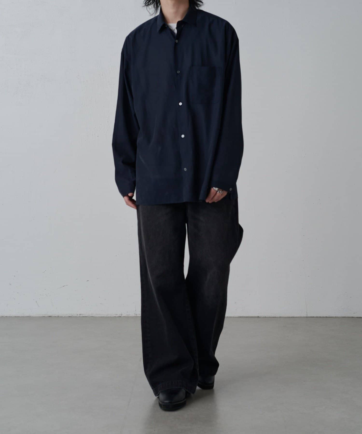 ・程よくゆとりを持たせたシルエットに仕上げることで抜け感を生み、一枚着としてはもちろん軽い羽織としても着回しやすいバランス設計。