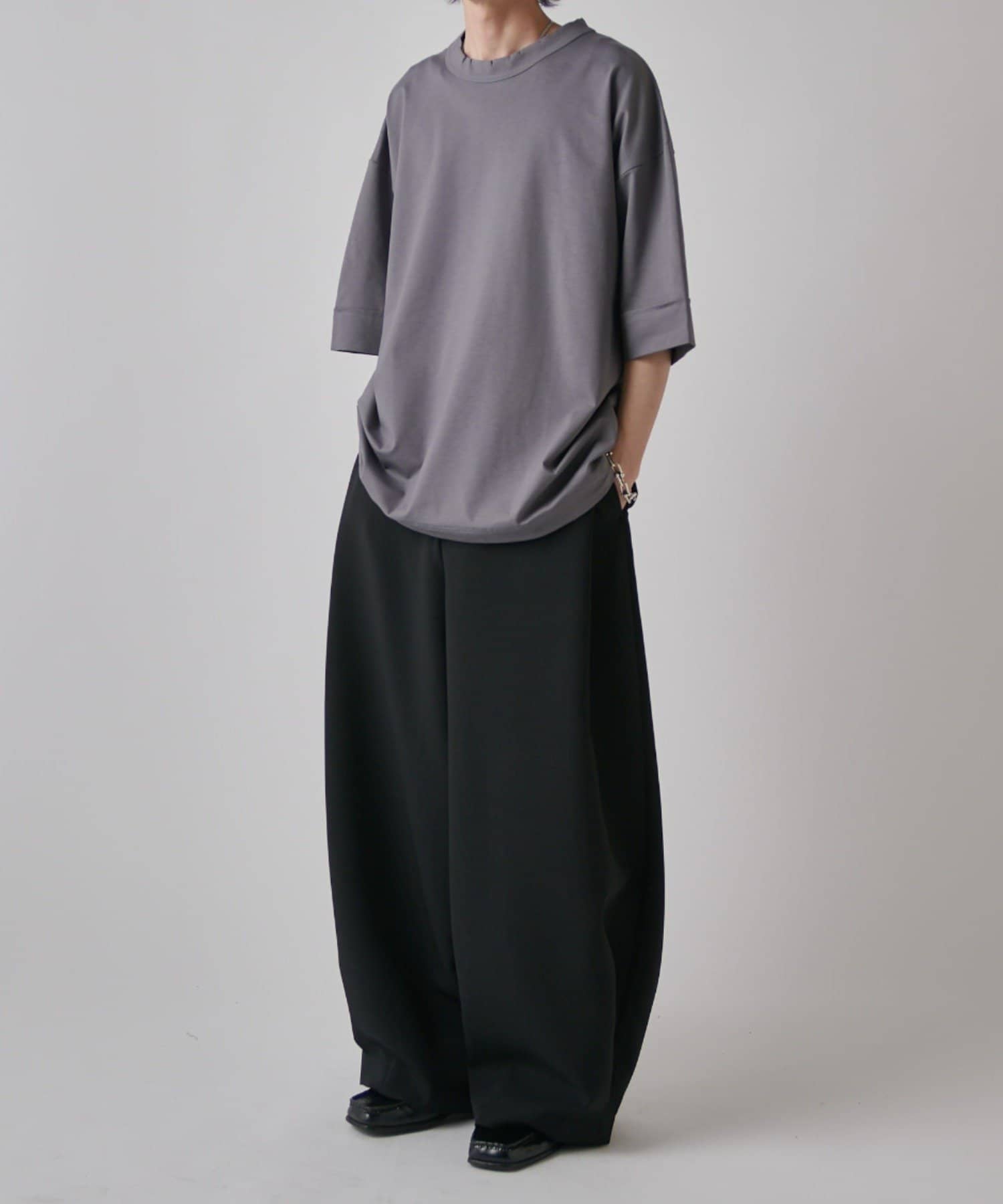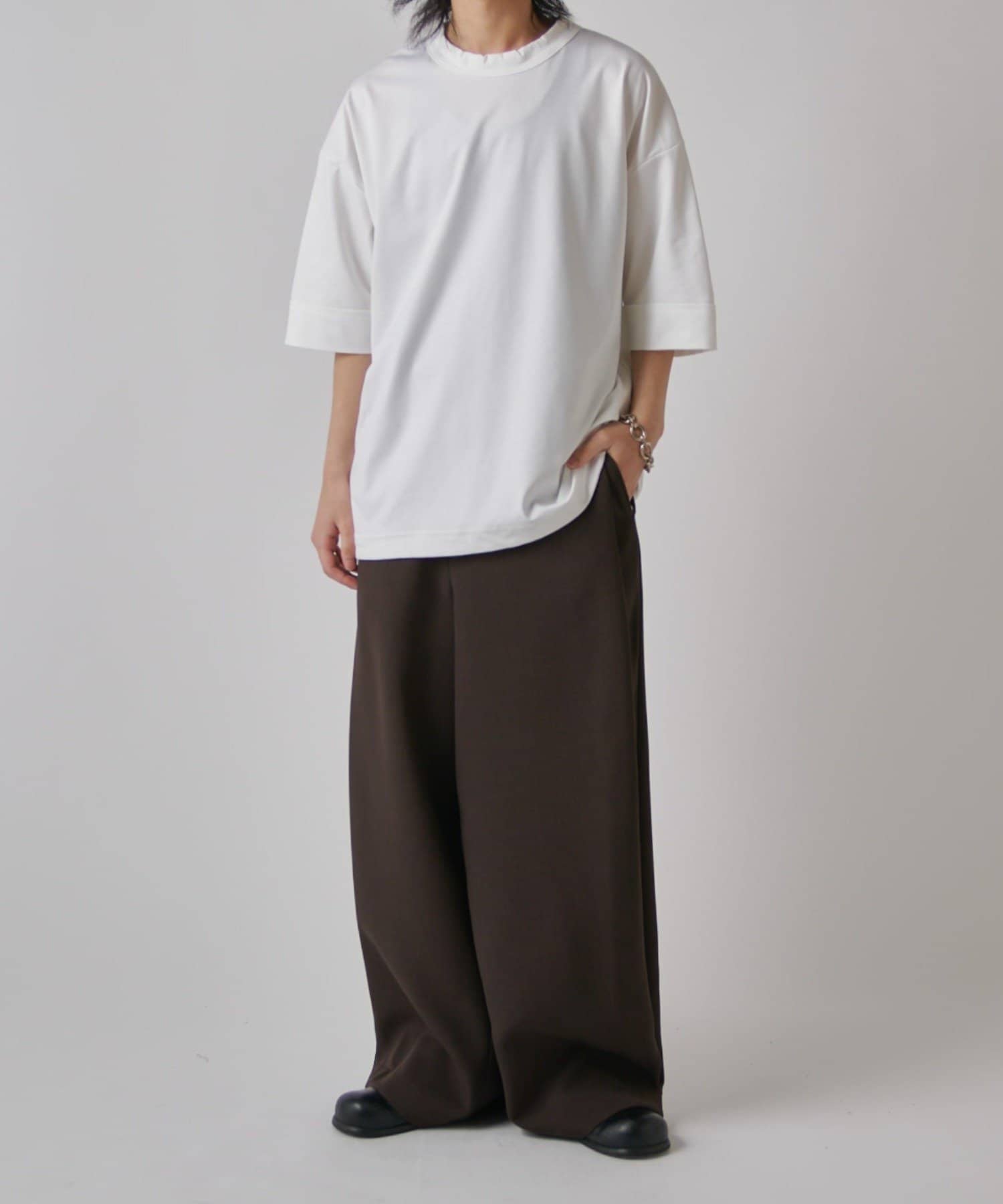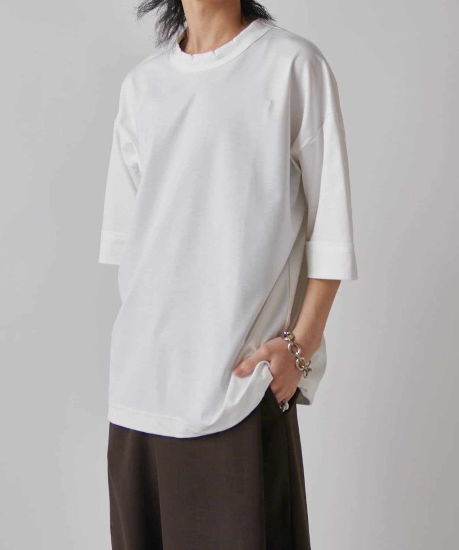 無地Tの存在感を楽しめるアイテムです。また、裾にはドローコードが付いており、丈感やシルエットを絞って調節することが出来ます。