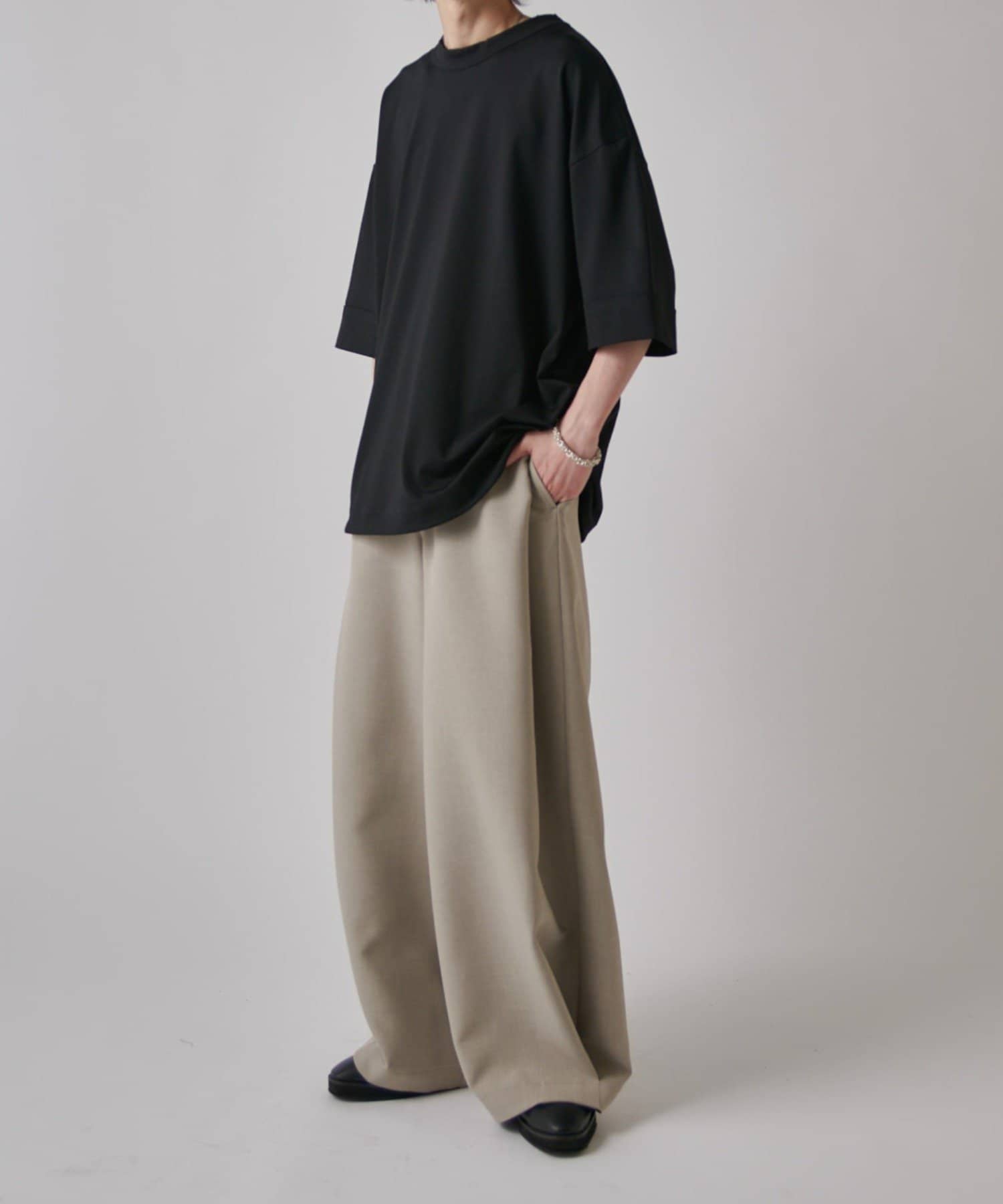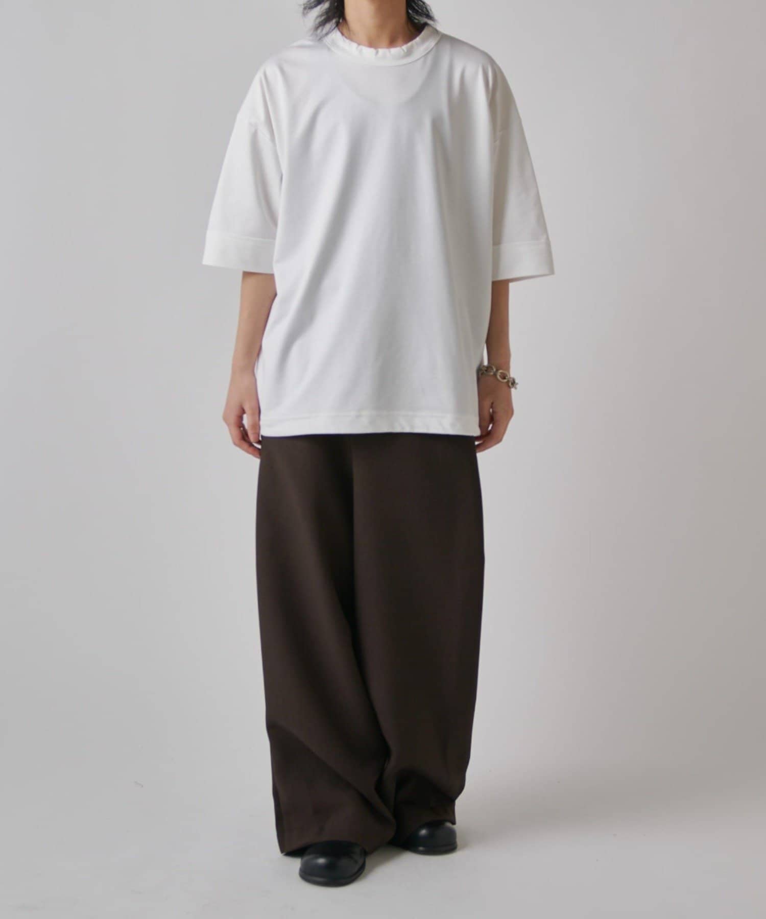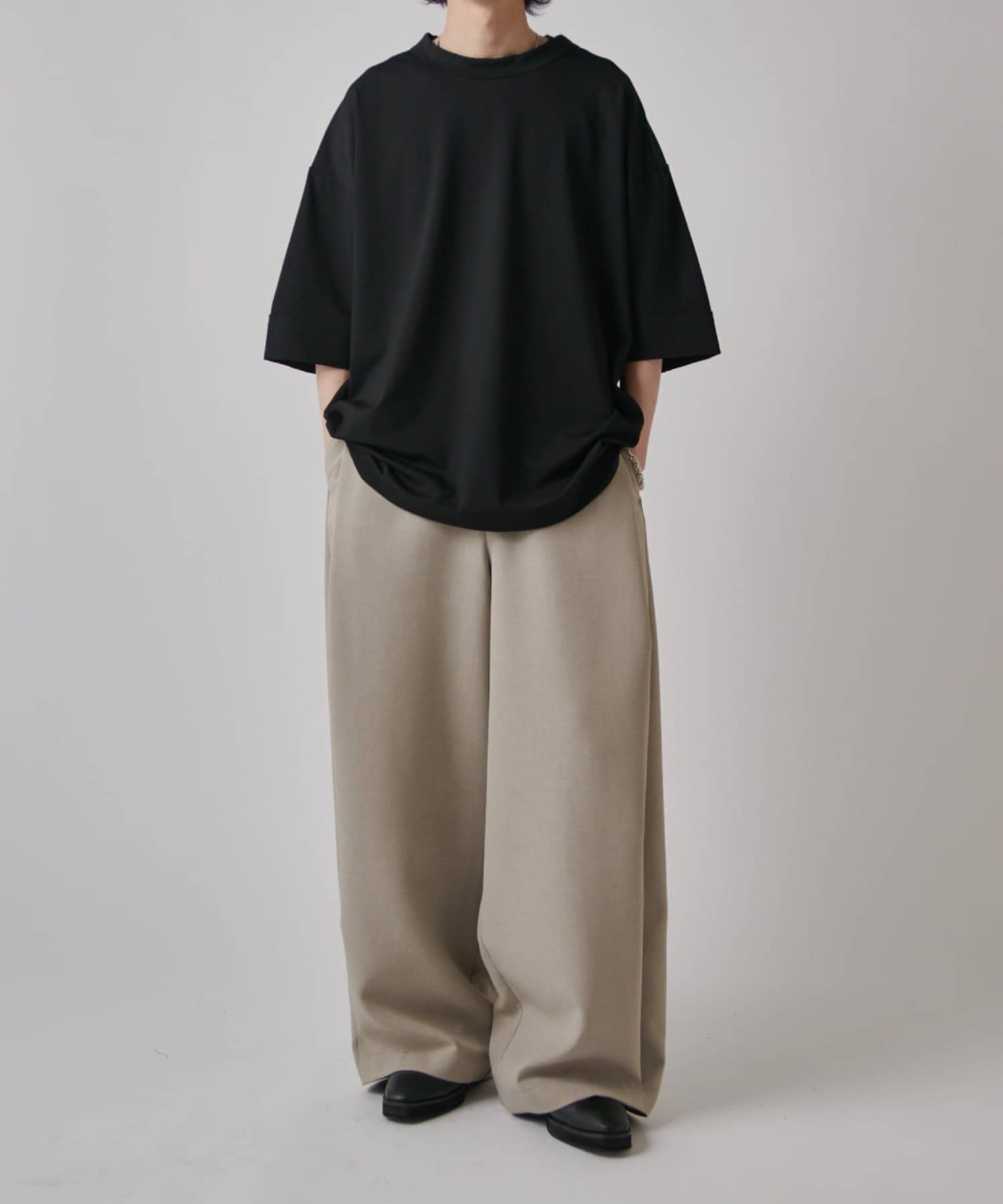 無地Tの存在感を楽しめるアイテムです。また、裾にはドローコードが付いており、丈感やシルエットを絞って調節することが出来ます。