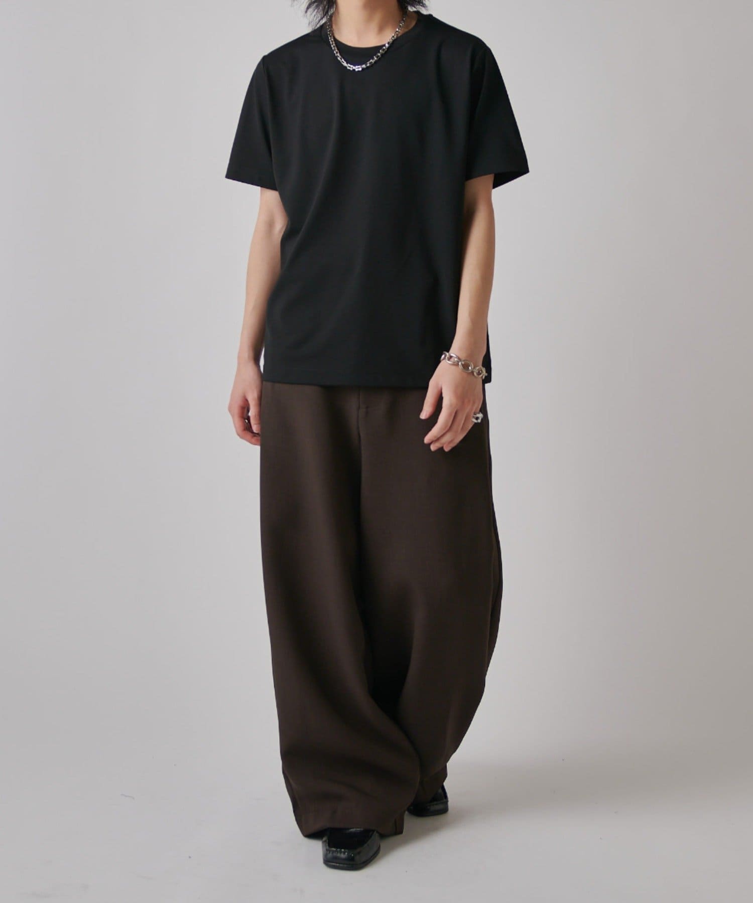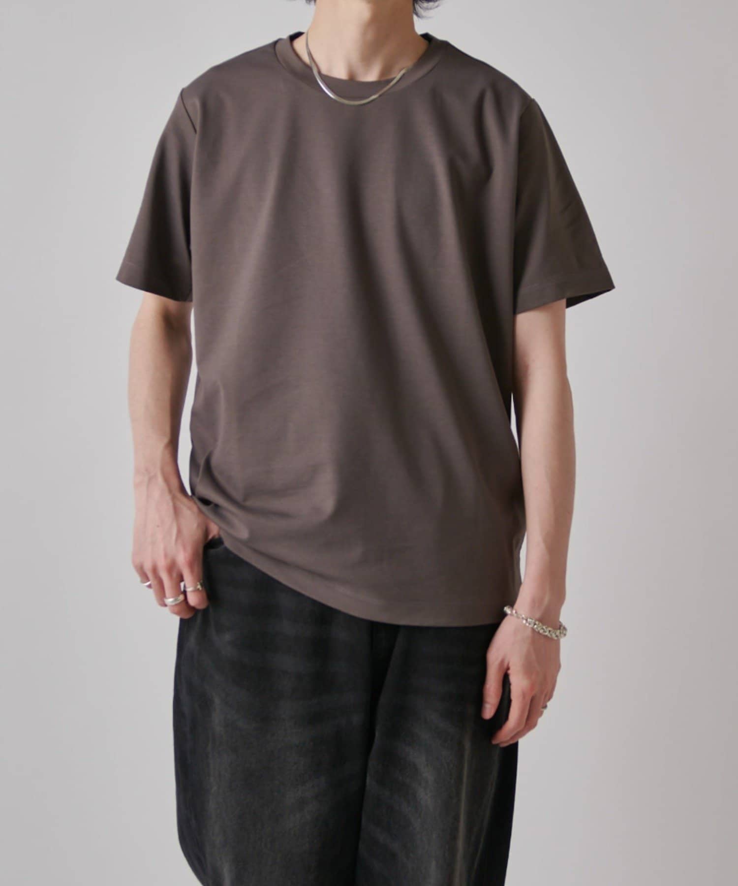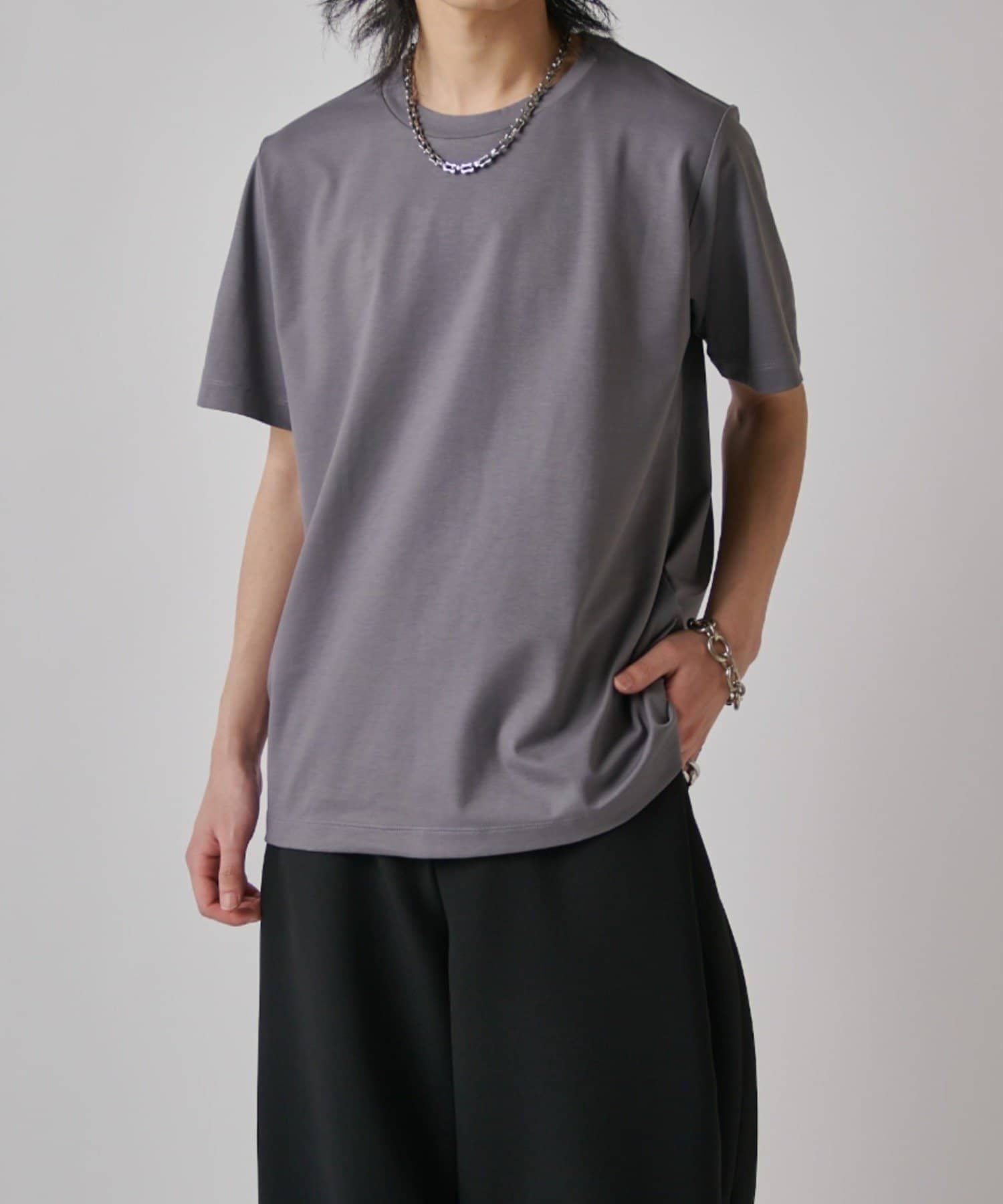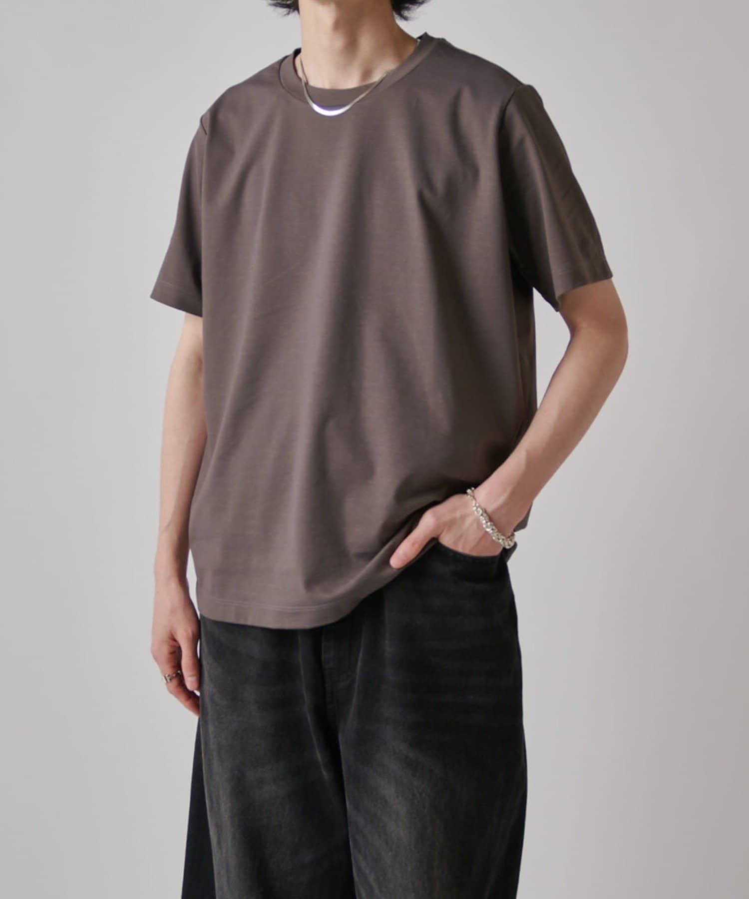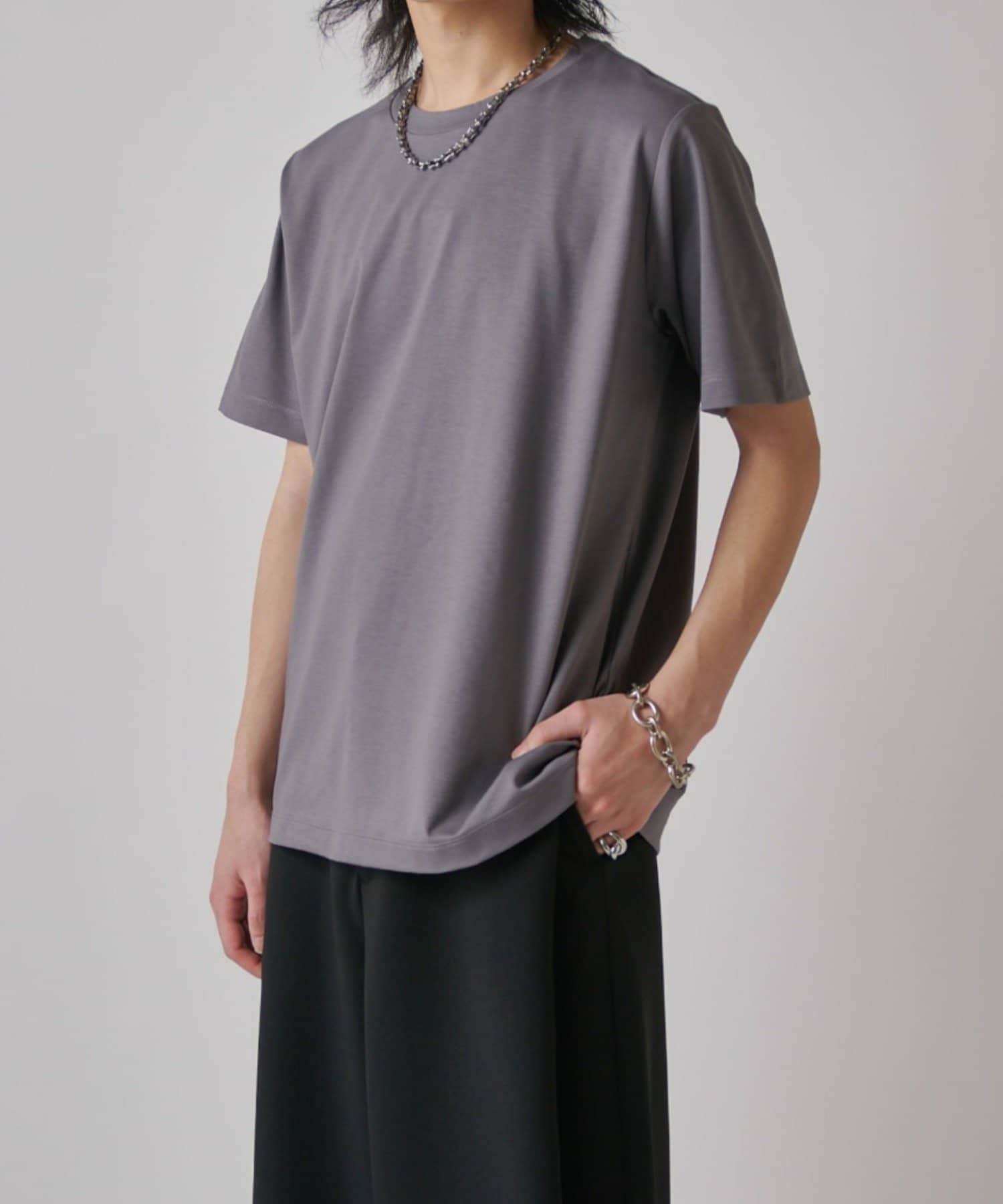 肌触りの良さと、見た目の光沢感が特徴的で、一枚で着て頂けるアイテム。