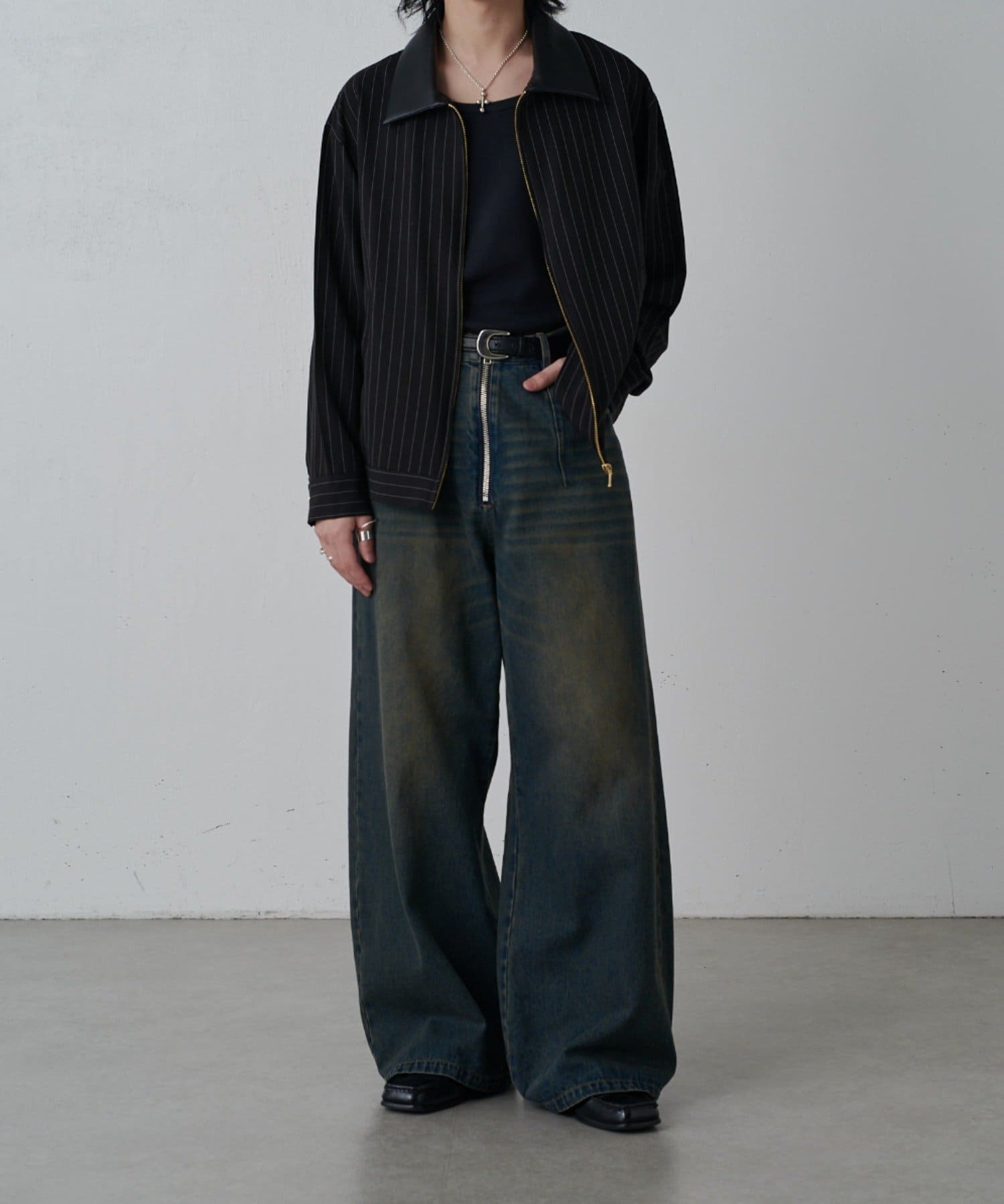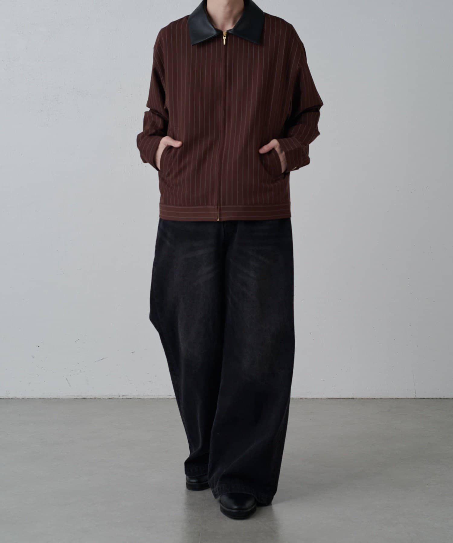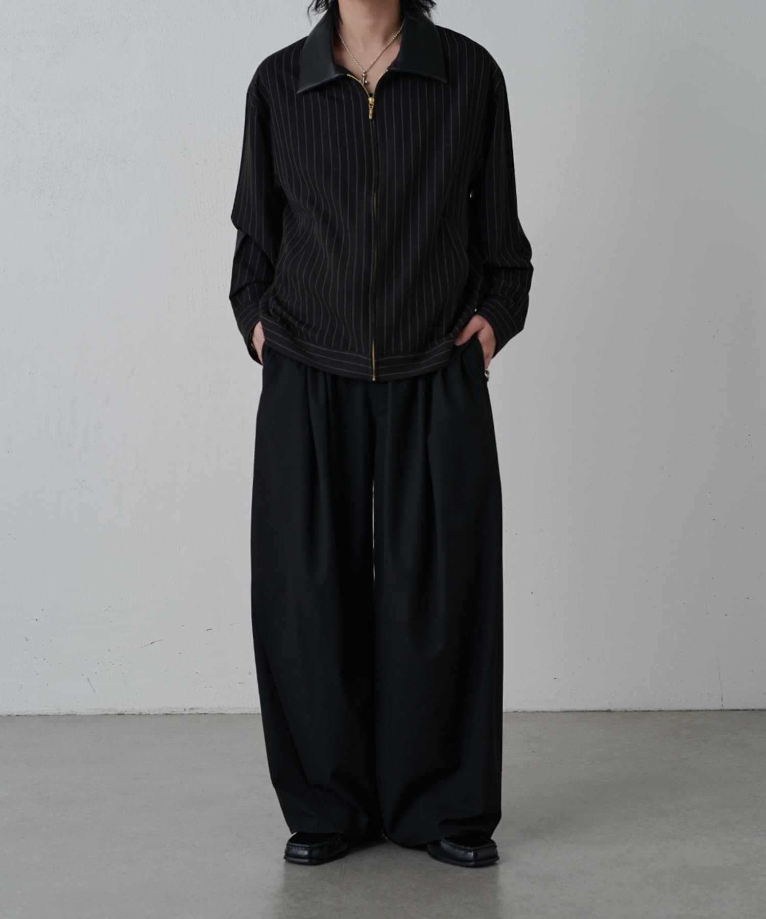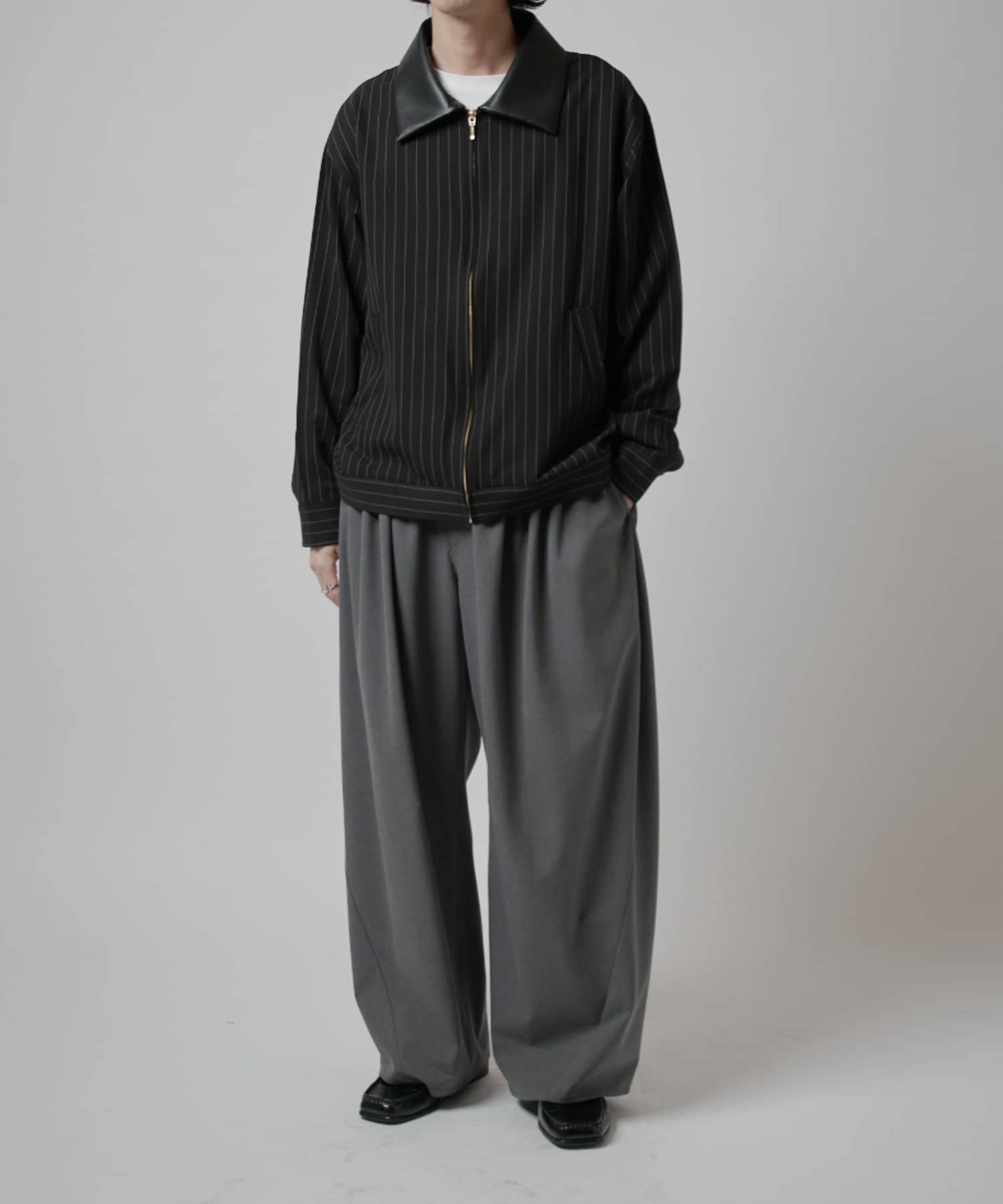 ピンストライプジップシャツブルゾン