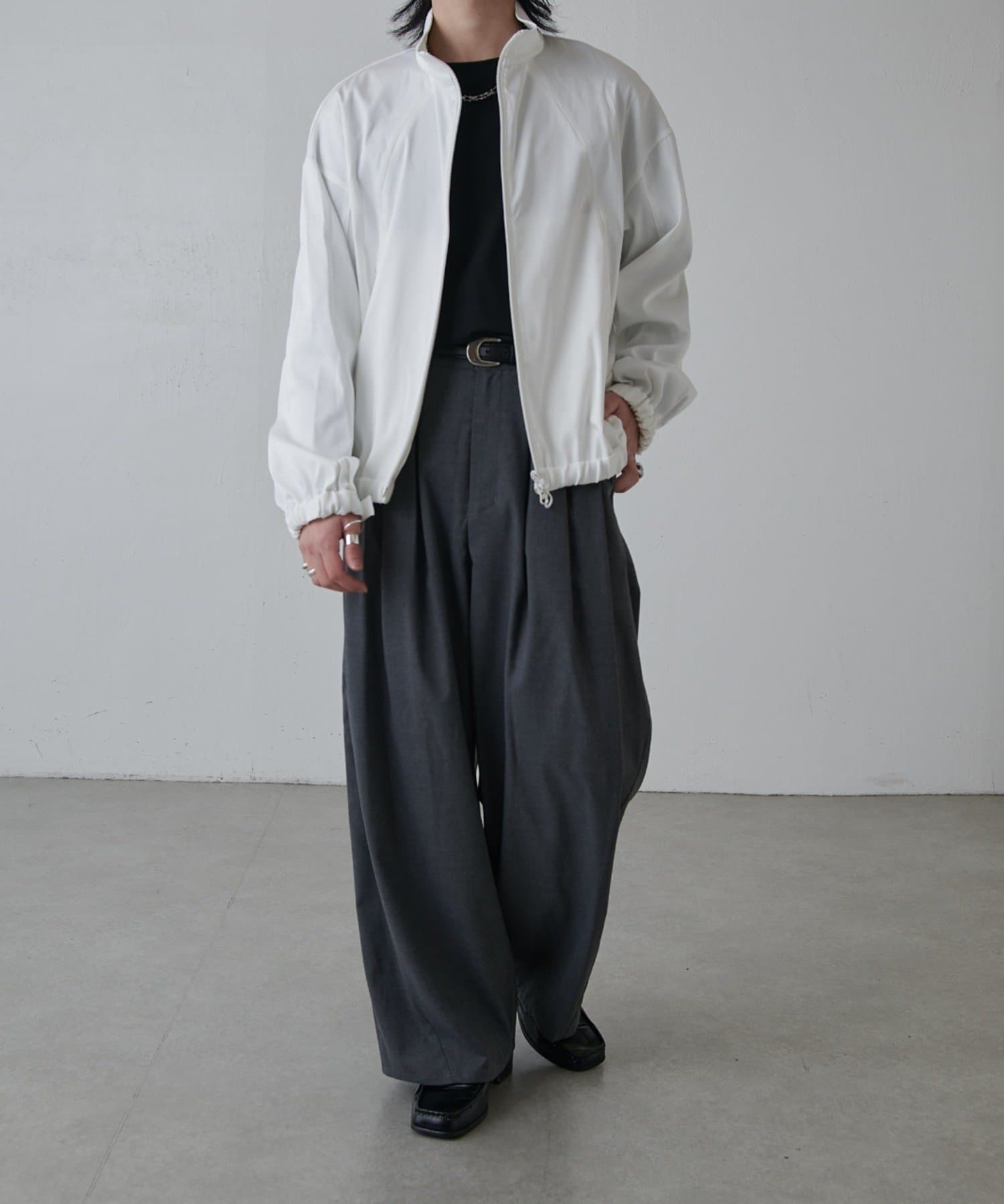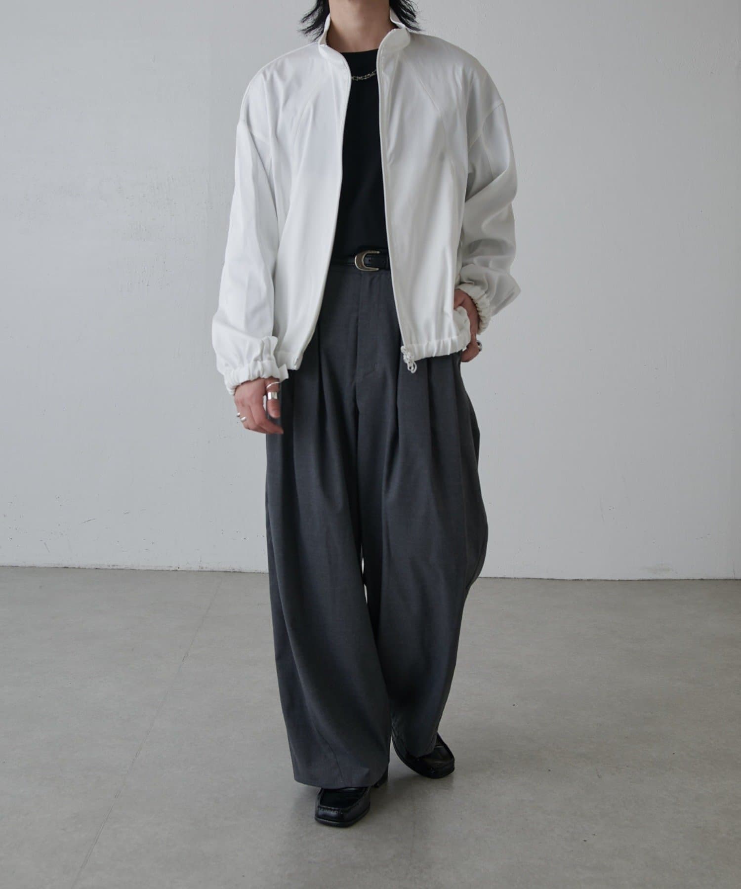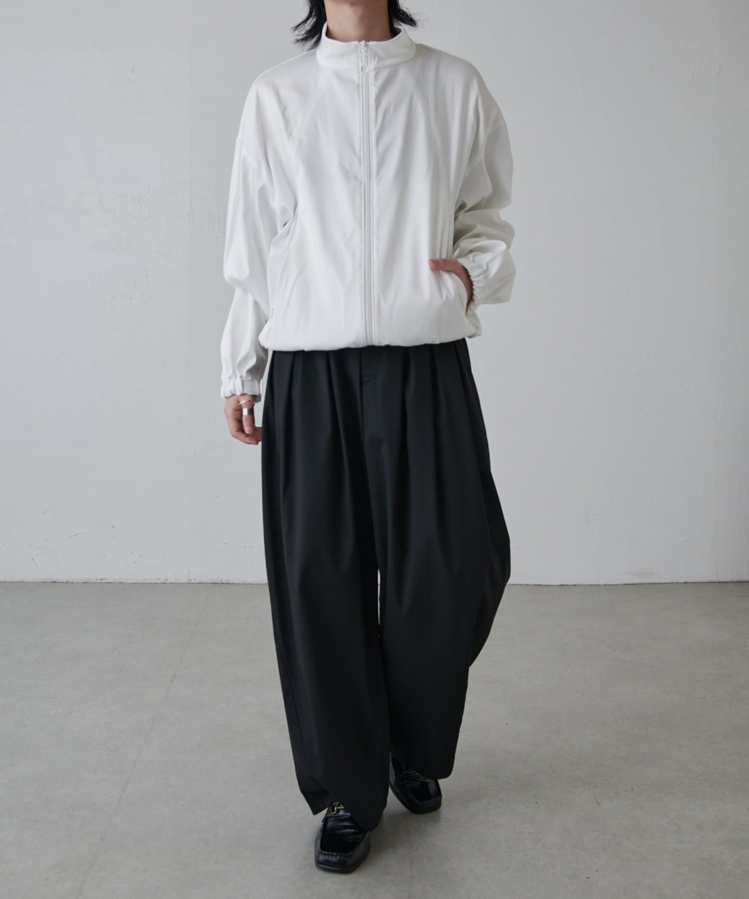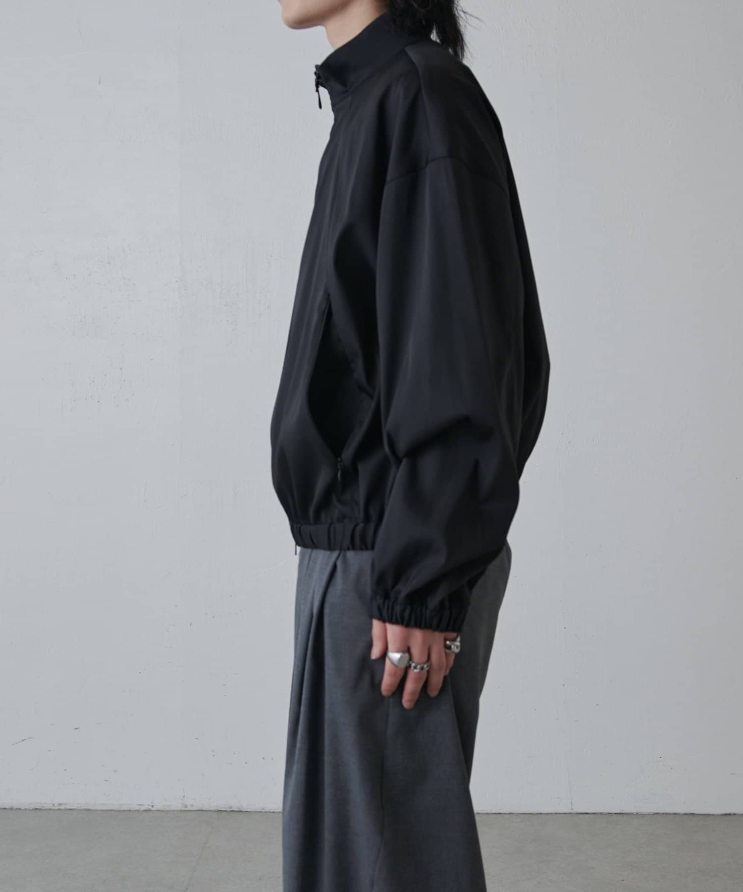 ・スタンドカラーとしても着用可能なジップブルゾン