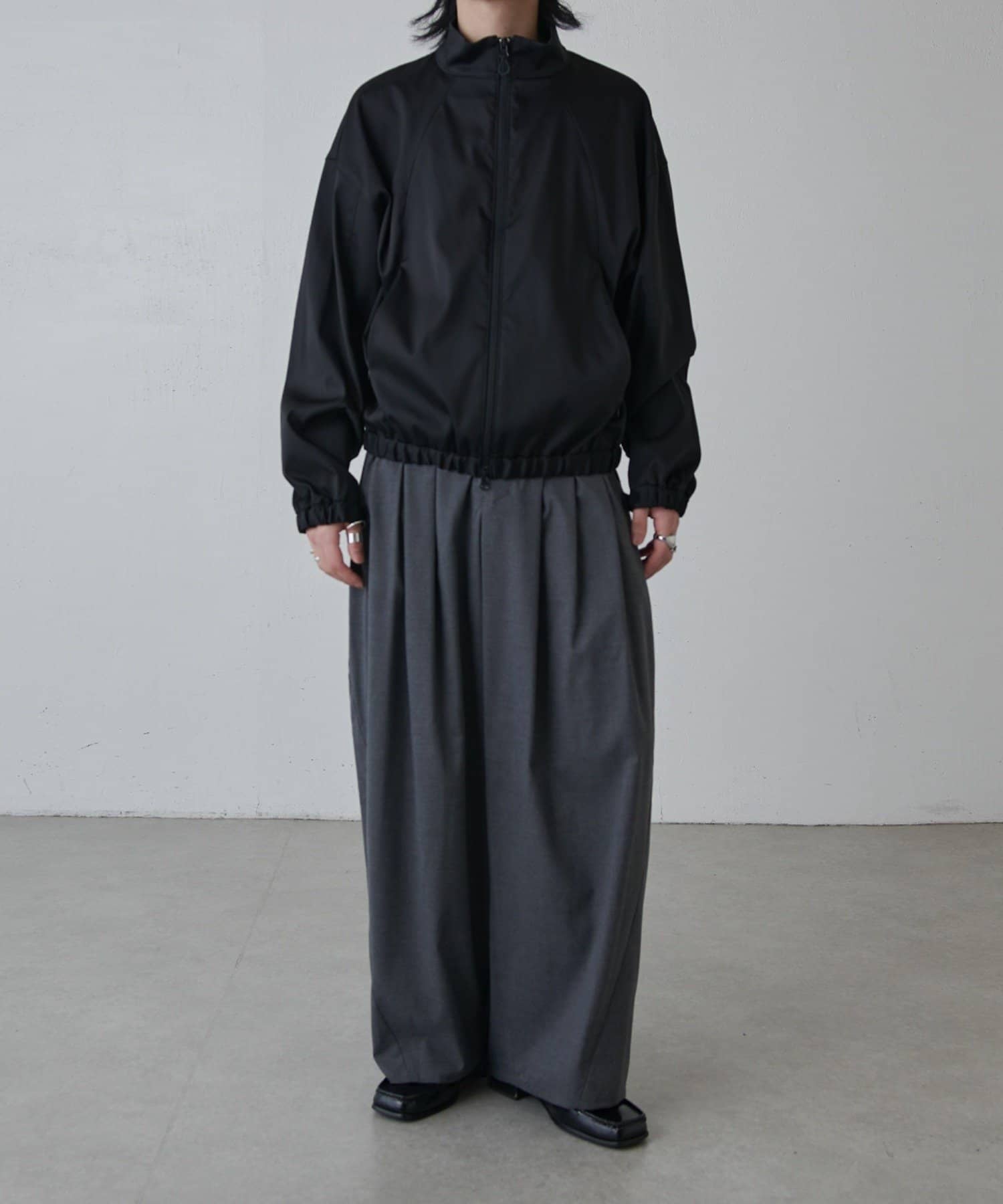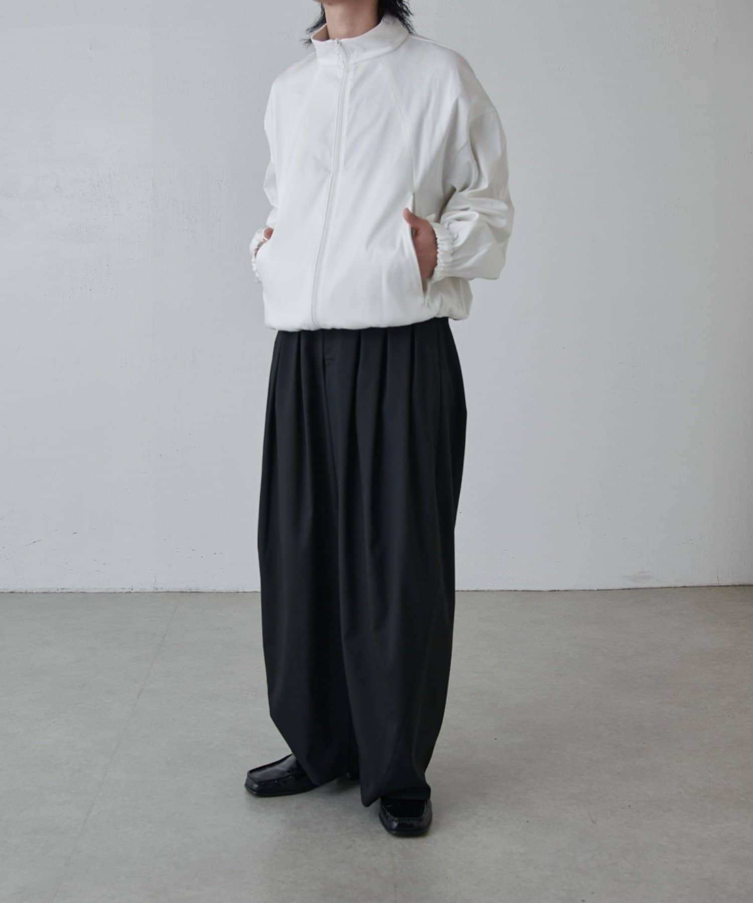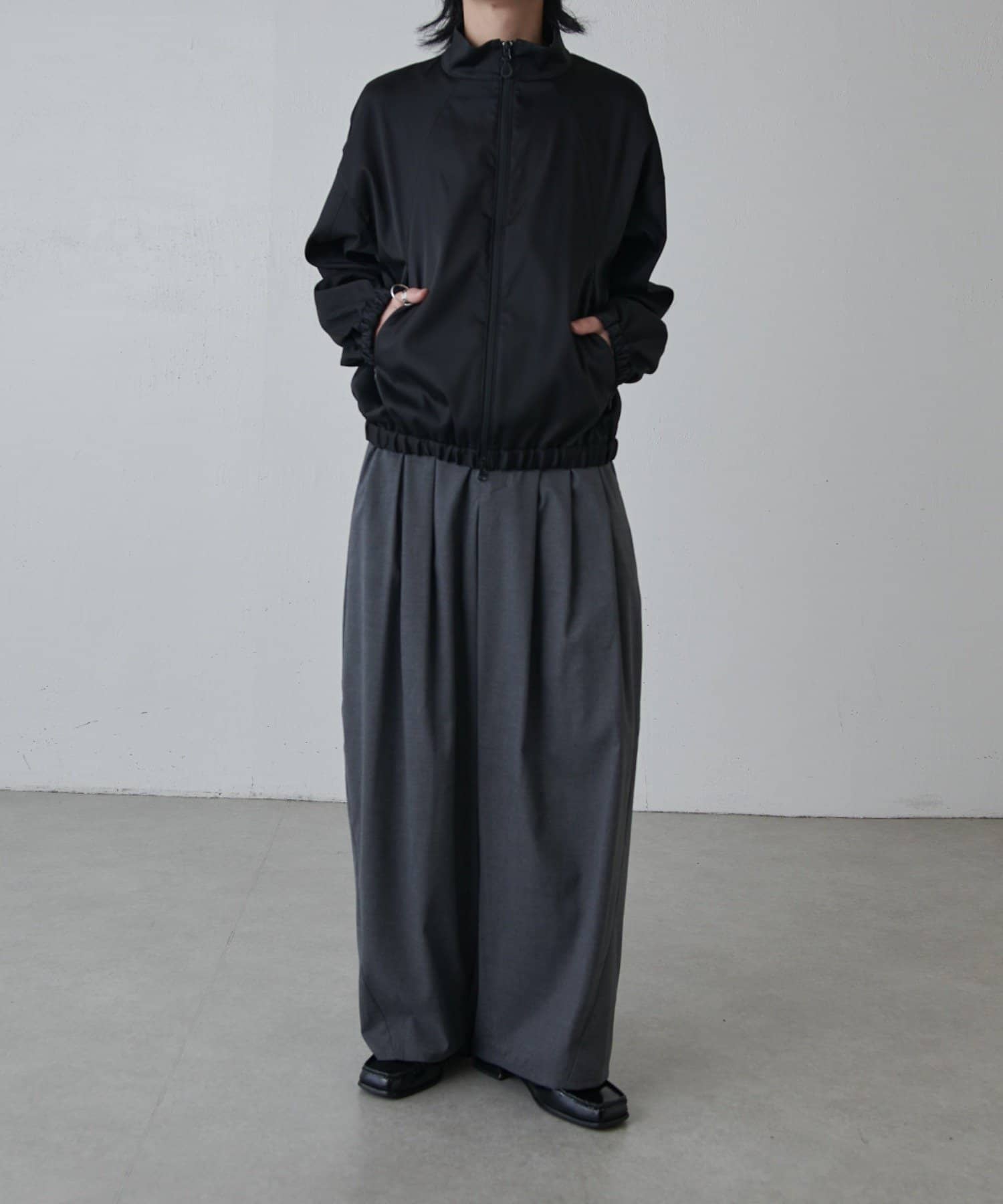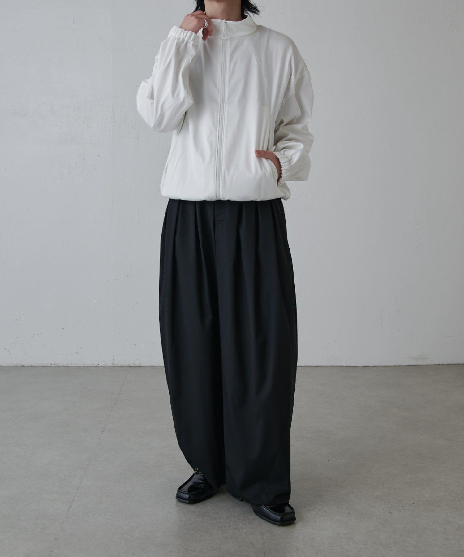 ・スタンドカラーとしても着用可能なジップブルゾン