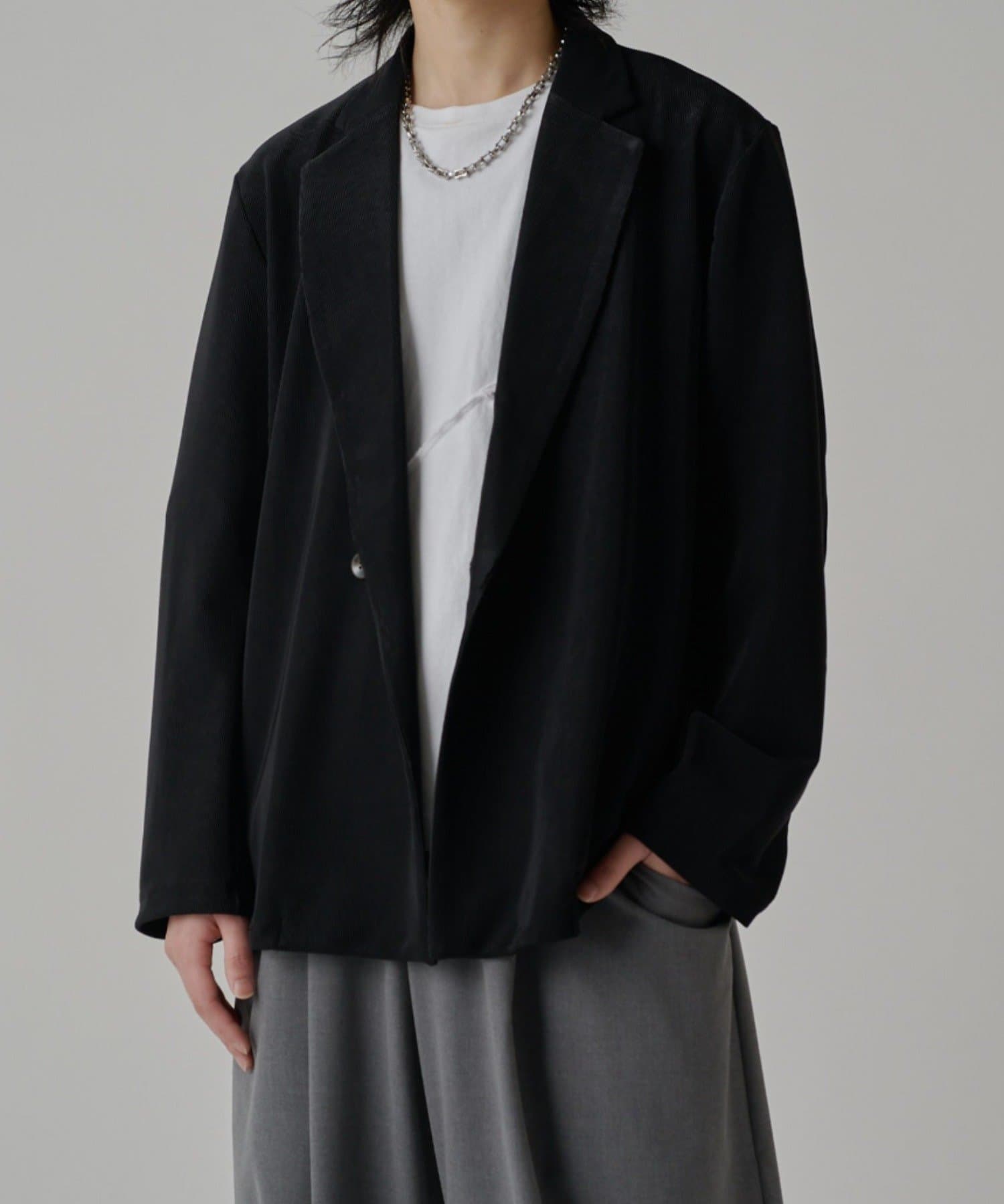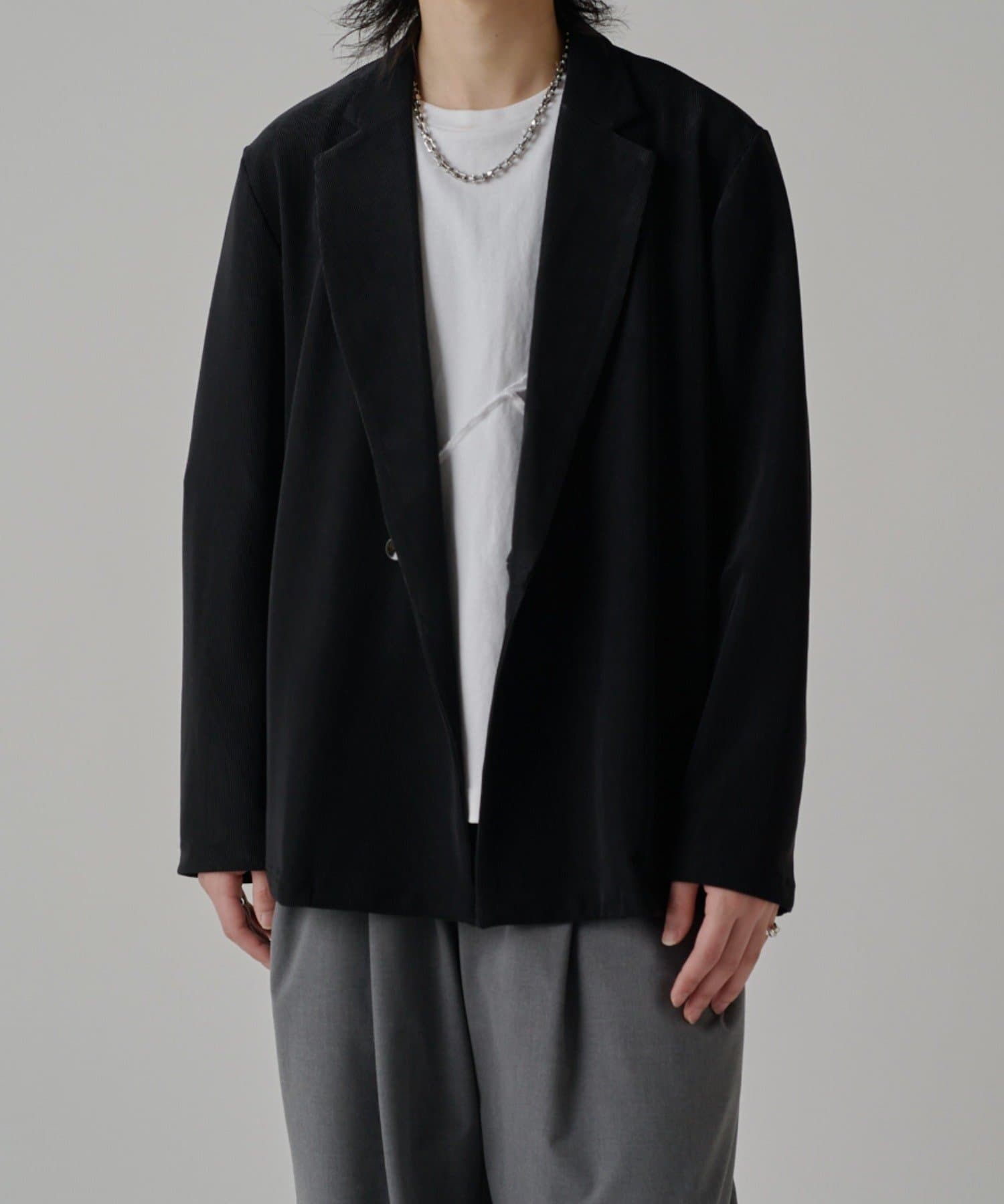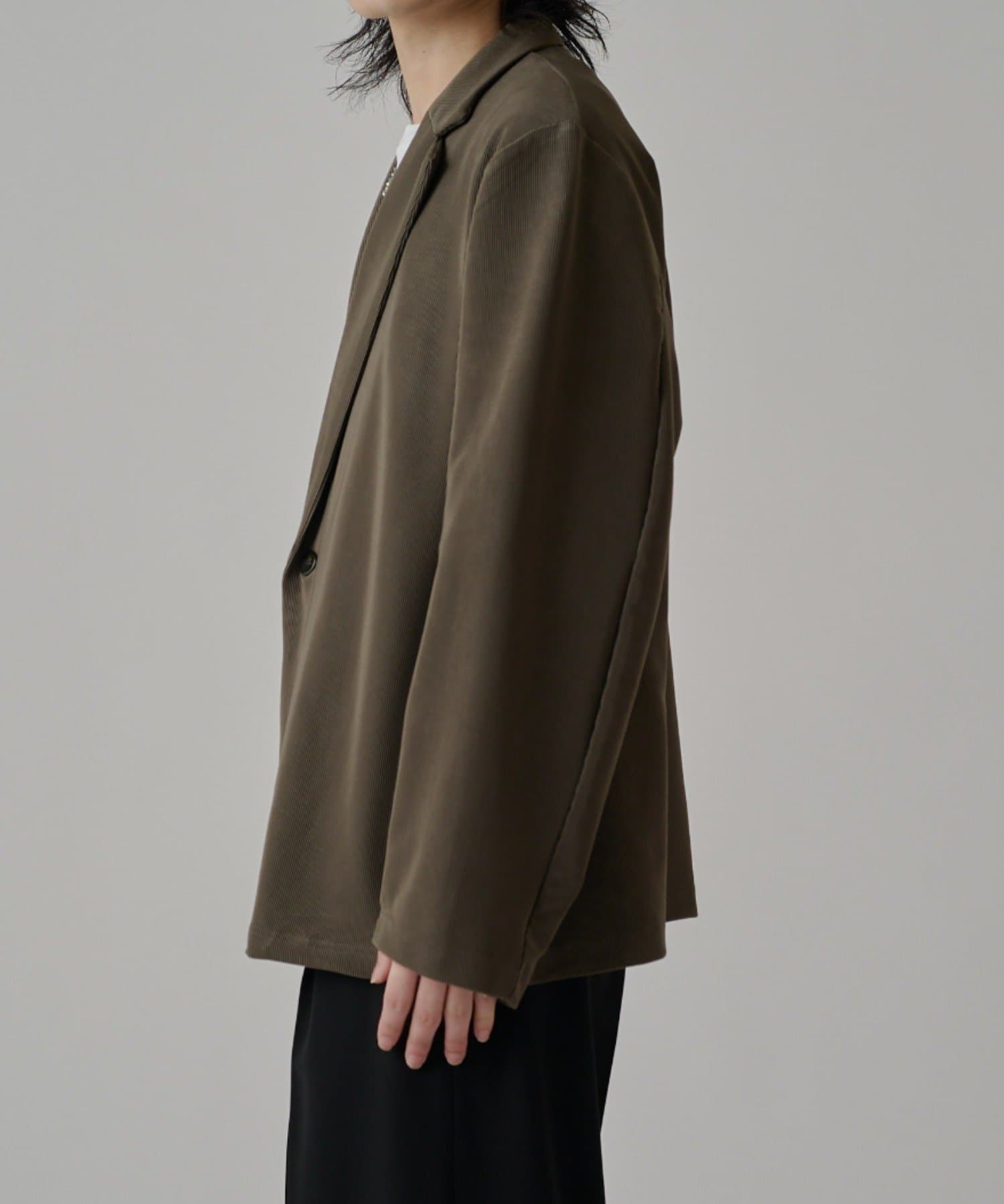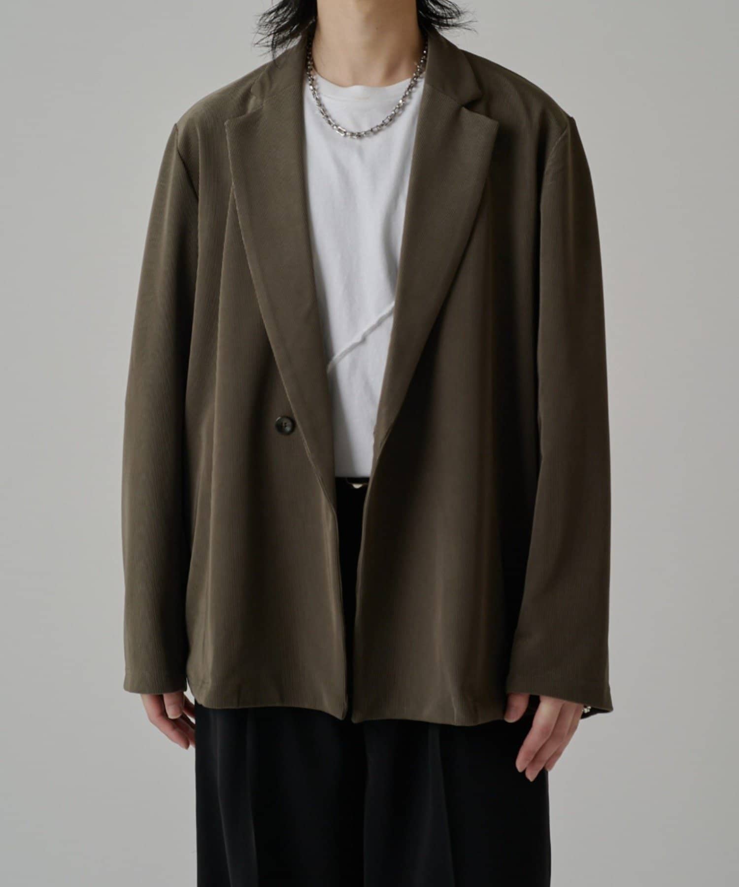 ・凹凸感のある素材感が特徴的な、やや緩めのサイジングのジャケット。