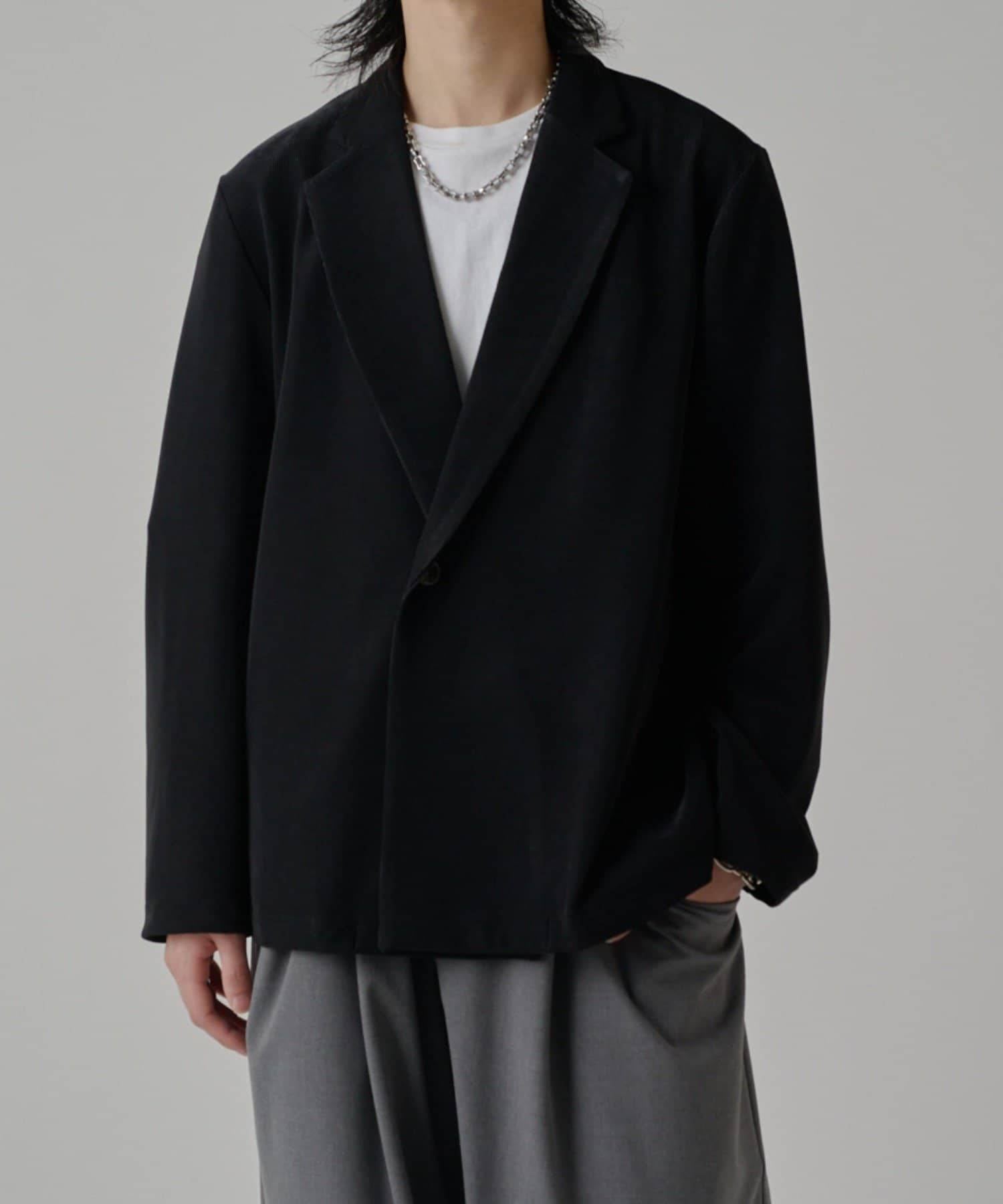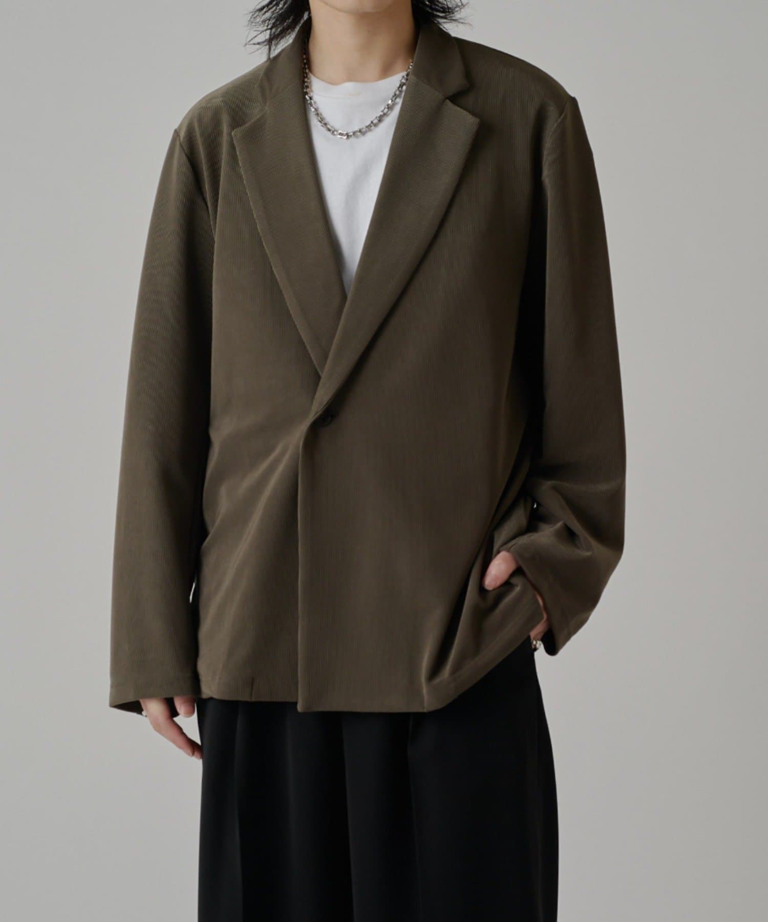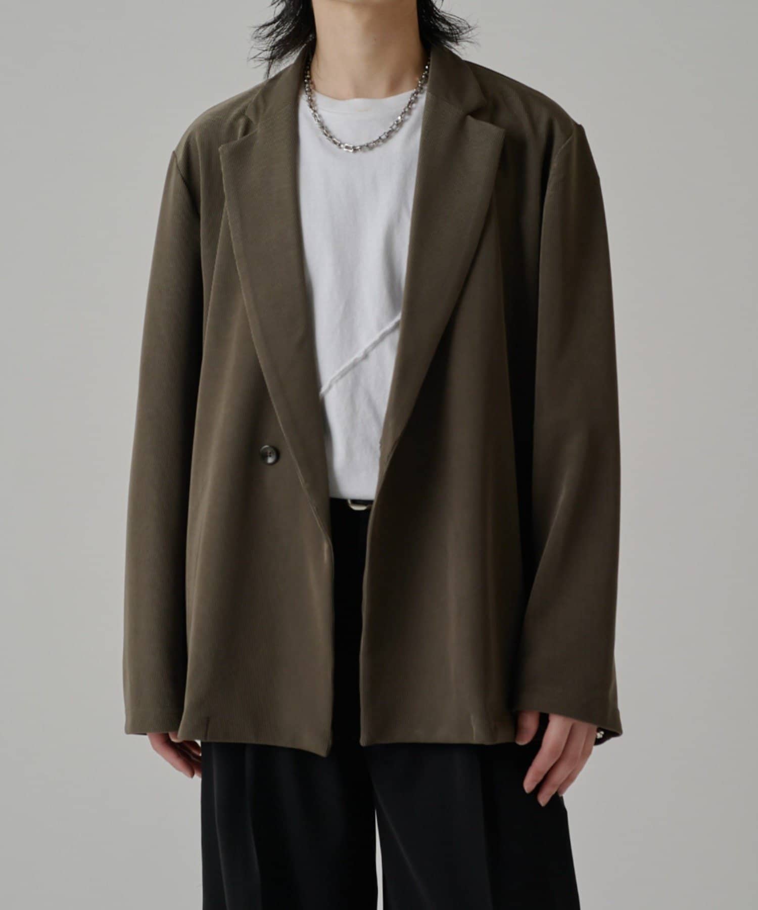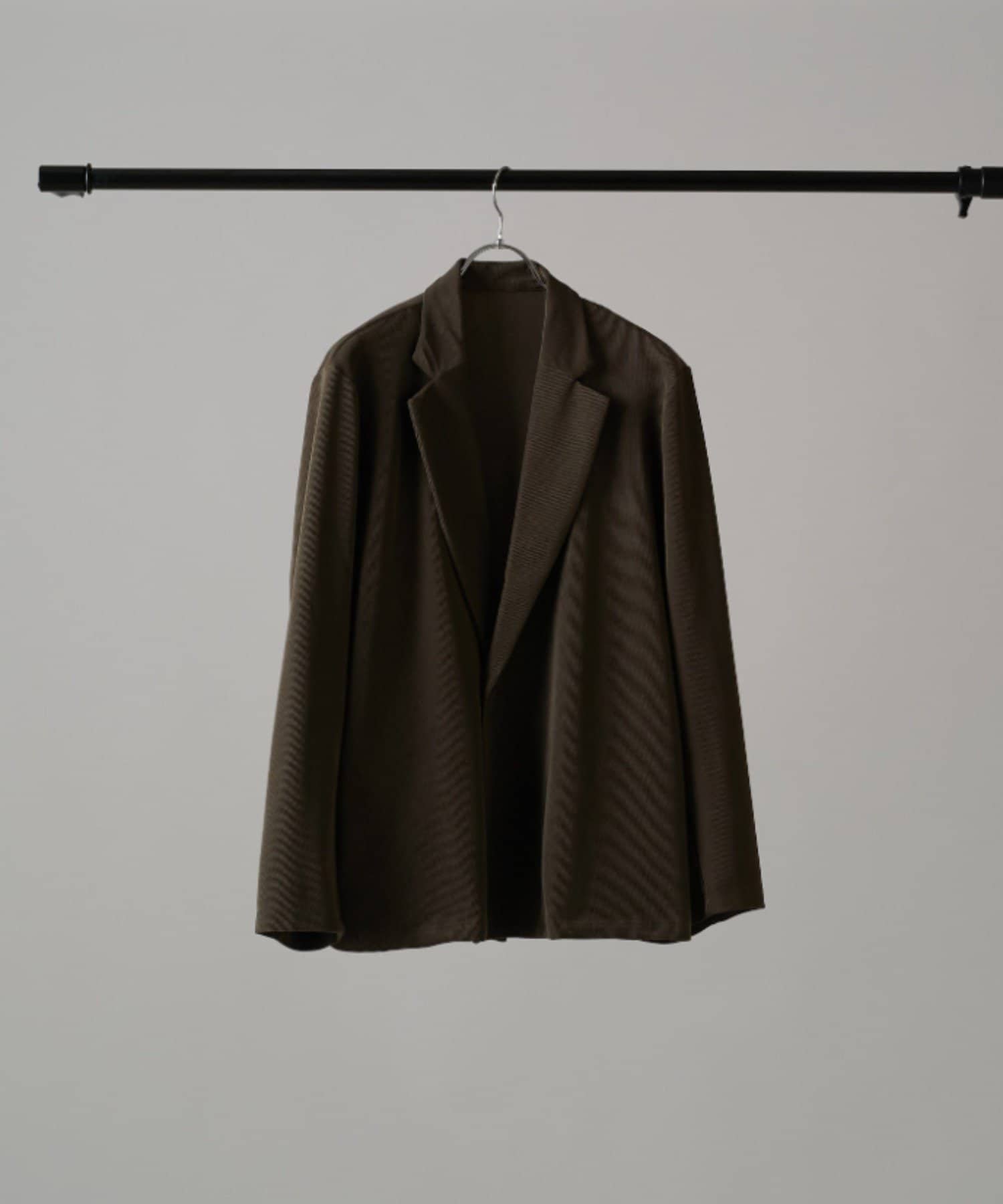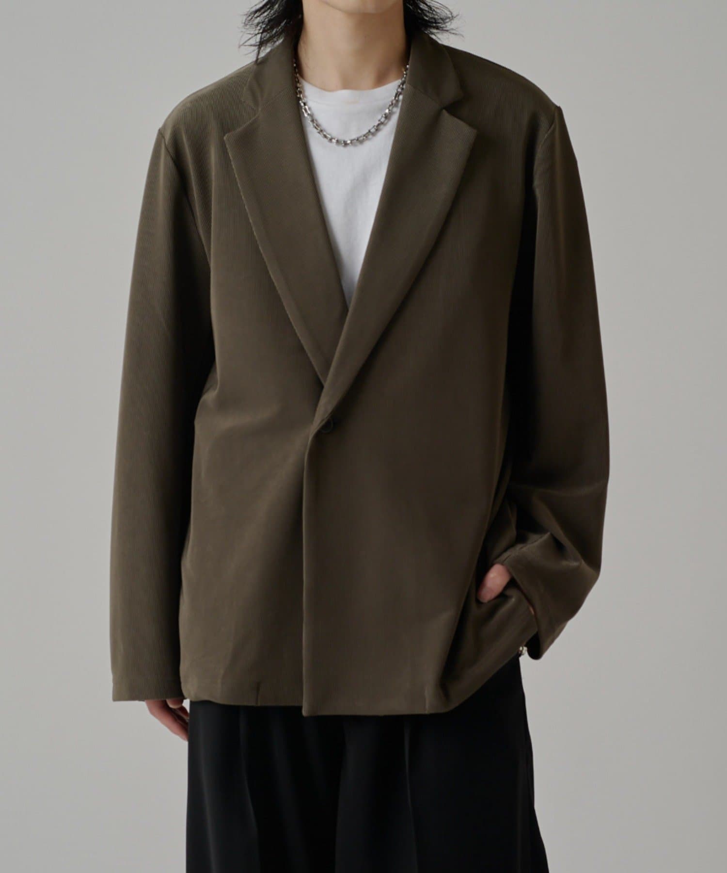 ・凹凸感のある素材感が特徴的な、やや緩めのサイジングのジャケット。