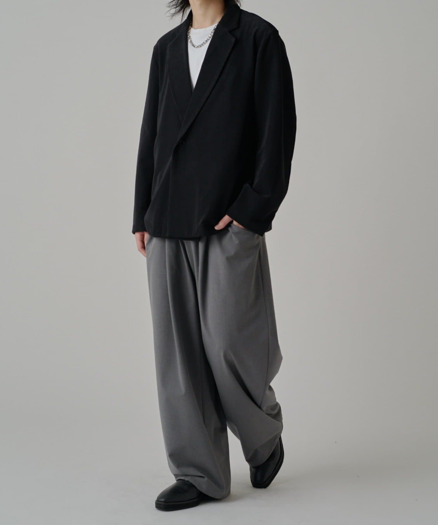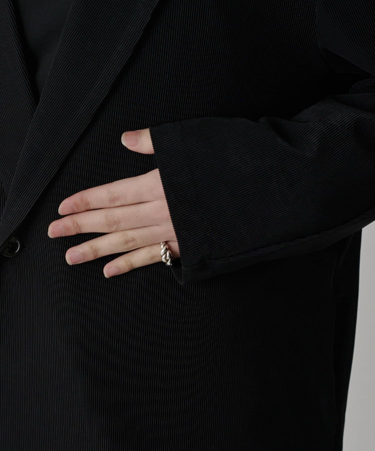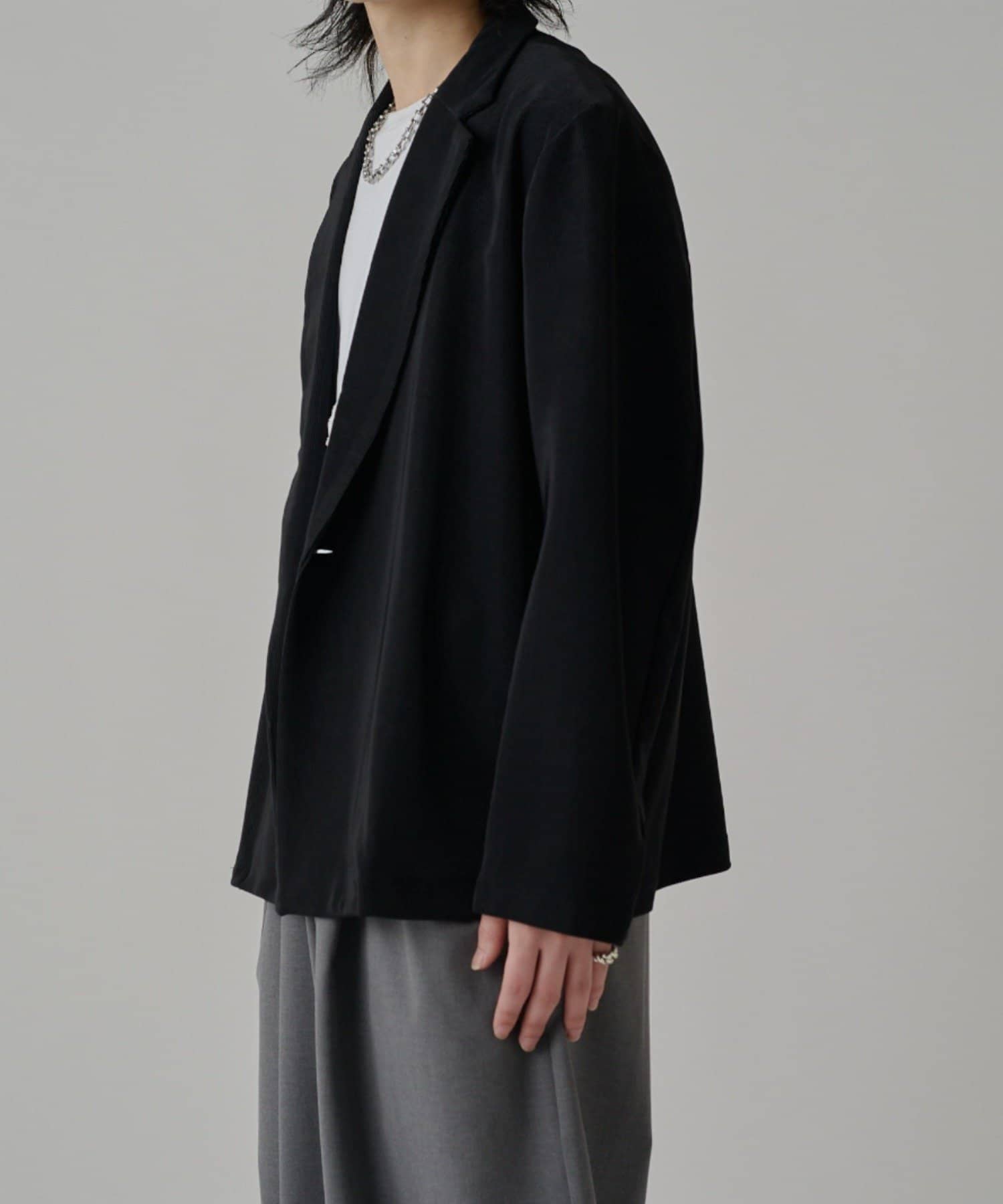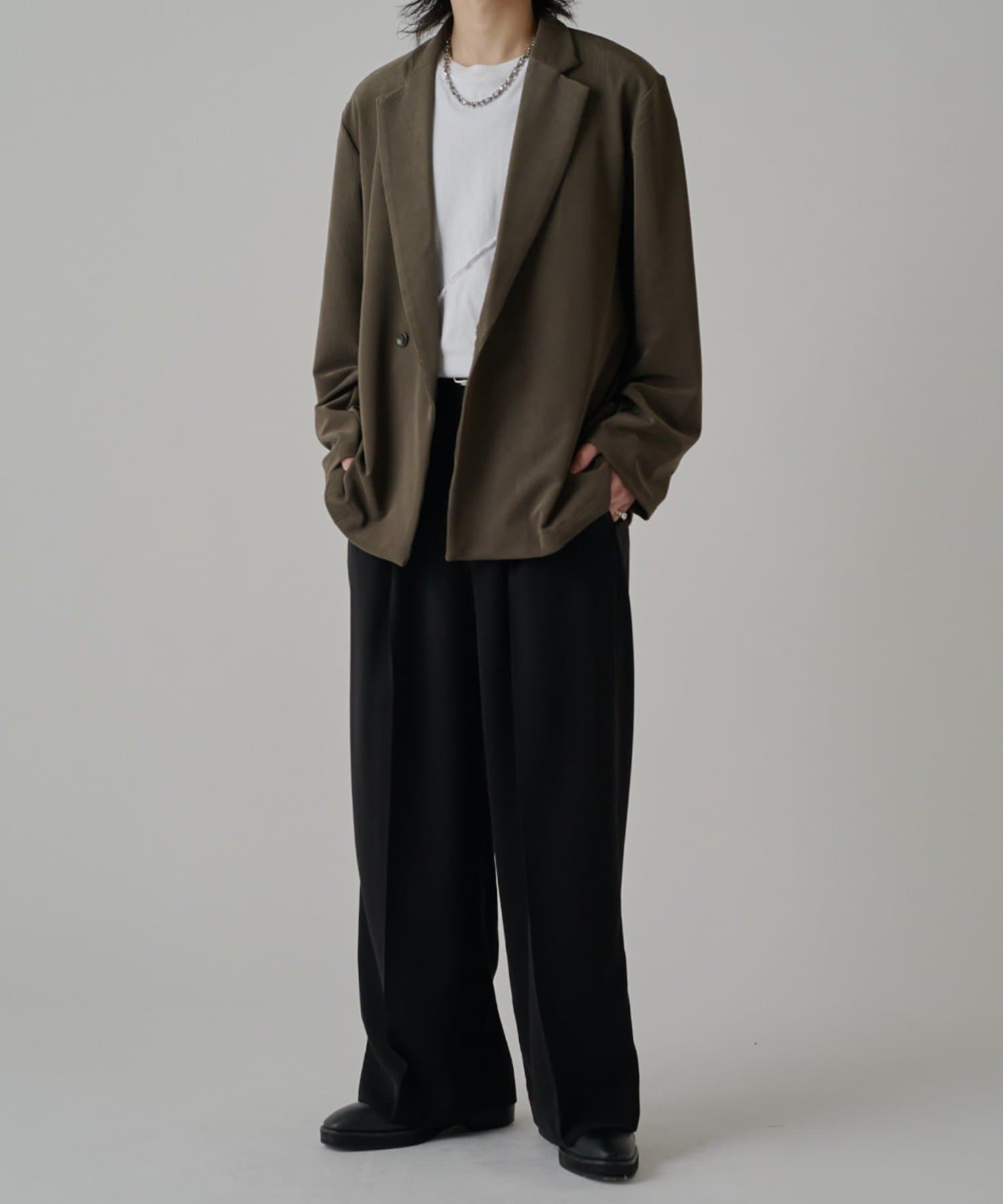 ・凹凸感のある素材感が特徴的な、やや緩めのサイジングのジャケット。