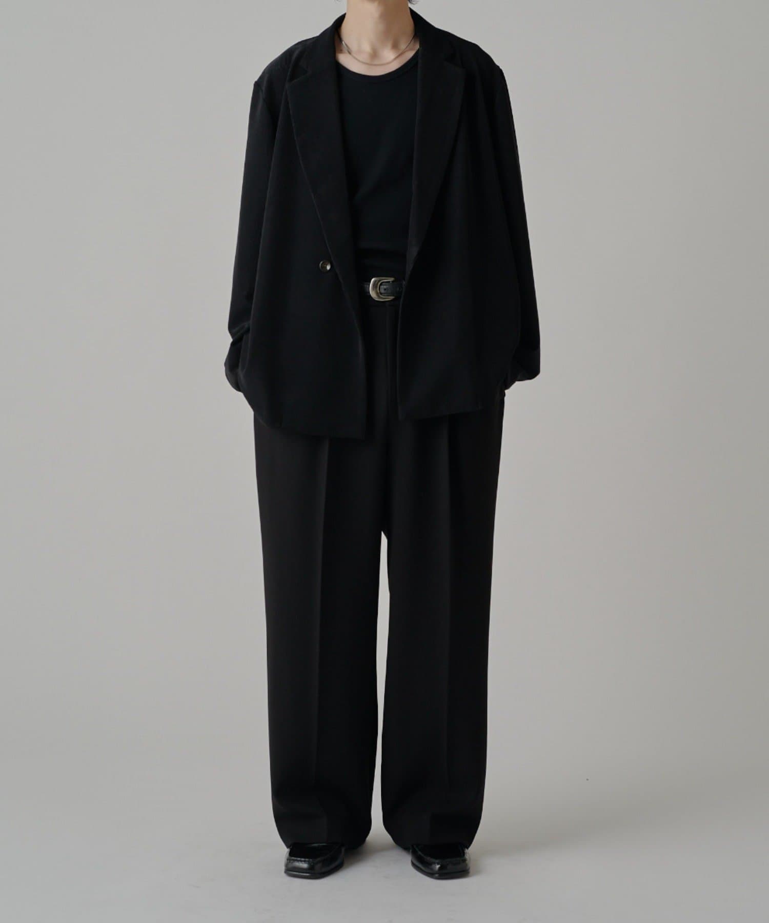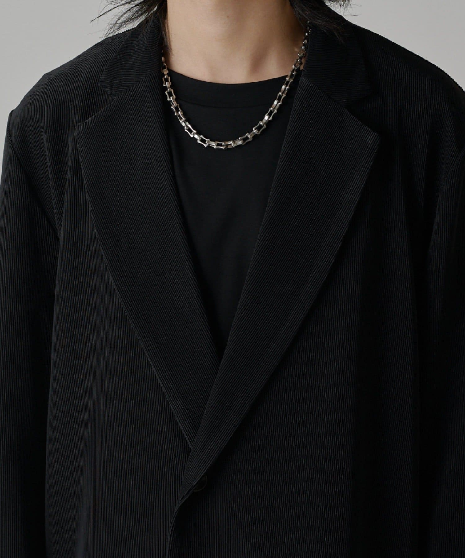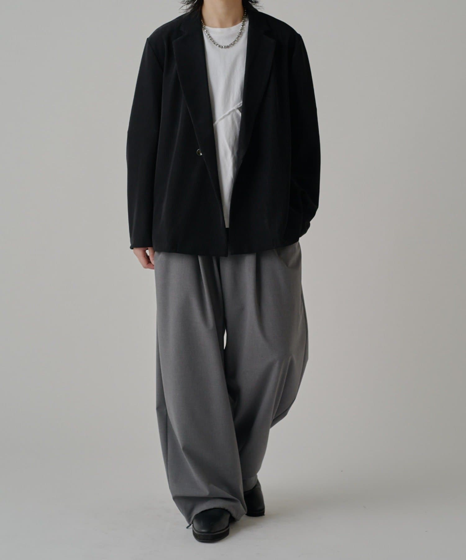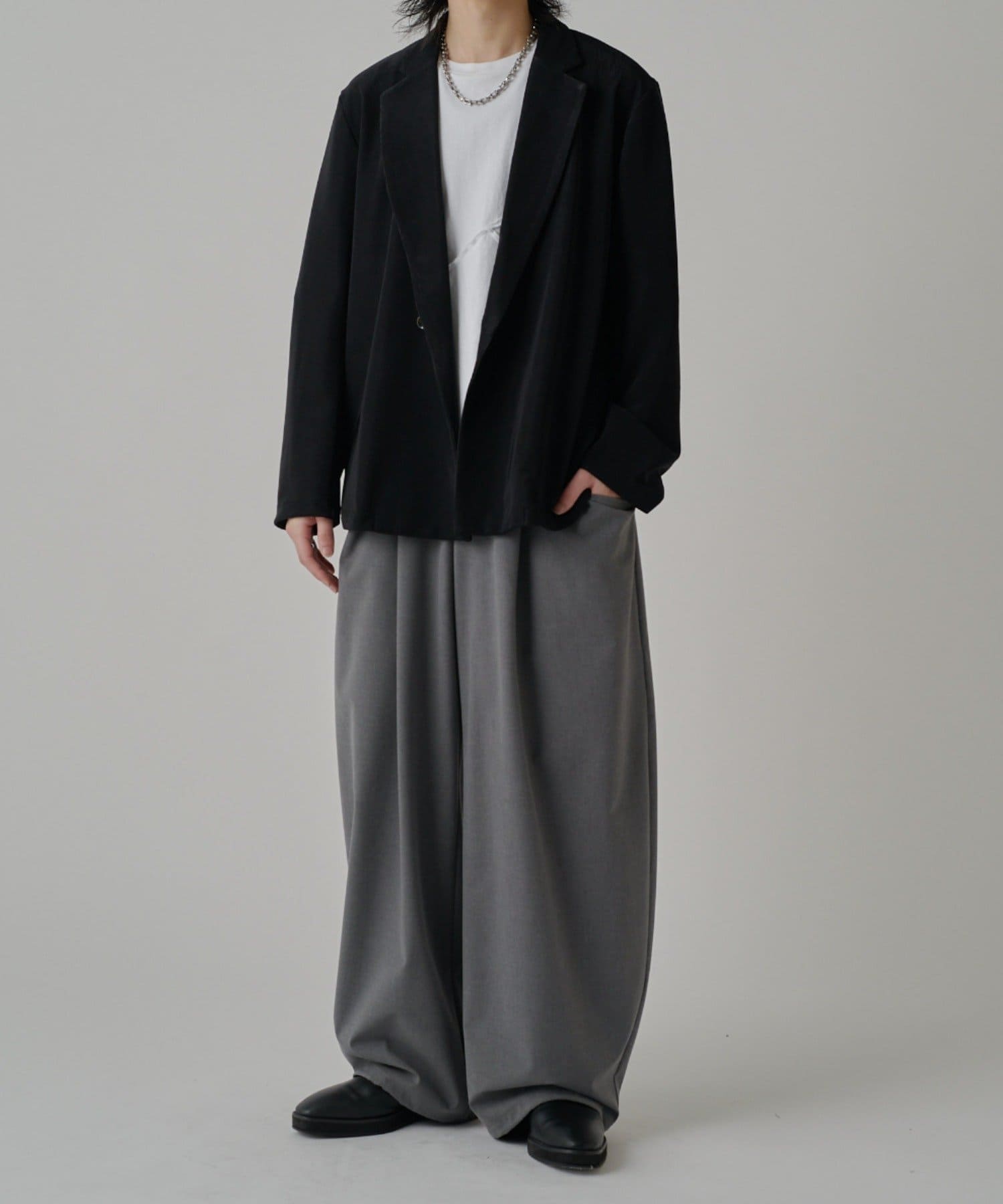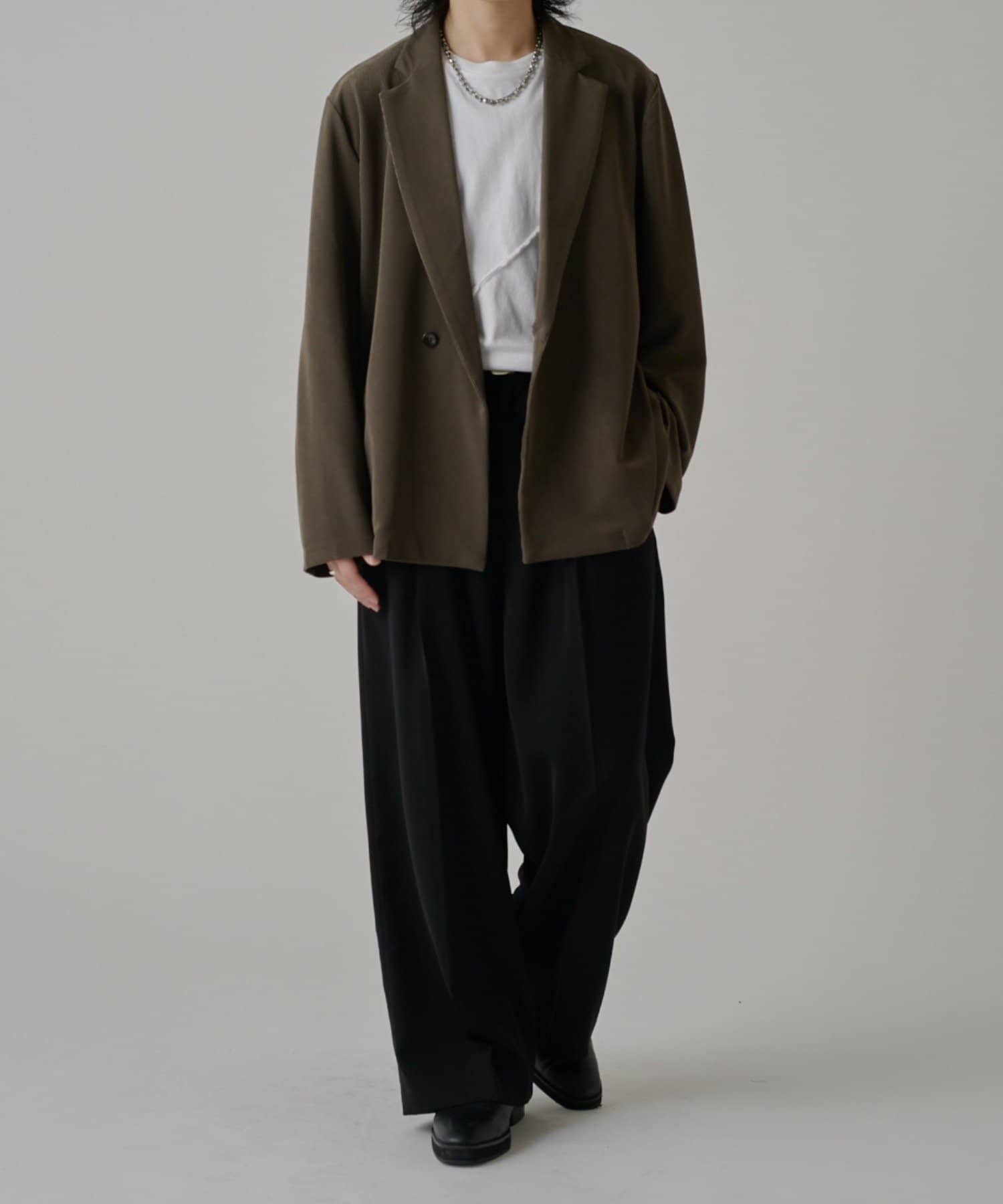 ・凹凸感のある素材感が特徴的な、やや緩めのサイジングのジャケット。