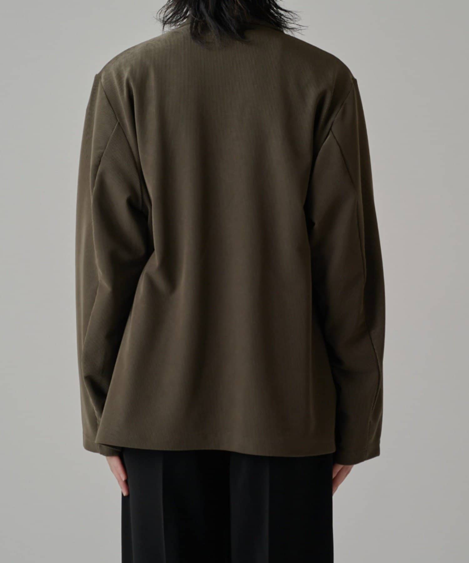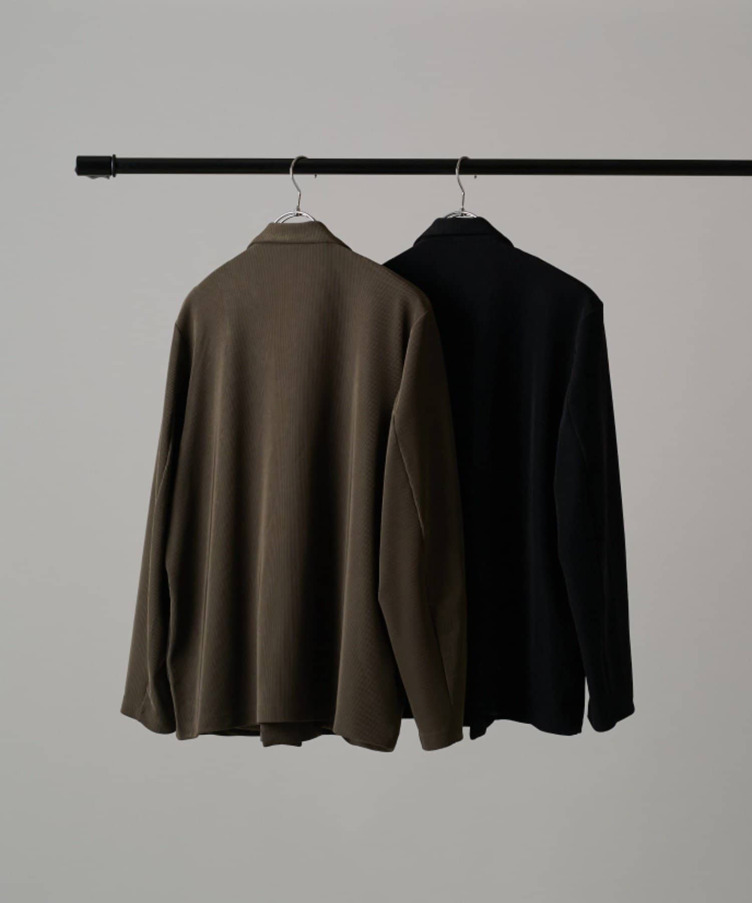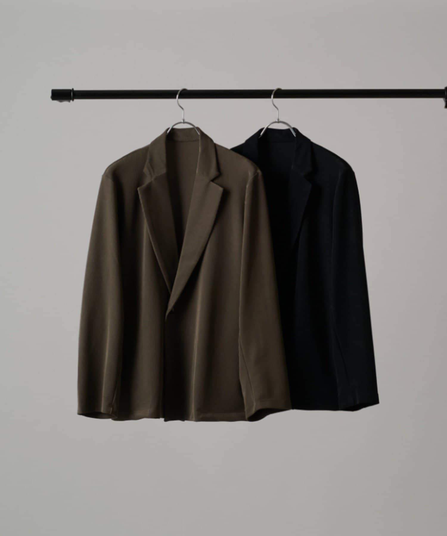 ・きれいめな印象を与えてくれる素材感のジャケットですが、伸縮性のある生地なので、ラフにストレスフリーで着ていただけます。