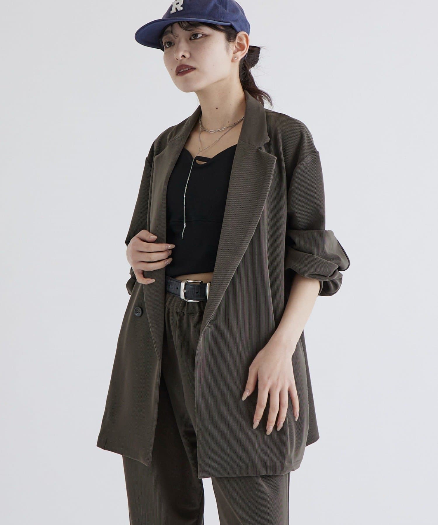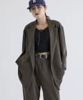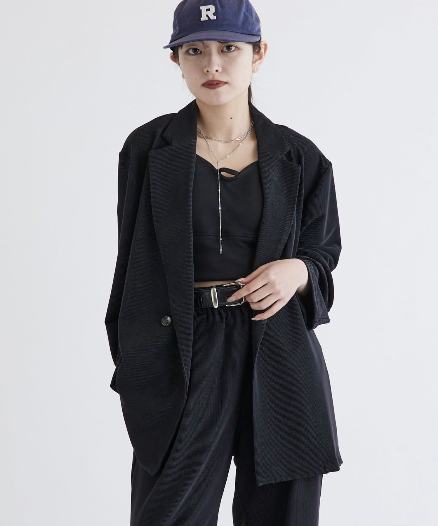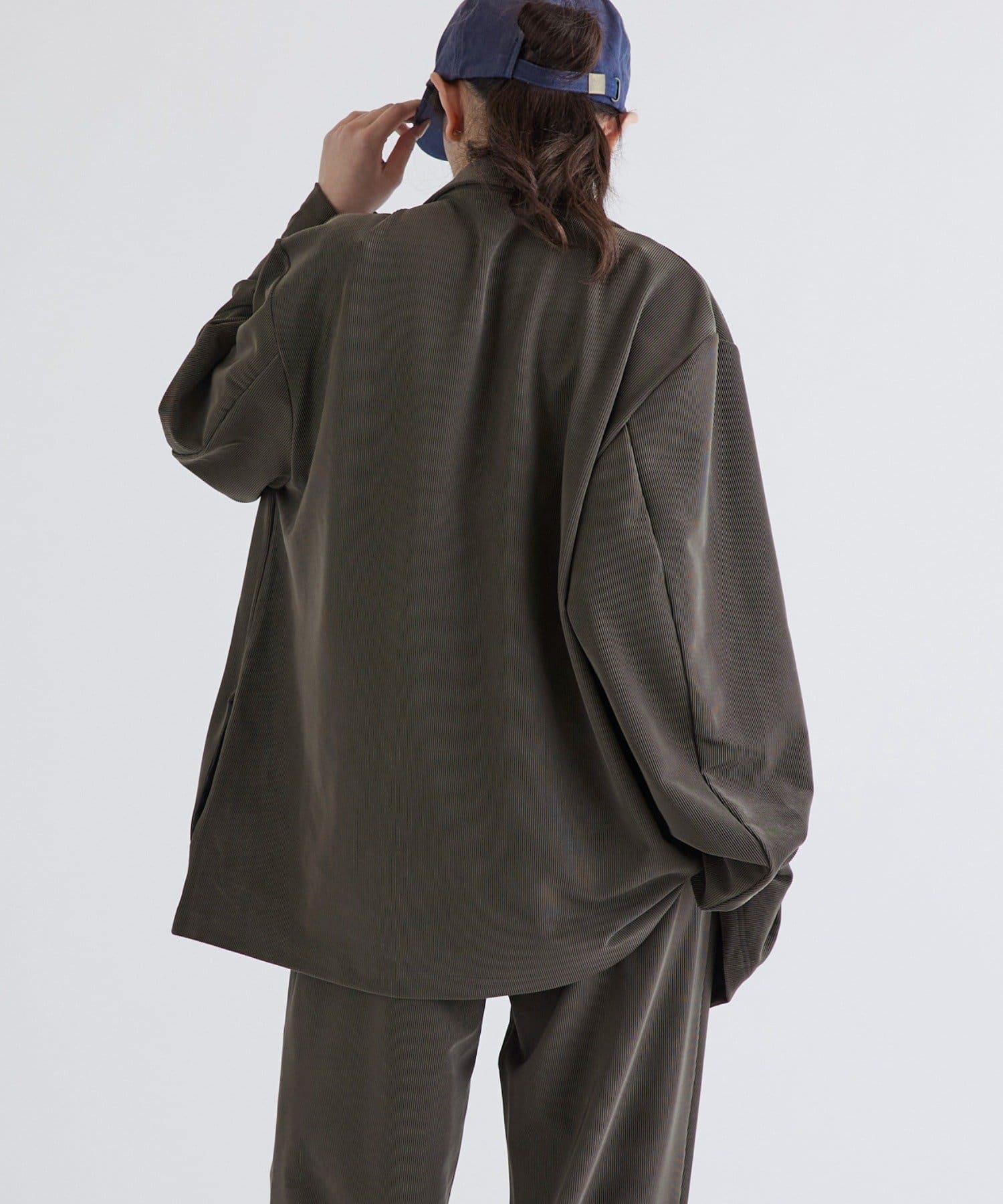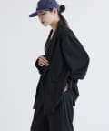・凹凸感のある素材感が特徴的な、やや緩めのサイジングのジャケット。