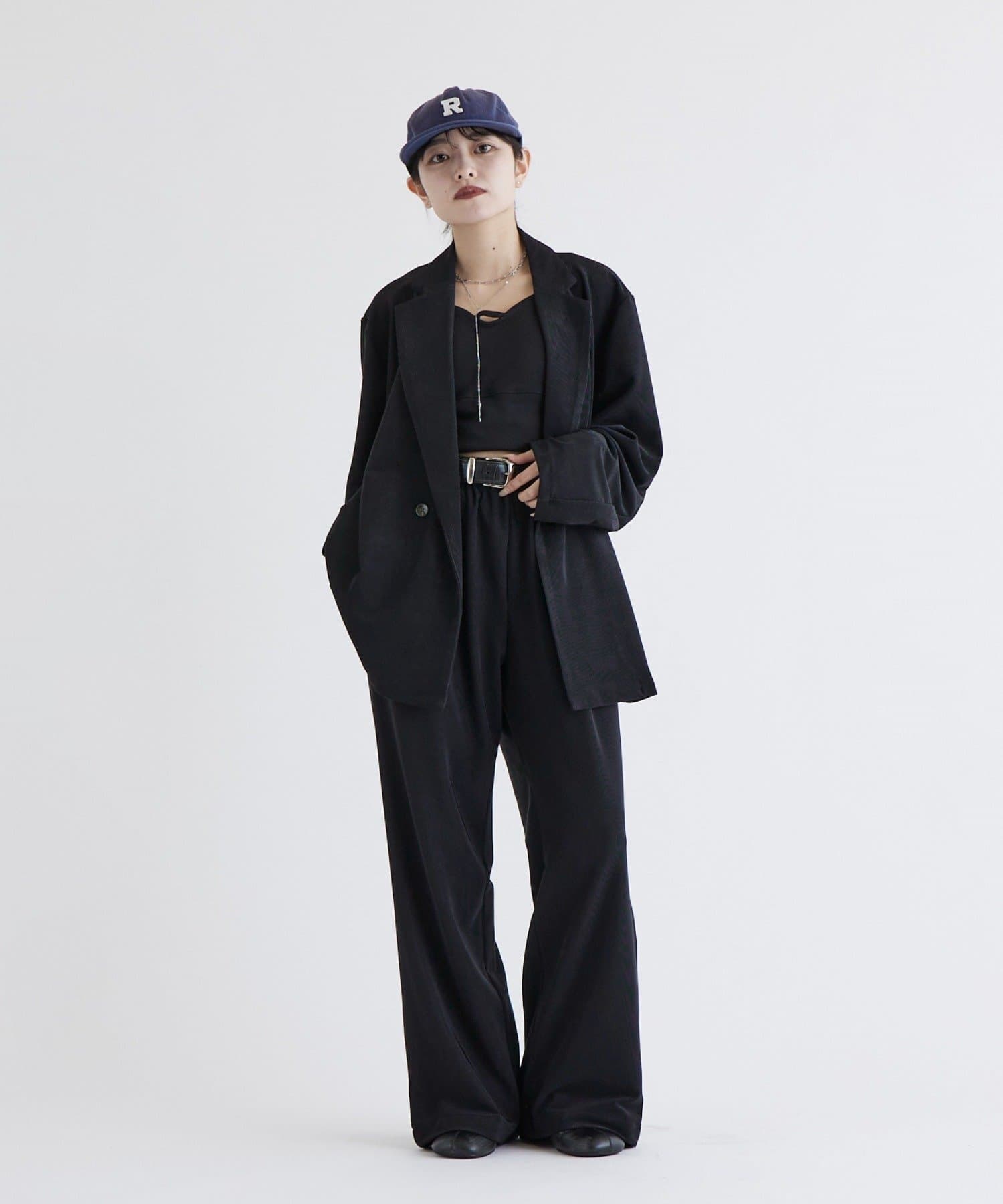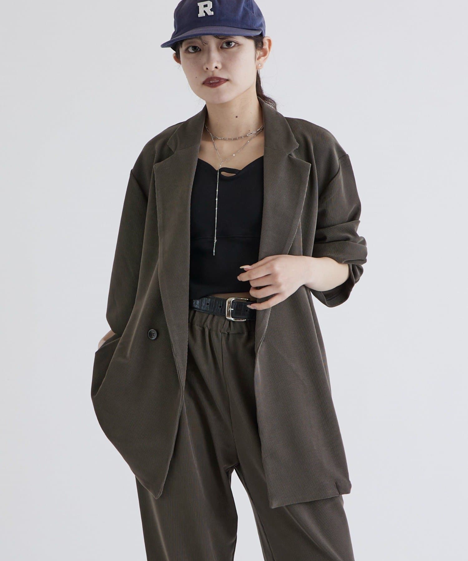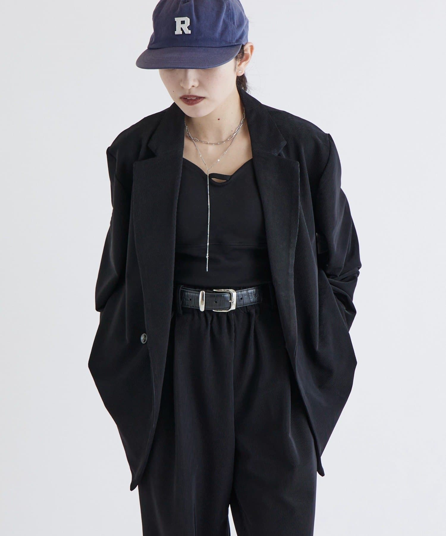 ・凹凸感のある素材感が特徴的な、やや緩めのサイジングのジャケット。