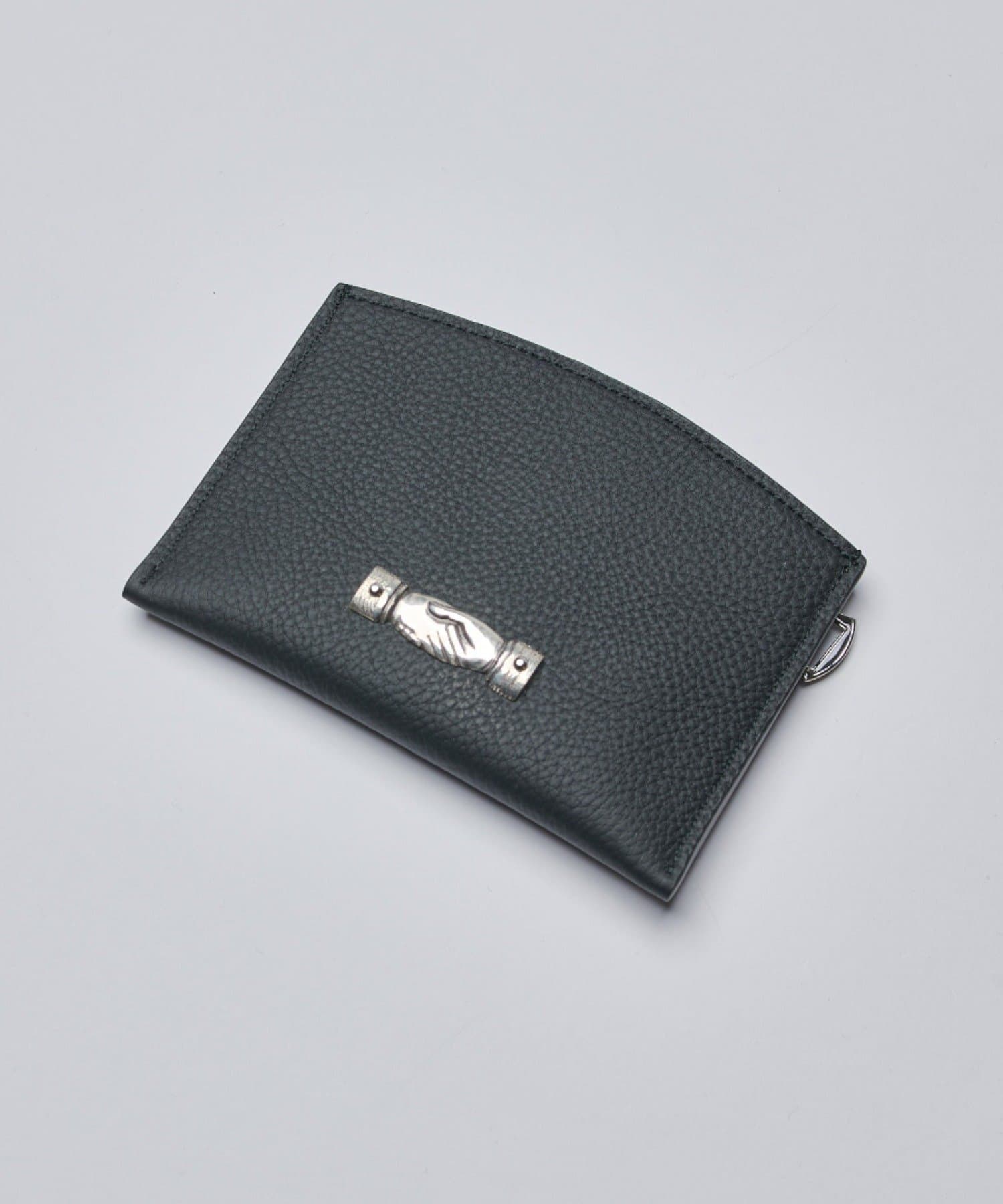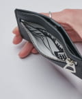 外側にはカードサイズのファスナーポケットを備え、ICカードケースや小銭入れとして使用可能。