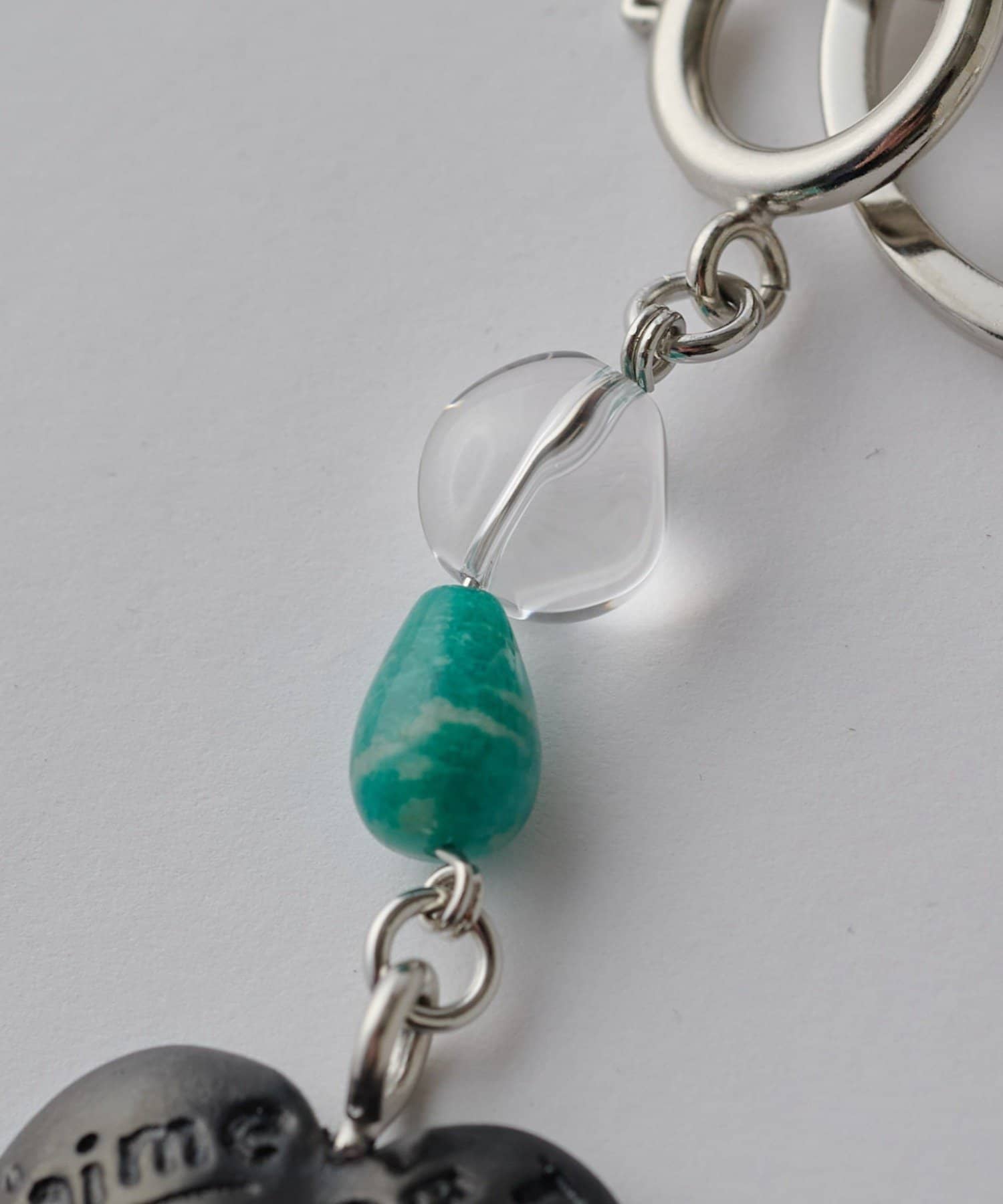 MASASCULPが一つひとつ手作業で仕上げたフェーヴ型チャームに、ITTI定番のパーツや天然石を組み合わせた、上品さと遊び心をあわせ持つ特別なアイテムです。フェーヴとは、フランスで祝祭のお菓子「ガレット・デ・ロワ」の中に忍ばせる小さな陶器の人形のことで、切り分けた際にフェーヴが当たった人には、その年に幸運が訪れるといわれています。こちらのチャームは、可愛らしいハート型モチーフに、天然クォーツ(水晶)とアマゾナイト(希望の石)を組み合わせたデザイン。