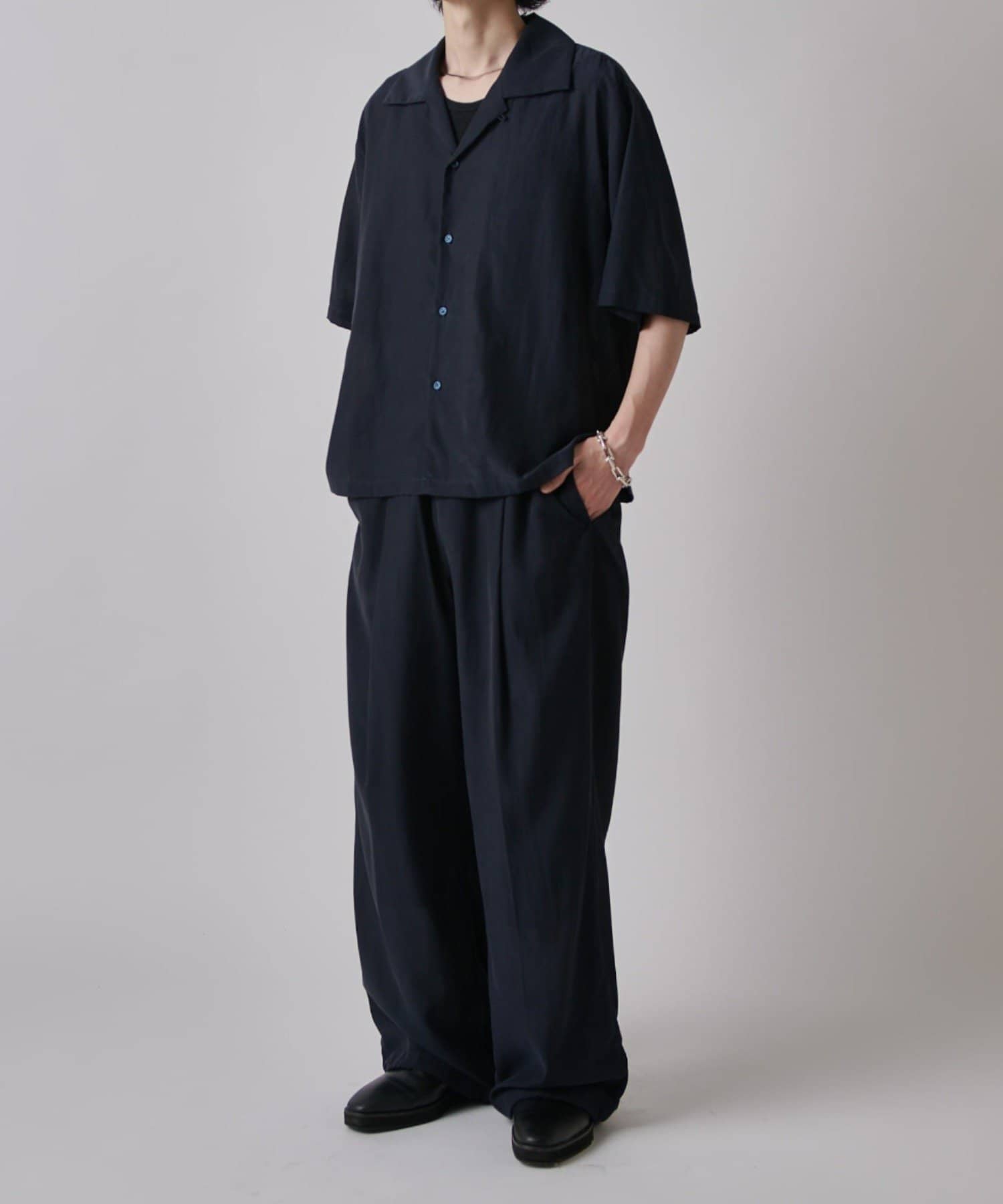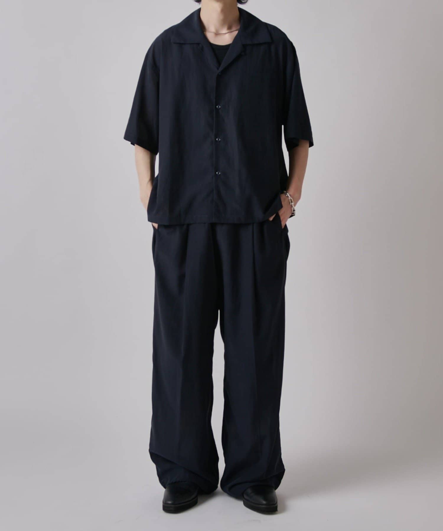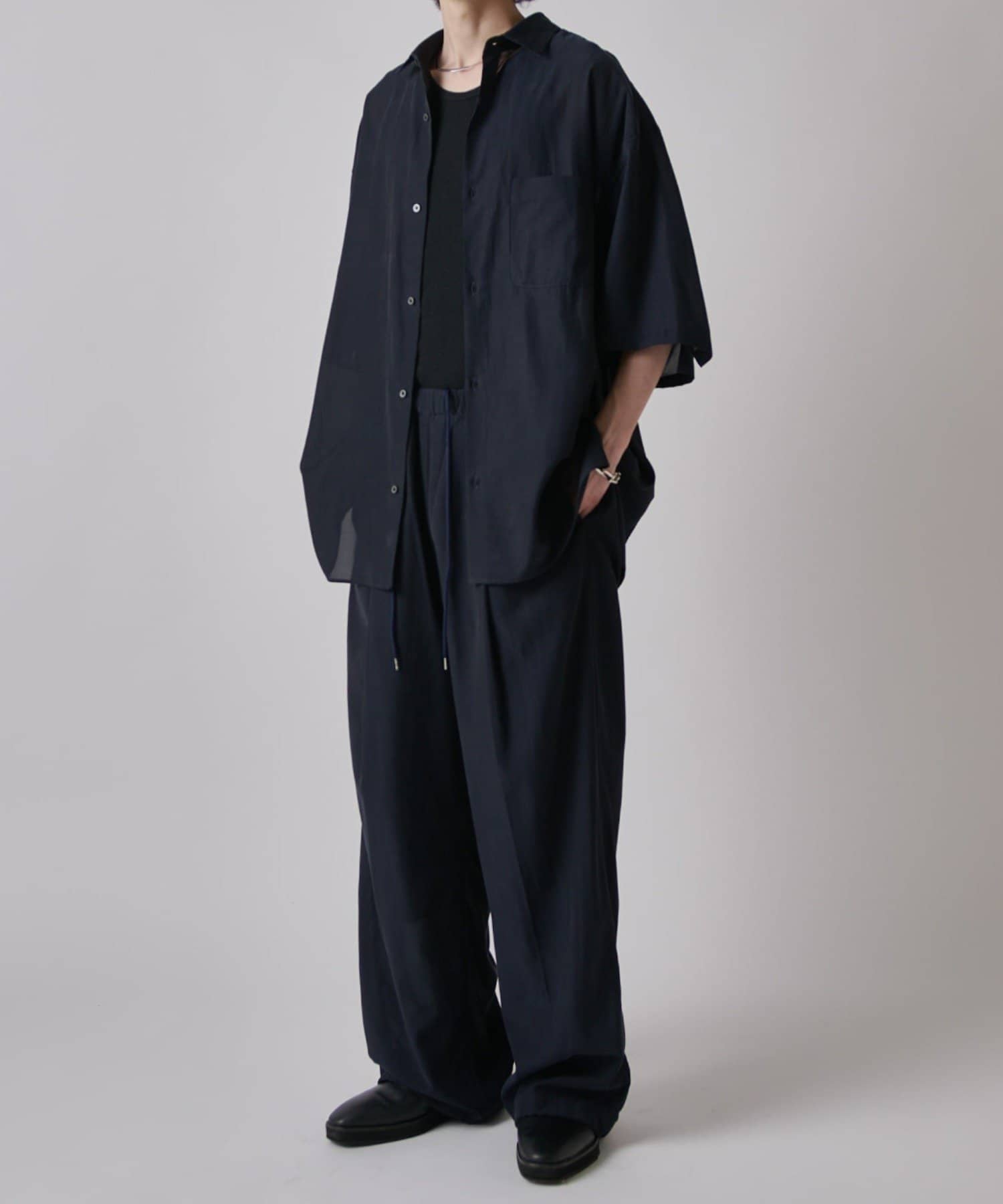 ・また今季は同素材で展開しております、リラックスワイドショートスリーブシャツと組み合わせた夏のレイヤードスタイルを楽しんで頂くのもオススメです。