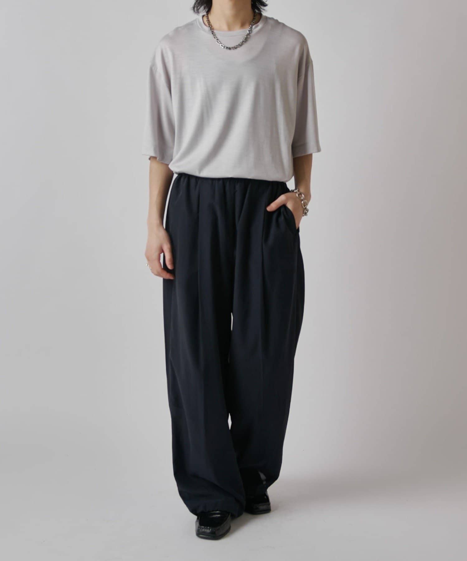 ・リラックスして穿いて頂けるイージーパンツなので、Tシャツやオープンカラーシャツに組み合わせたラフなキレイめスタイルがオススメです。