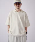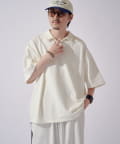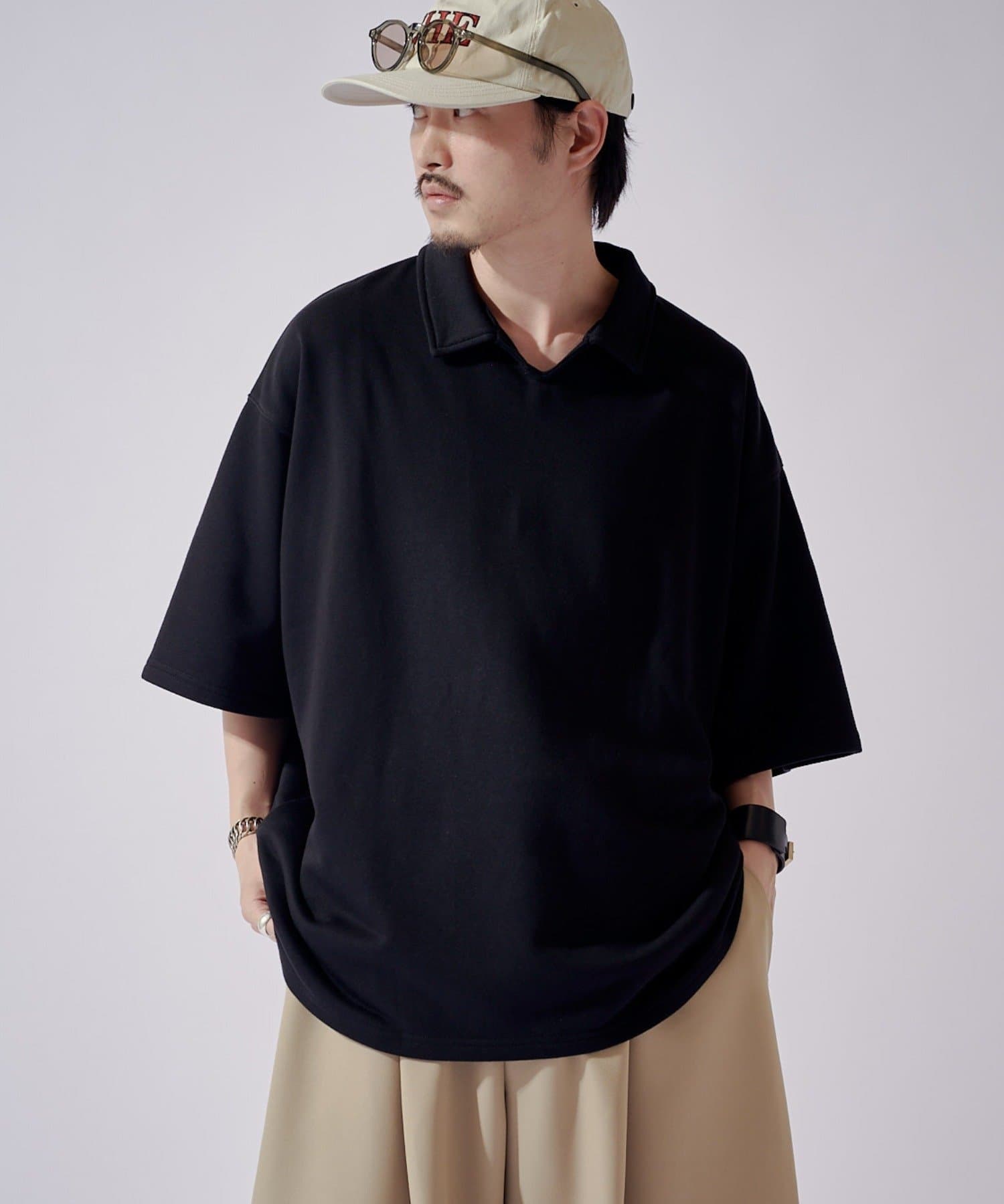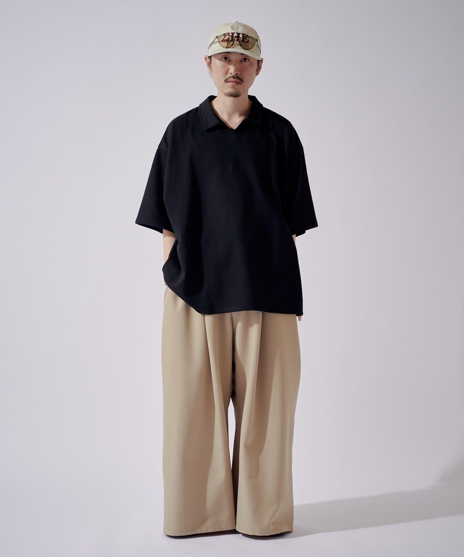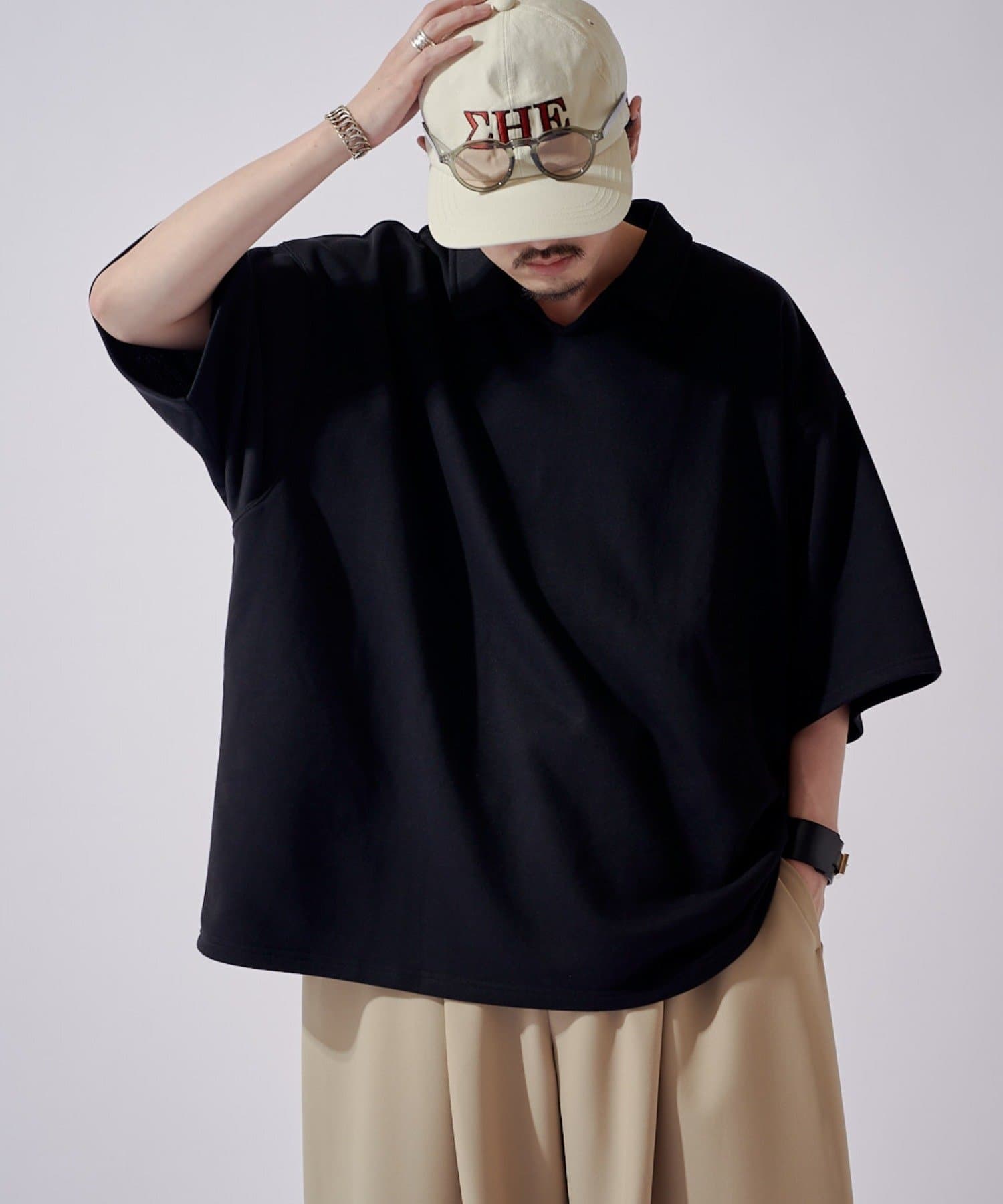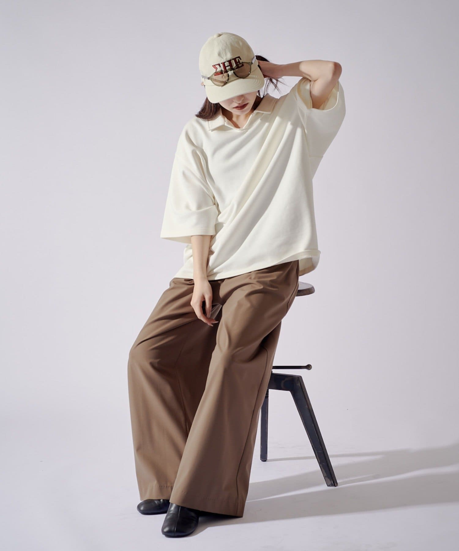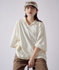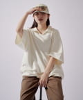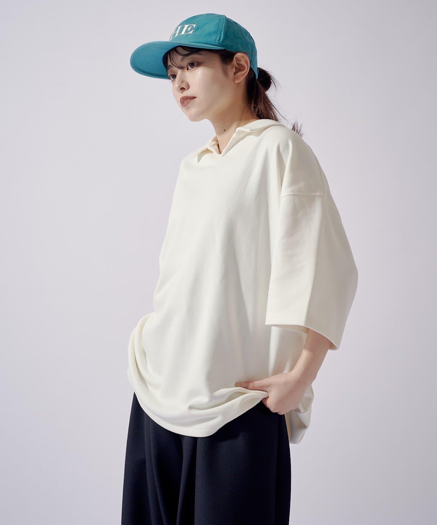 少し涼しげな印象を感じられるようにスキッパーデザインに。通常のスキッパーデザインより浅めのVネックにしてるところがこだわりです。より使いやすいかと。