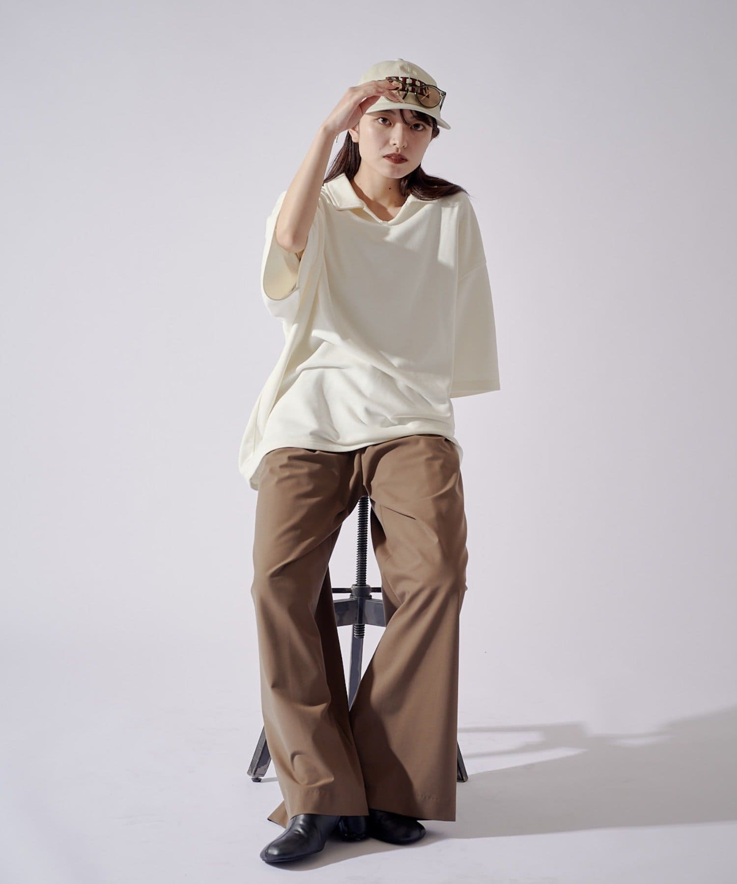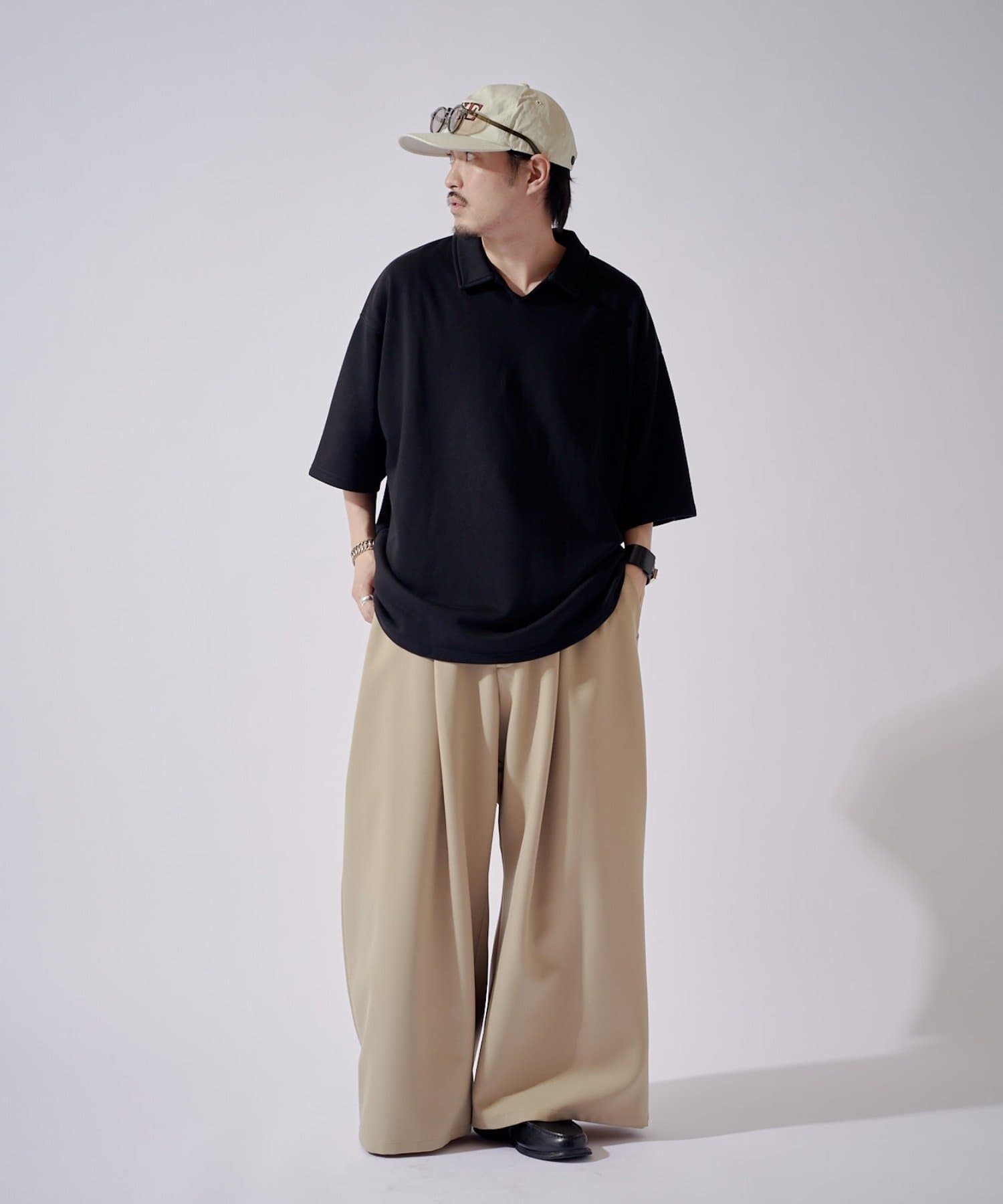スタイリングは個人的な好みになりますが、ワイドパンツなどで合わせていただくのがオススメです。そして足元に革靴。ローファーが個人的にオススメですね。