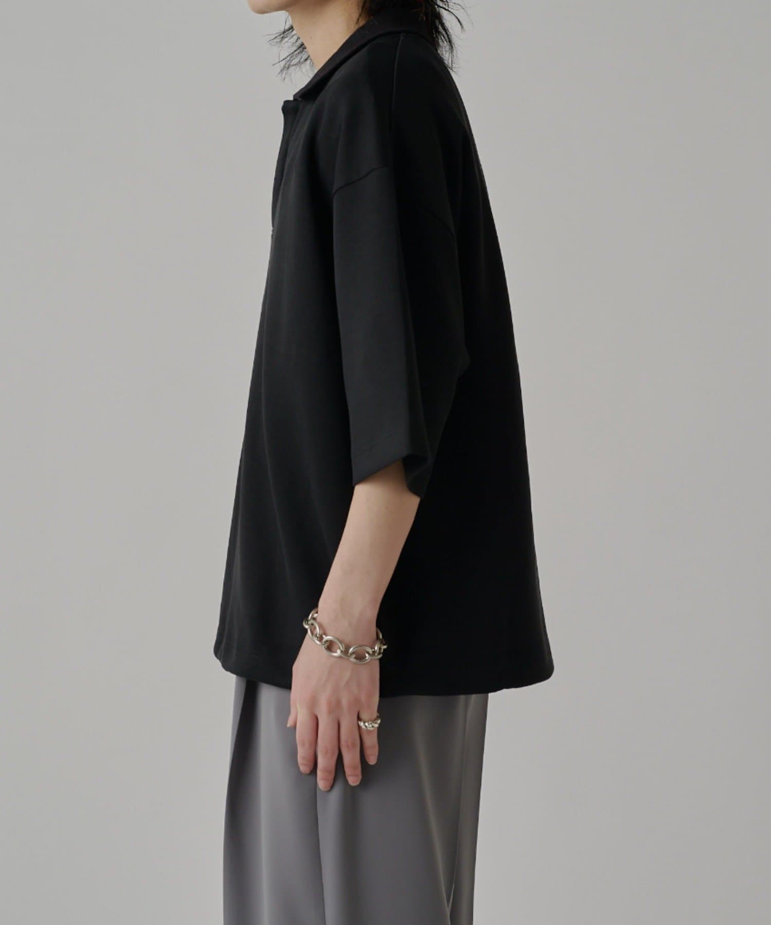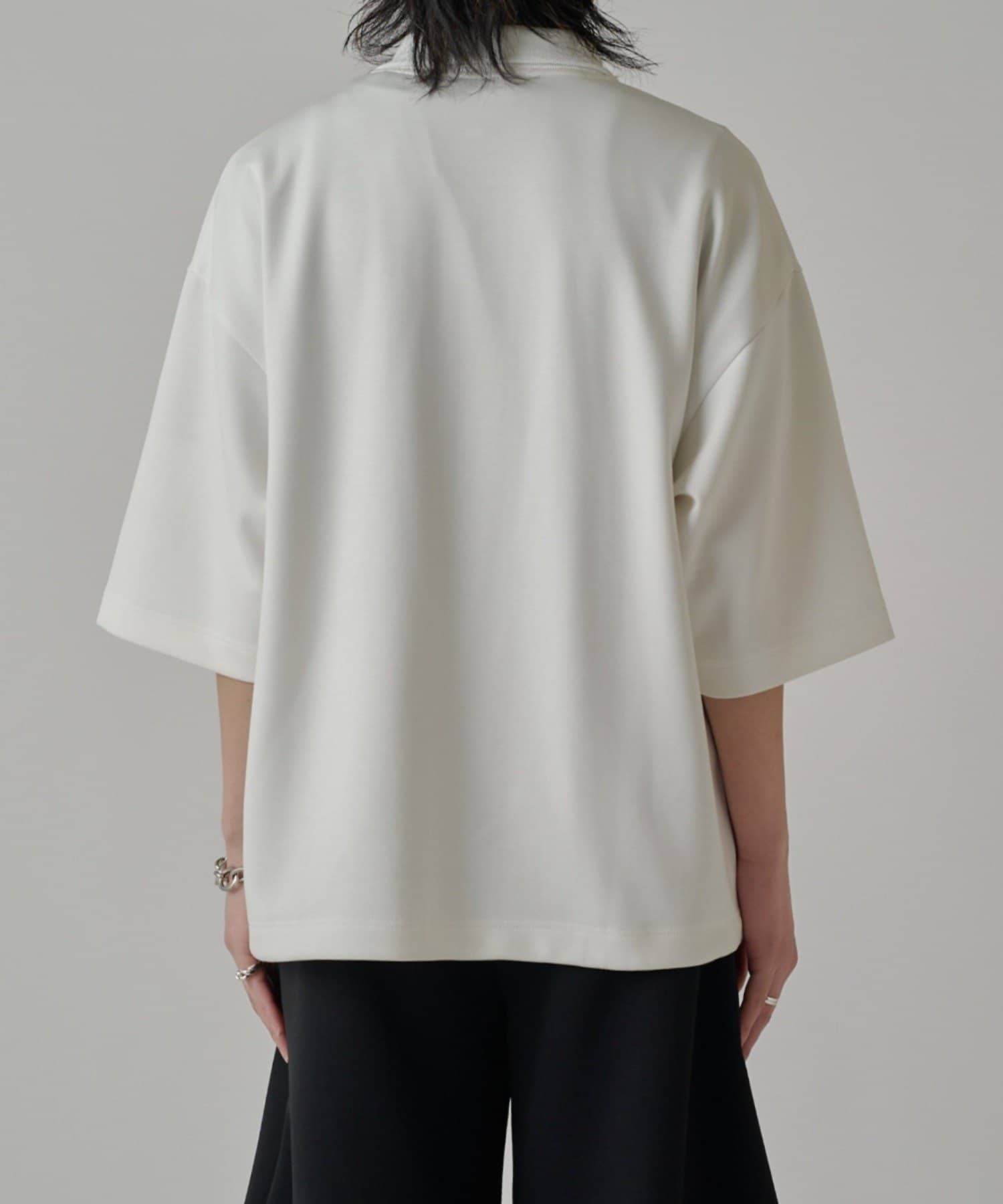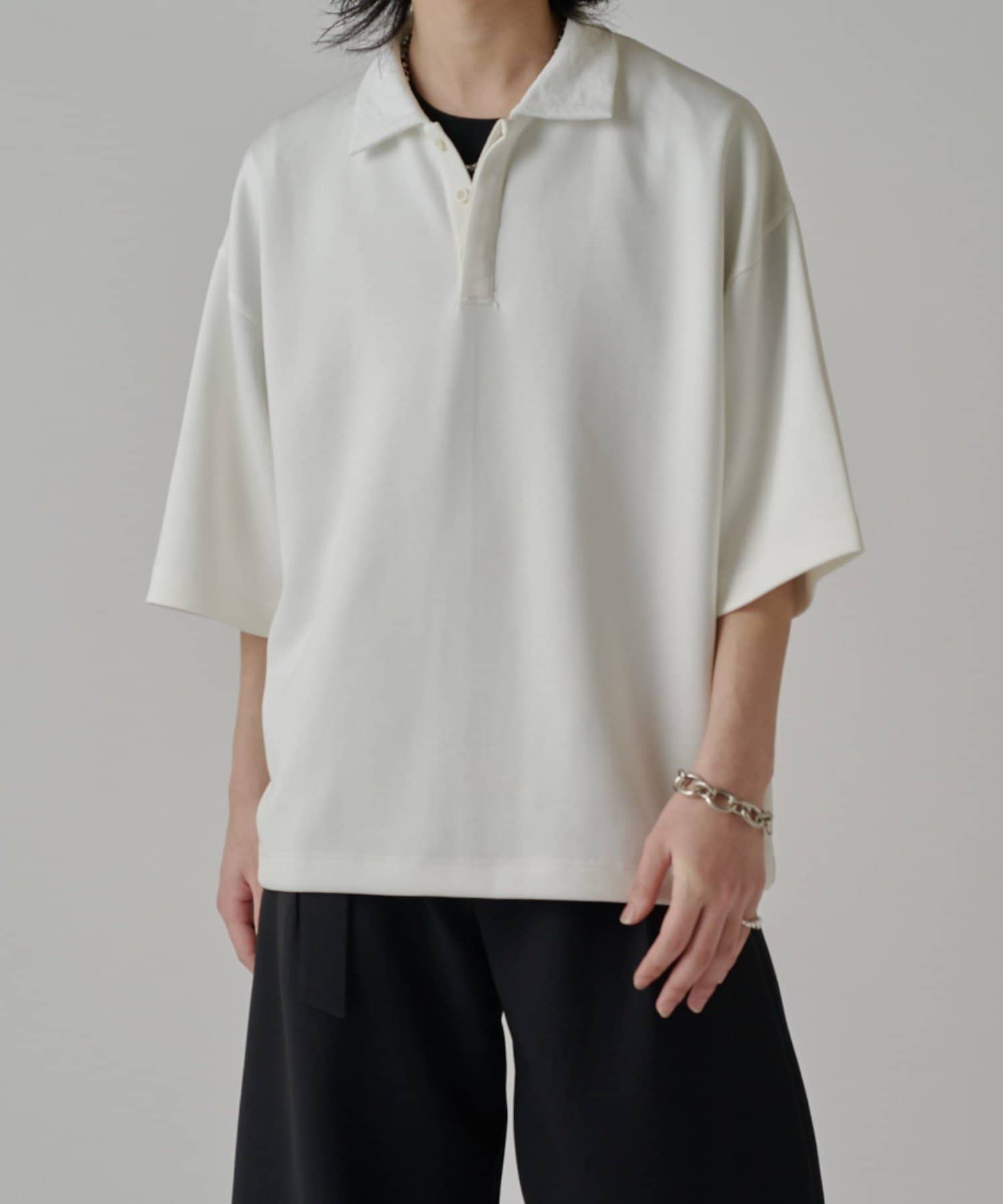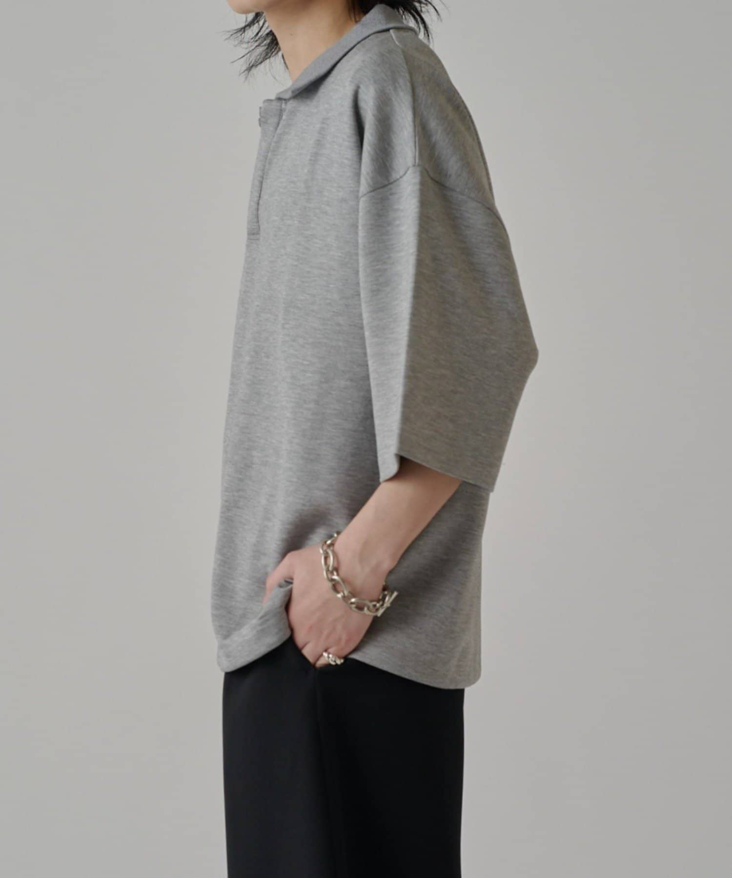 ・上品な表情のポンチ生地を使用したオーバーポロ。