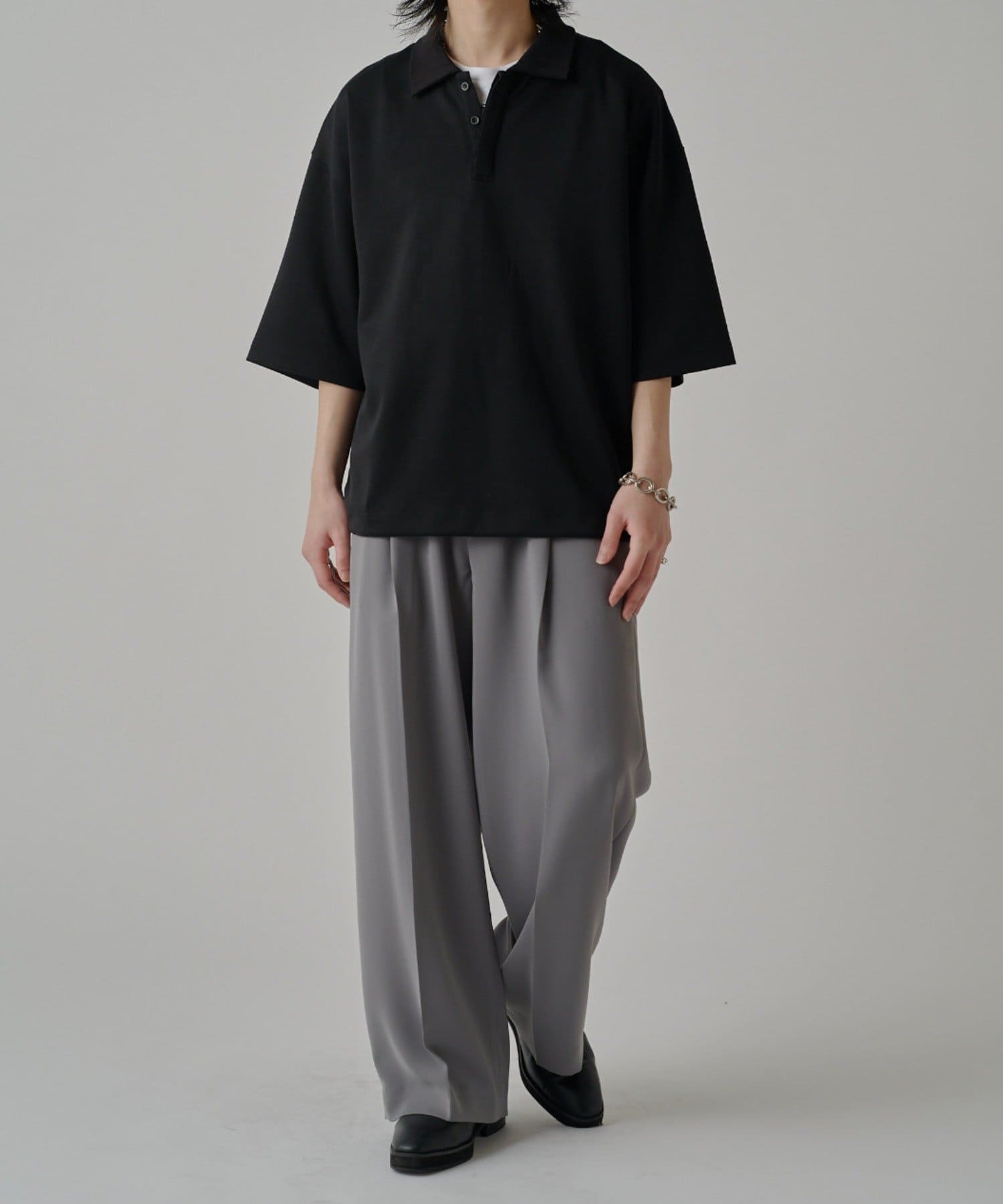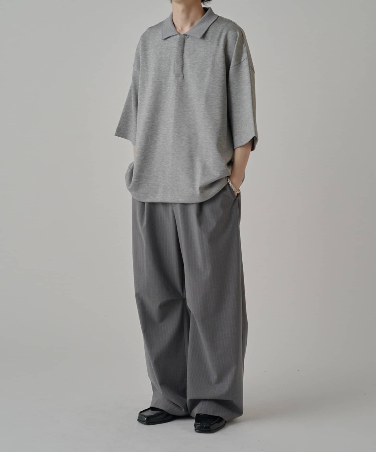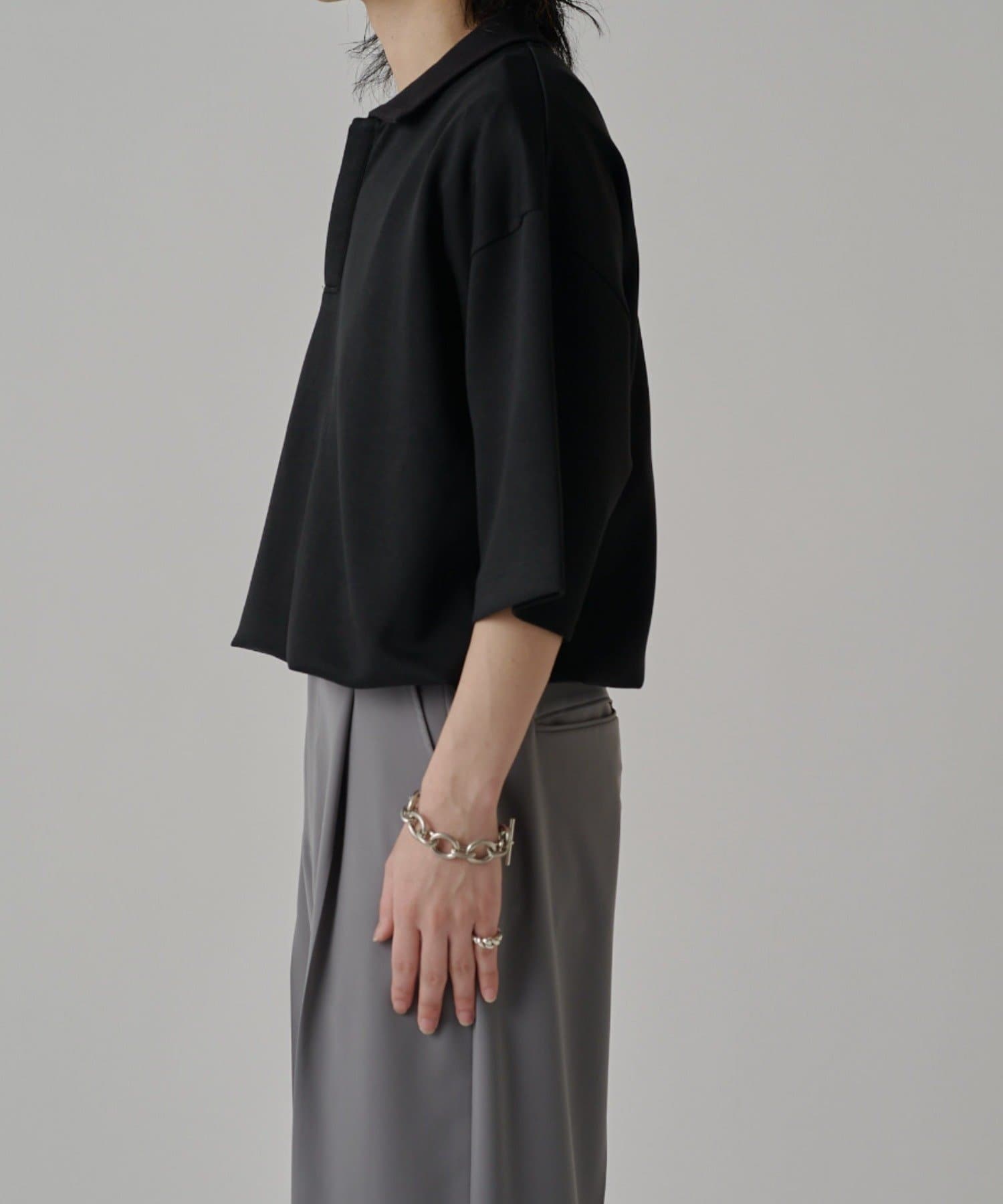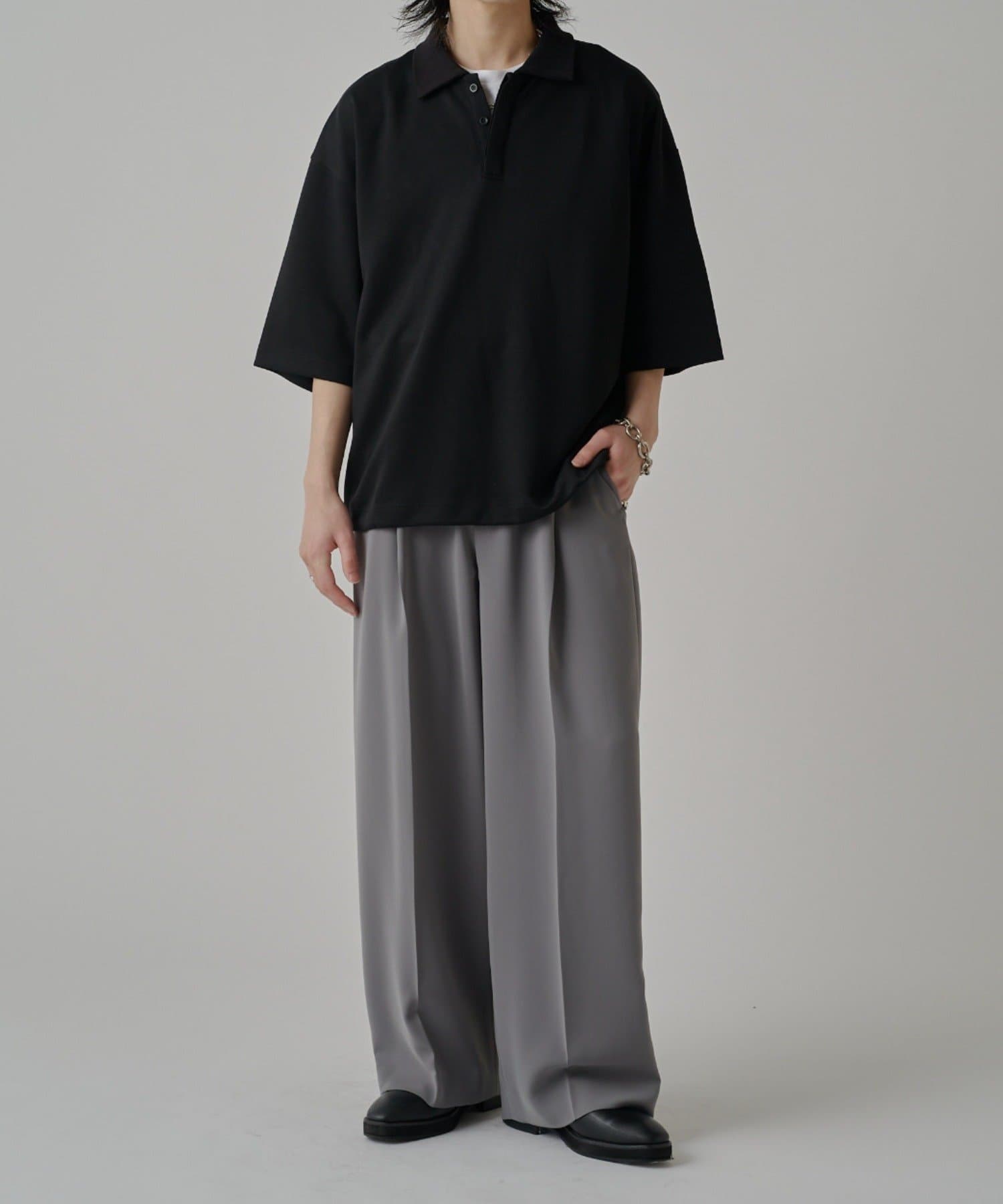 ・上品な表情のポンチ生地を使用したオーバーポロ。