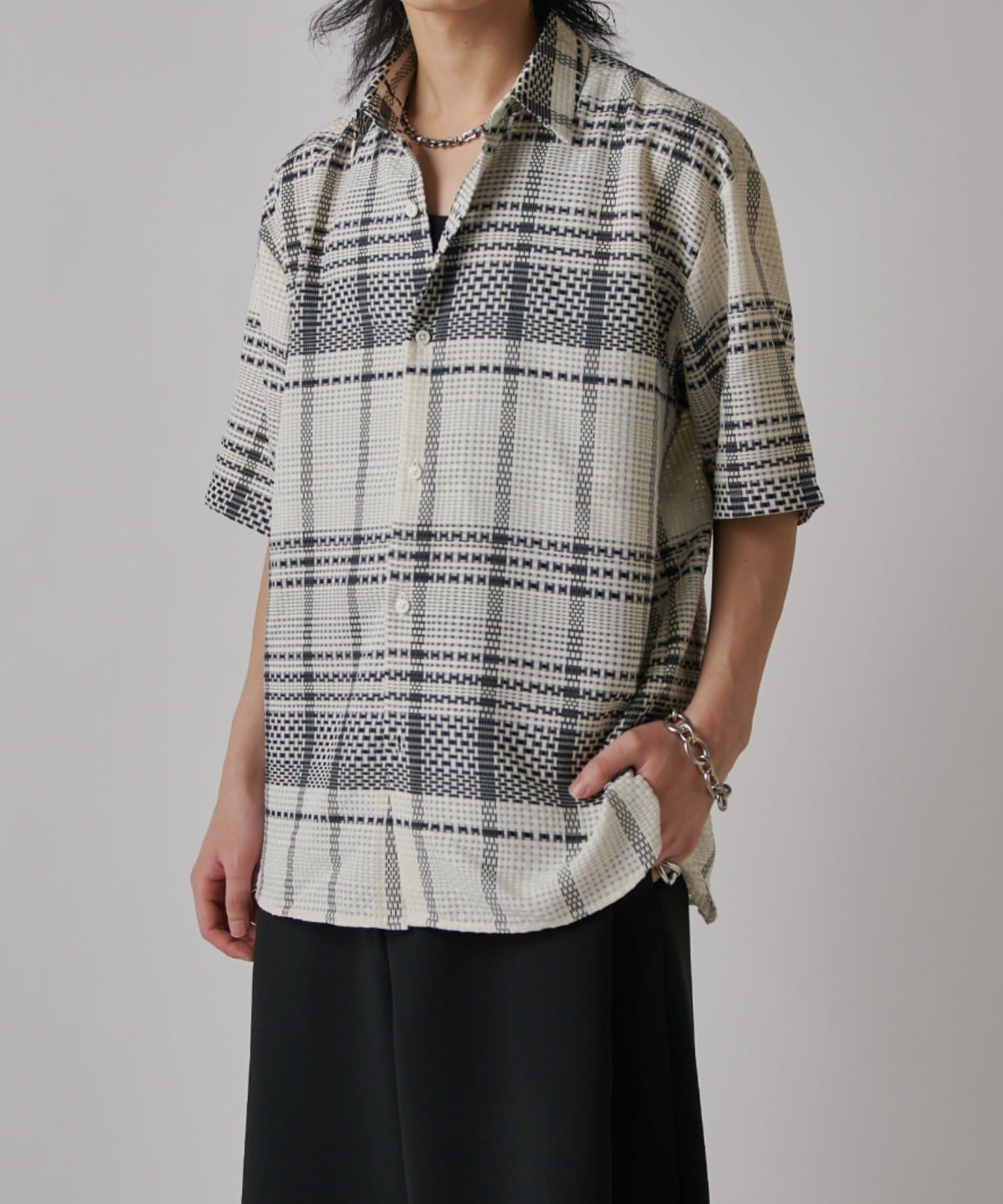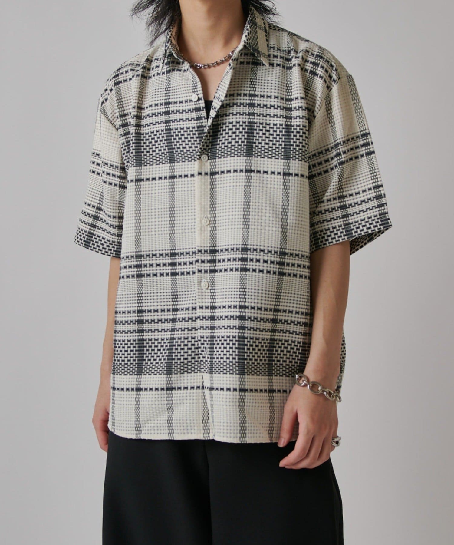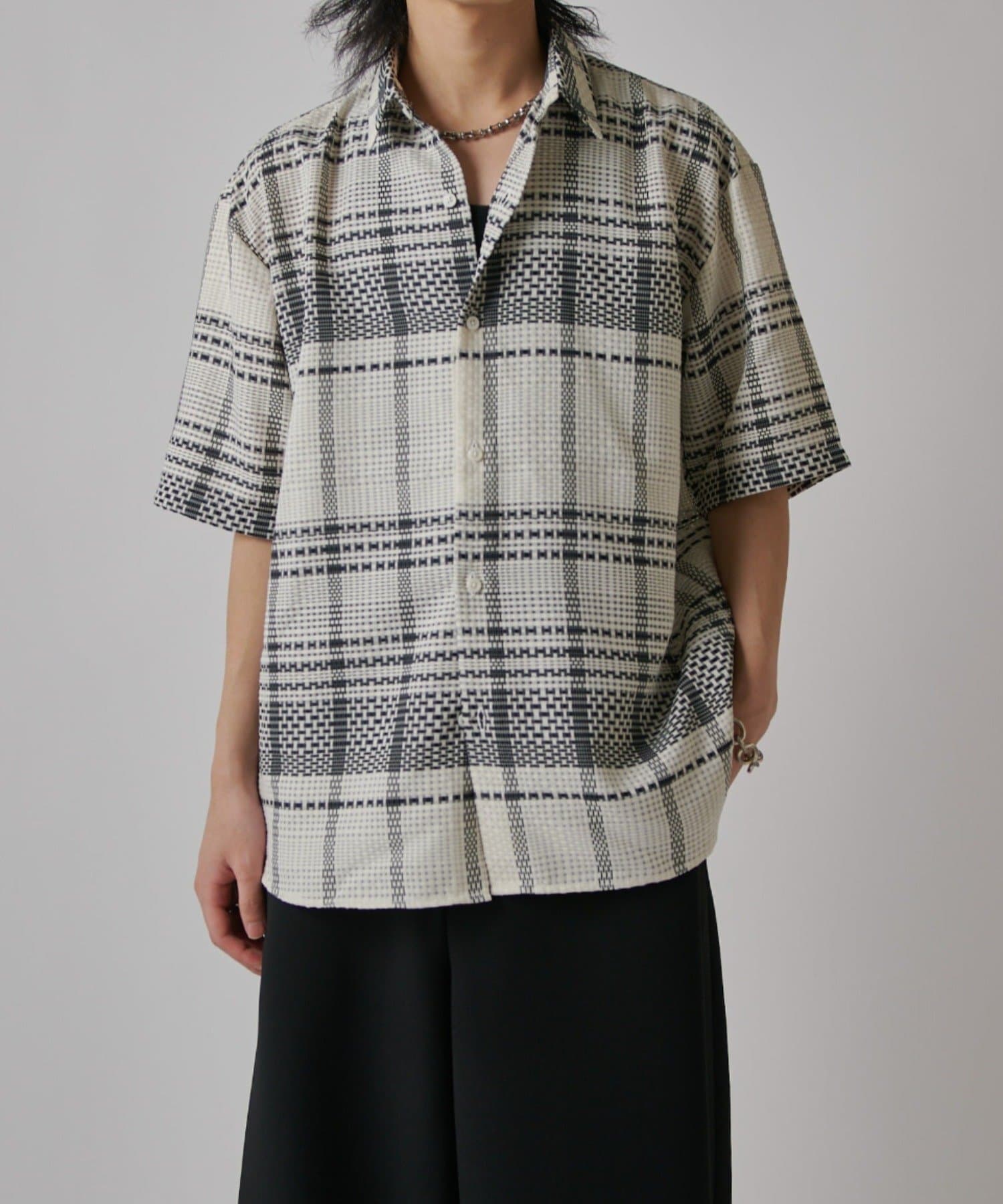 ・存在感のあるブロックチェック柄を採用した半袖シャツ。