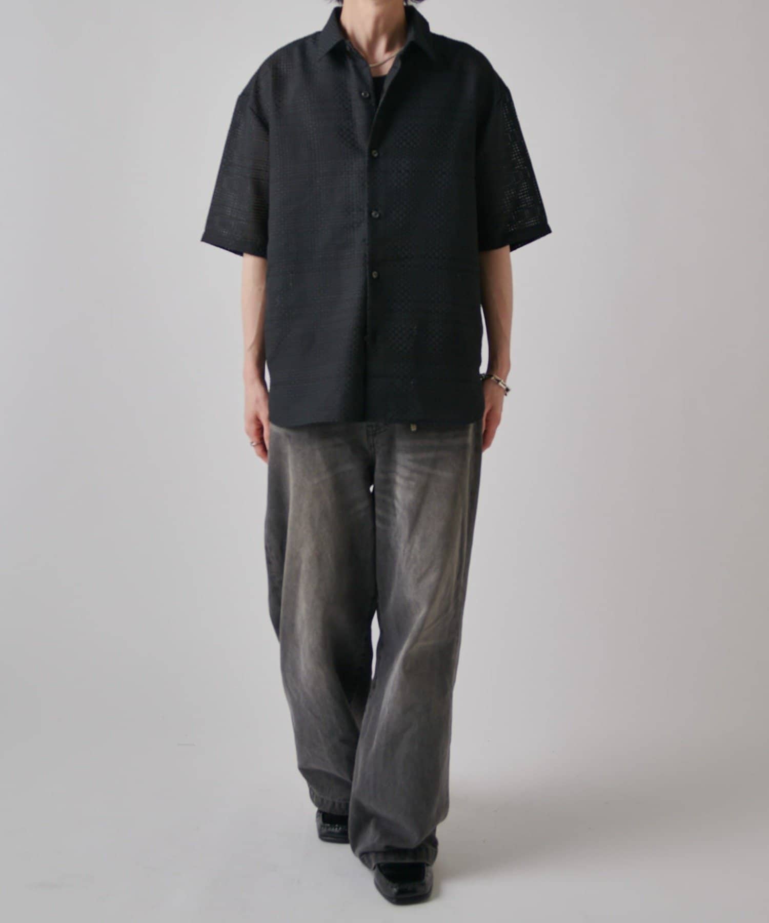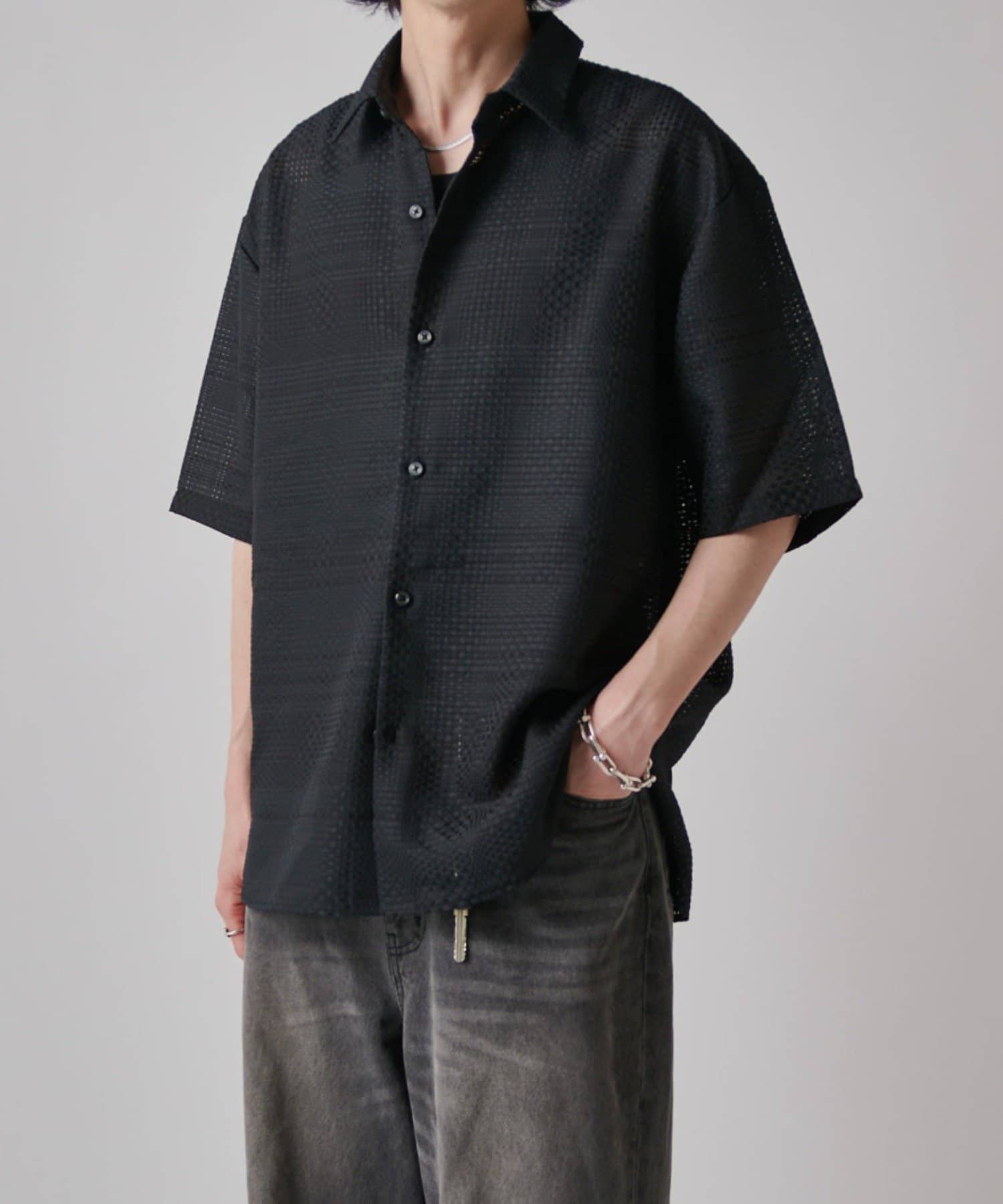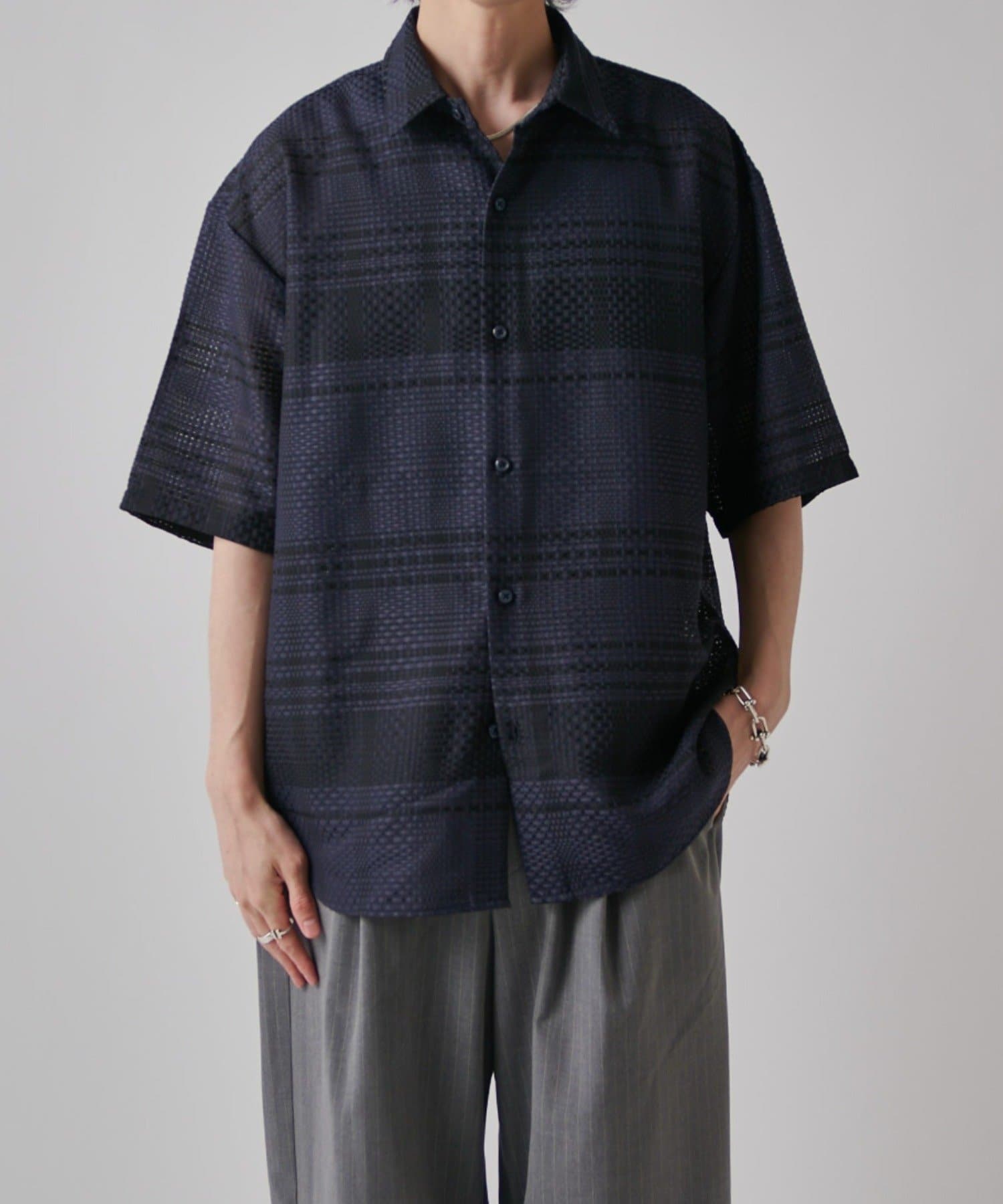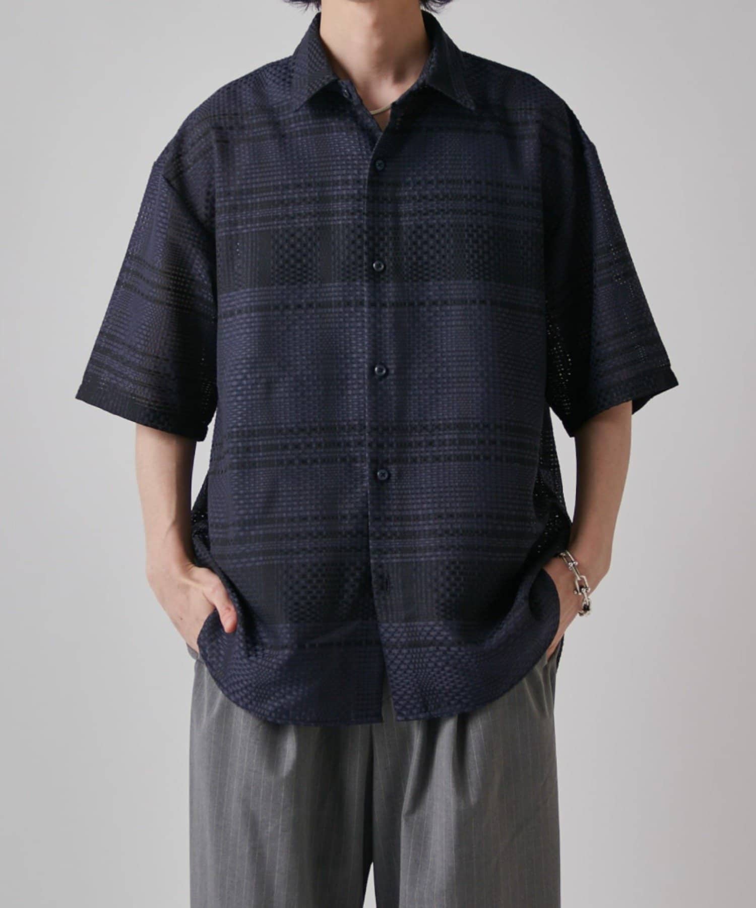 ・存在感のあるブロックチェック柄を採用した半袖シャツ。