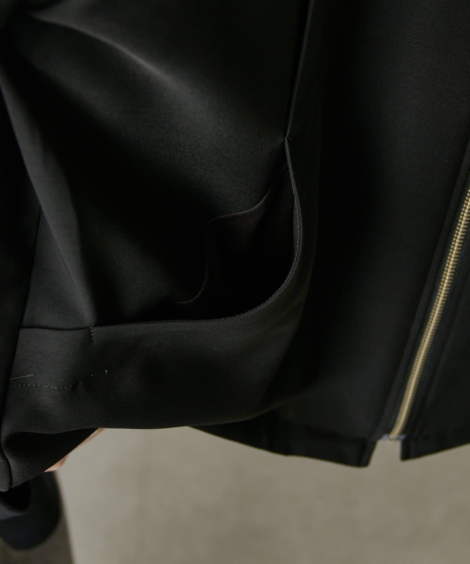 ・フロントジップ仕様で着脱しやすくモダンな印象に。ややショート丈に設定し、トレンド感のあるバランスに仕上げた一着。
