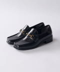 スクエアトゥがポイントのビットローファー。通常のスクエアトゥとは違い、よりスクエアで角ばった見た目に。