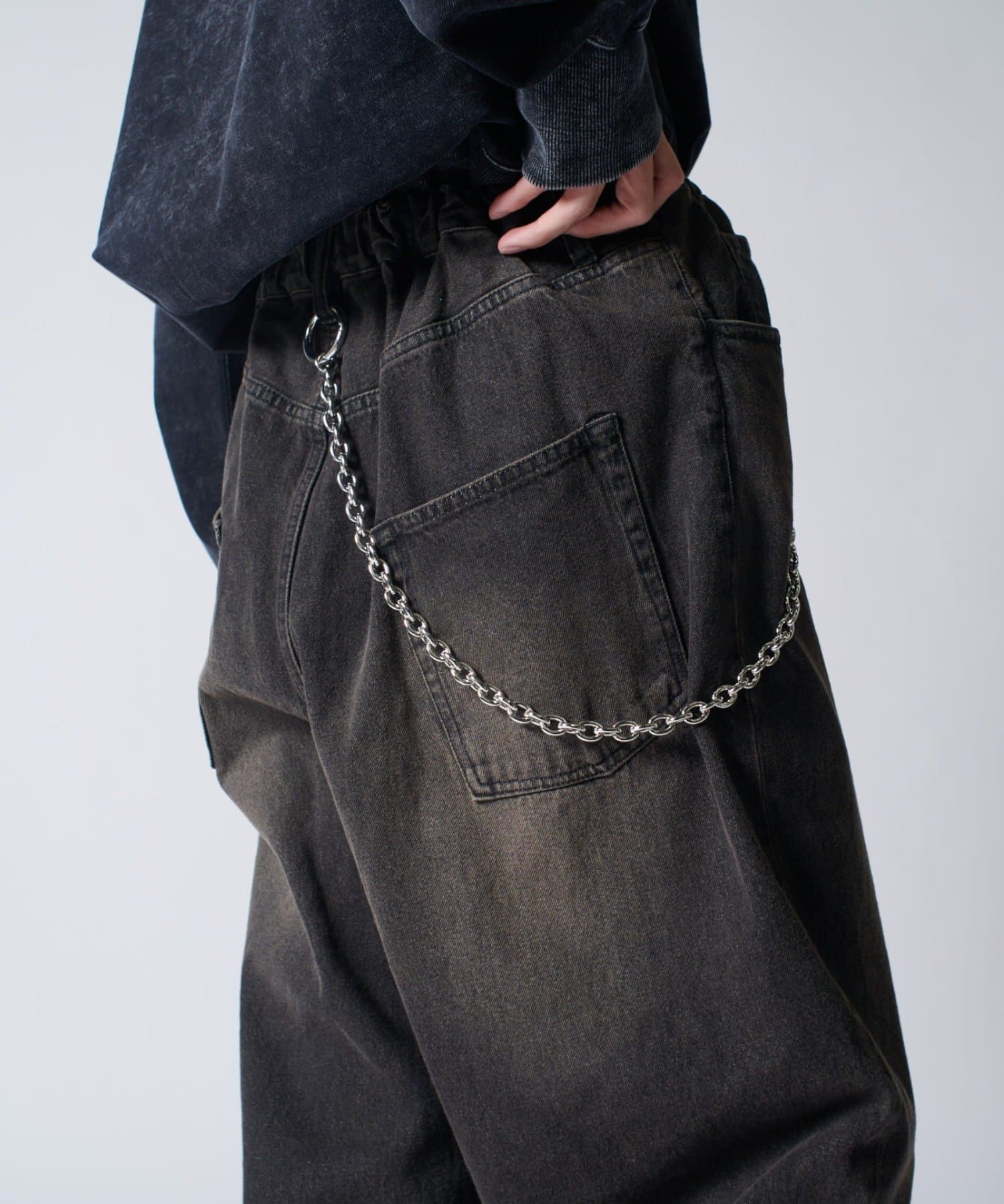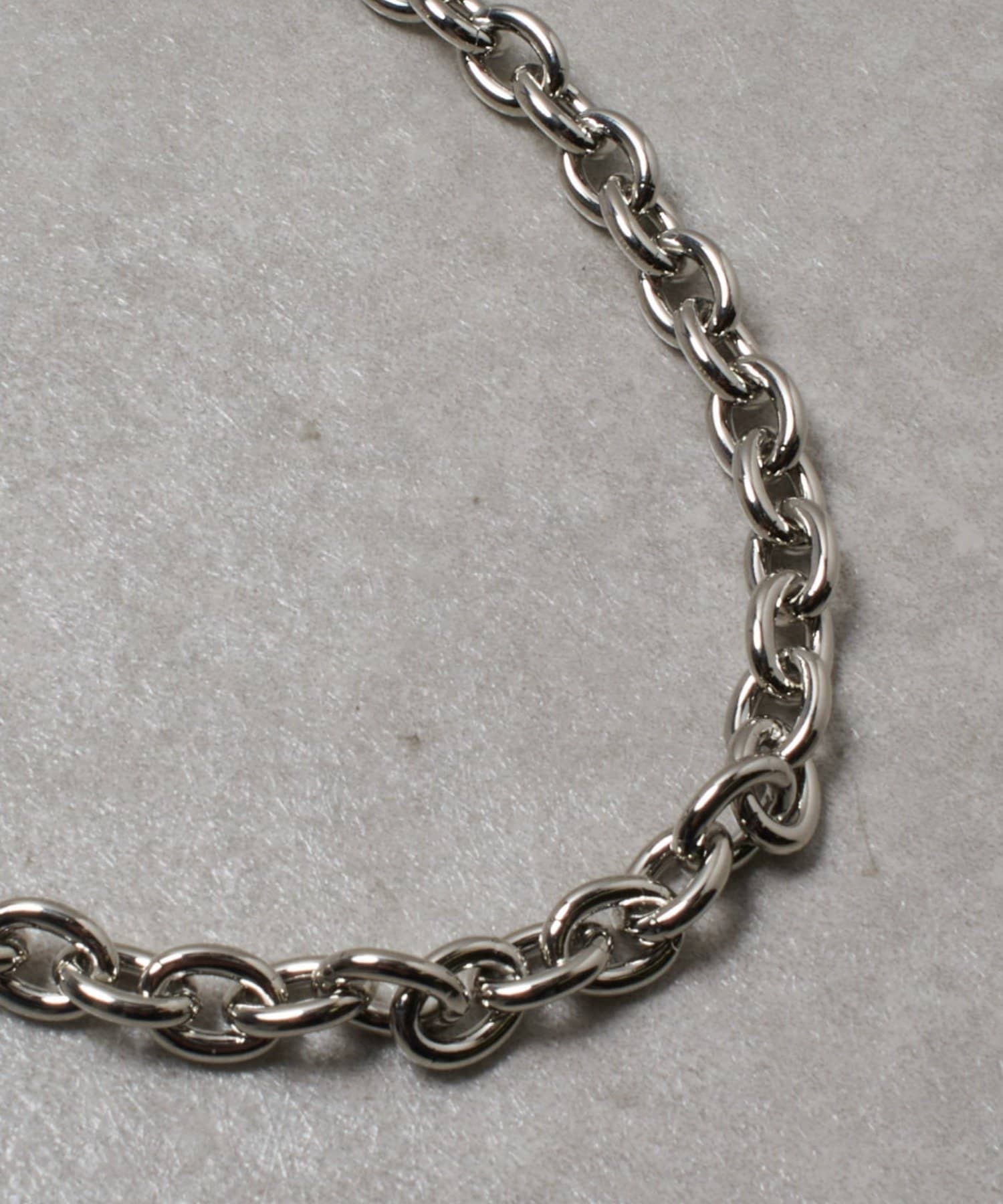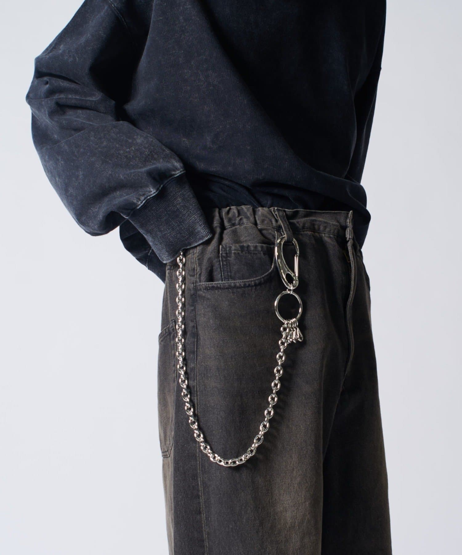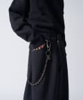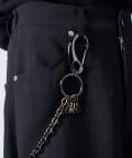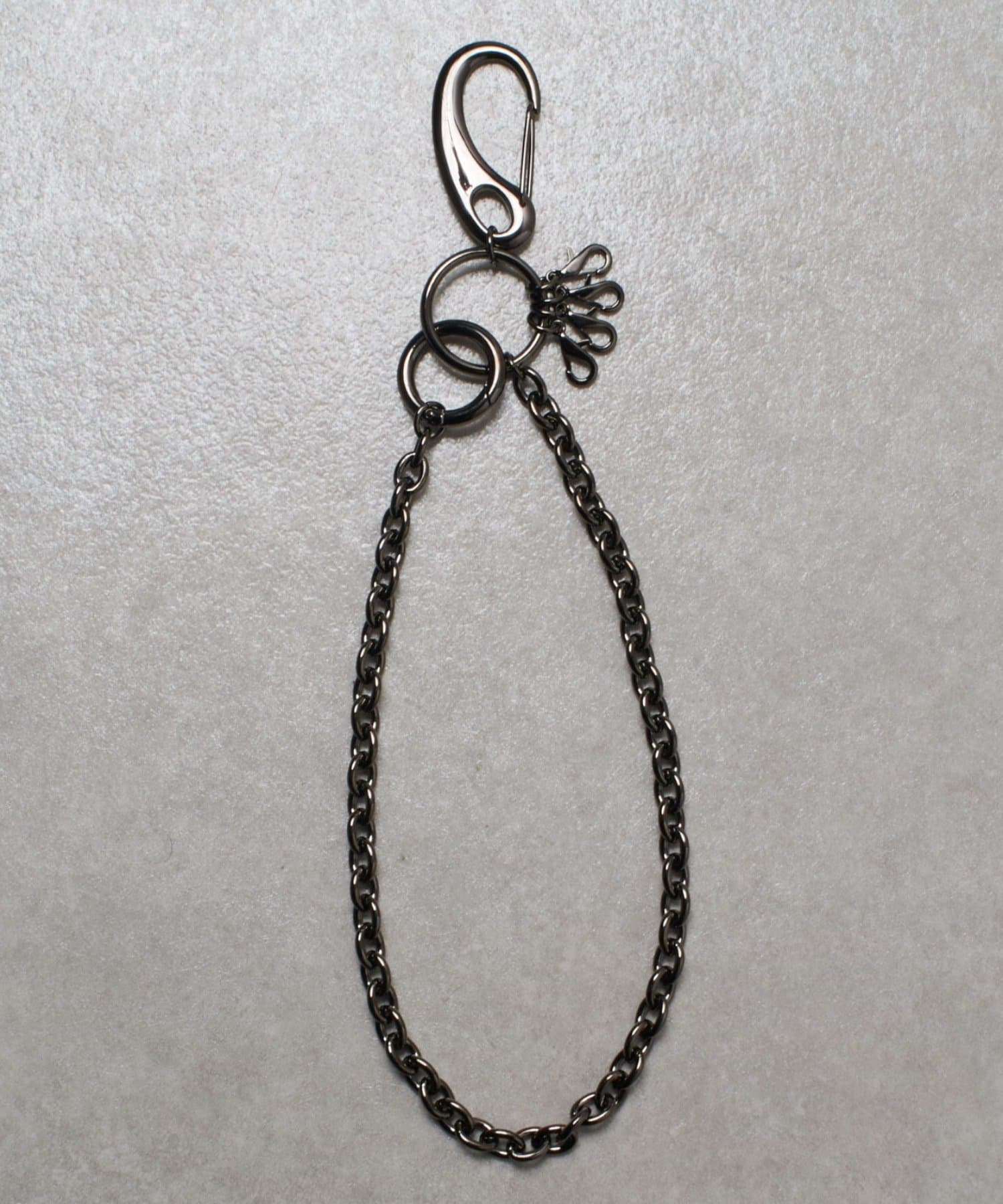 インパクトがありながらも、クリーンで上品な見た目がポイント。一つ一つのパーツを1から選び、組み合わせた、Ahでは初めてのウォレットチェーンです。フック部分は存在感のある楕円系のフックを採用。そこにつながった丸管には4つの小さいフックがついており、カギや、キーホルダー、チャームなどを取り付け可能。垂れ下がる様が船のアンカーのような大きめのチェーンを採用。今回はシルバーとブラックの2色展開。さりげないアクセントに使える拘りのアイテムです。