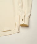 フロントがZIP仕様になったこちらのZIPシャツ。ZIPはCULLNIを象徴とする上品なゴールドのZIPを使用。フロントには、ゴールドのボタンも配置しさりげないアクセントに。