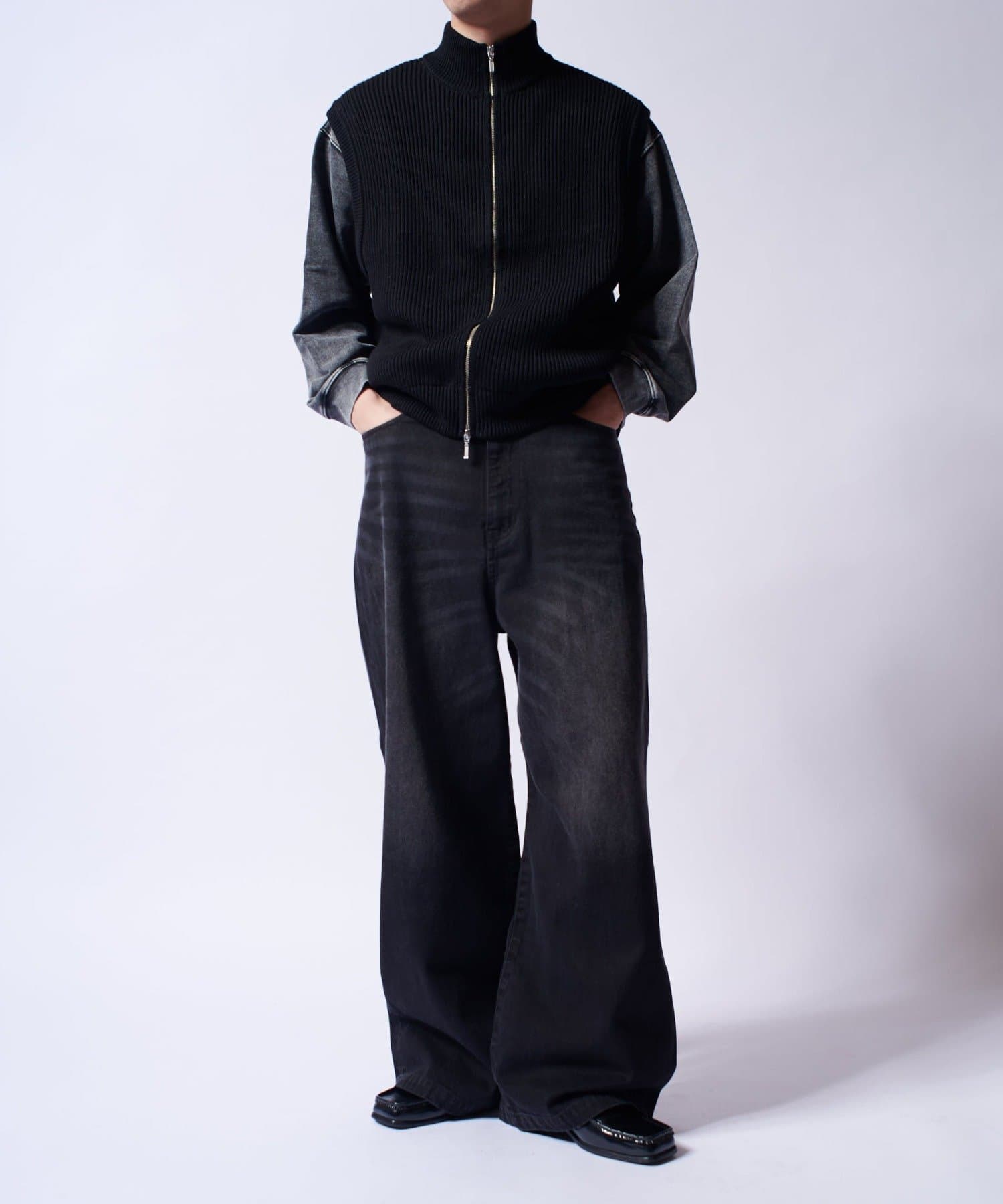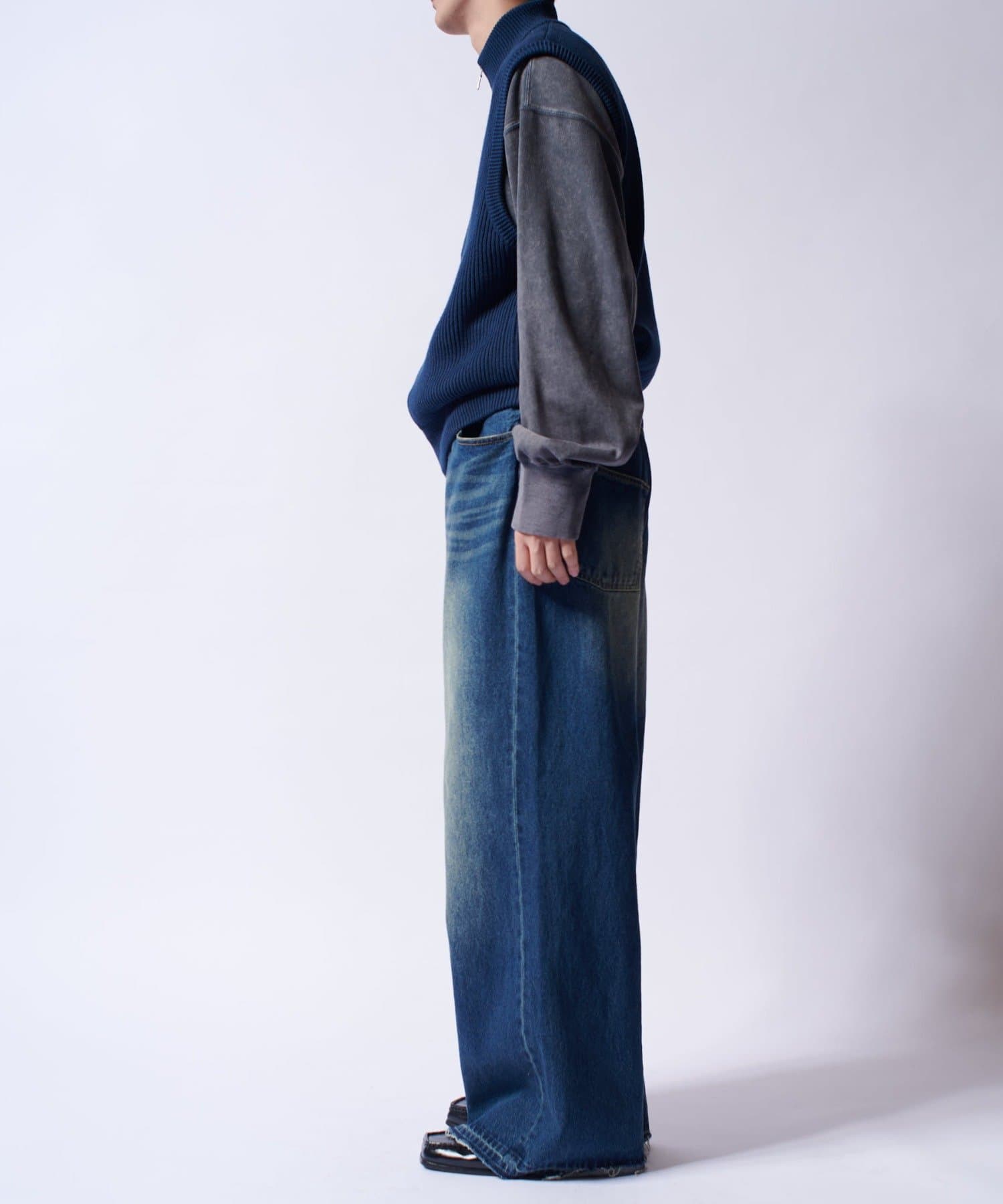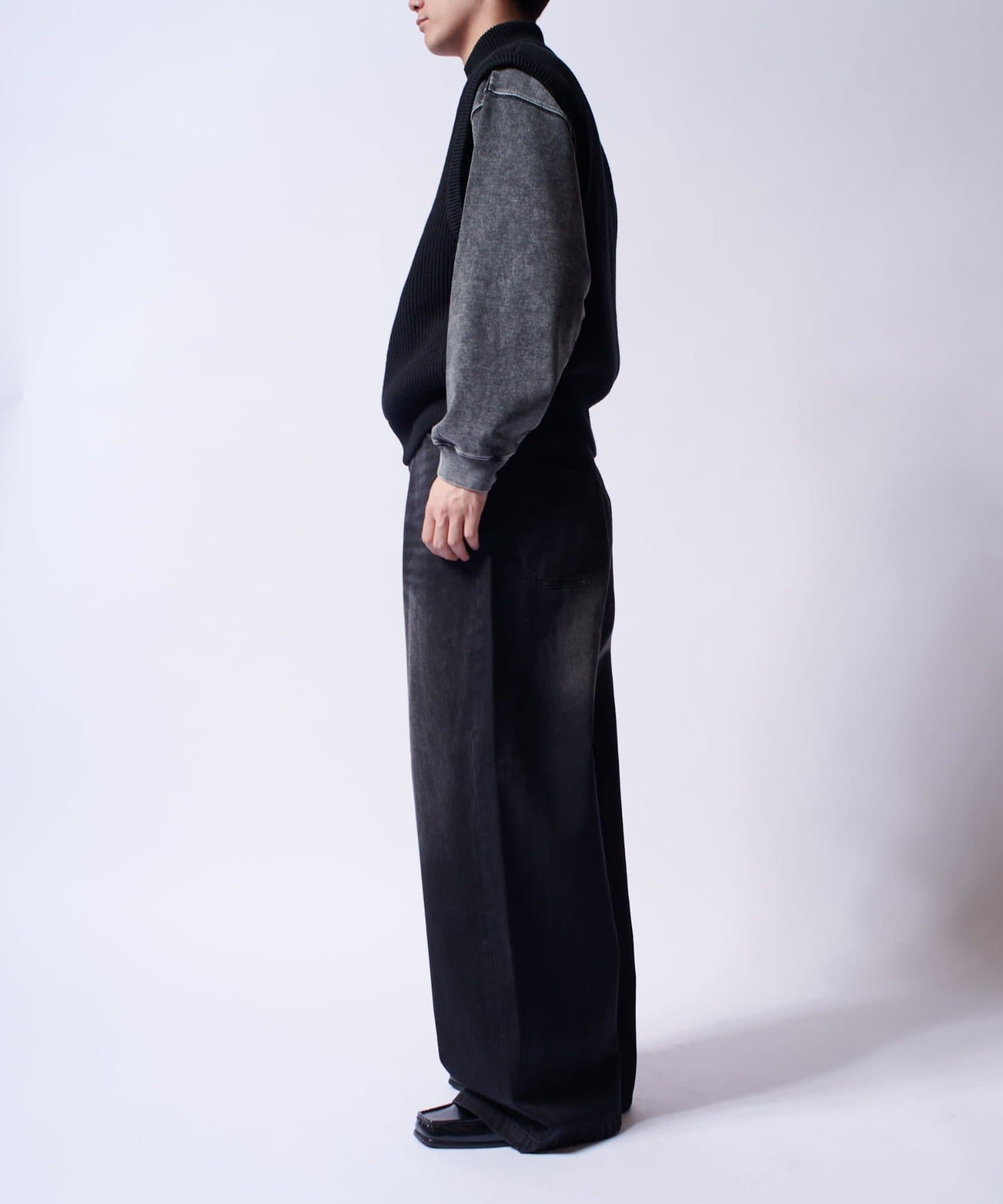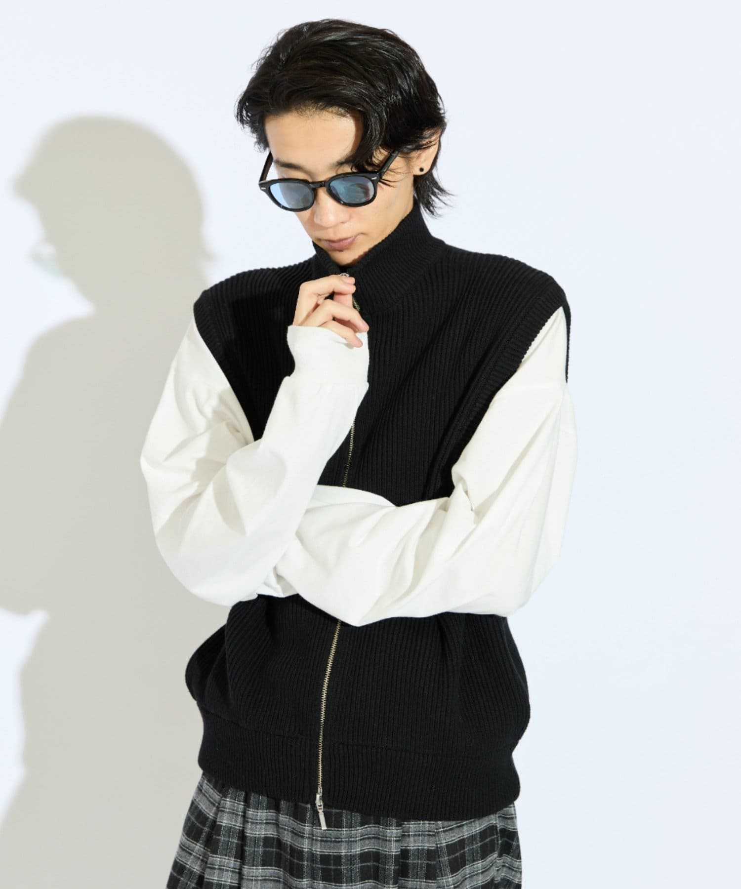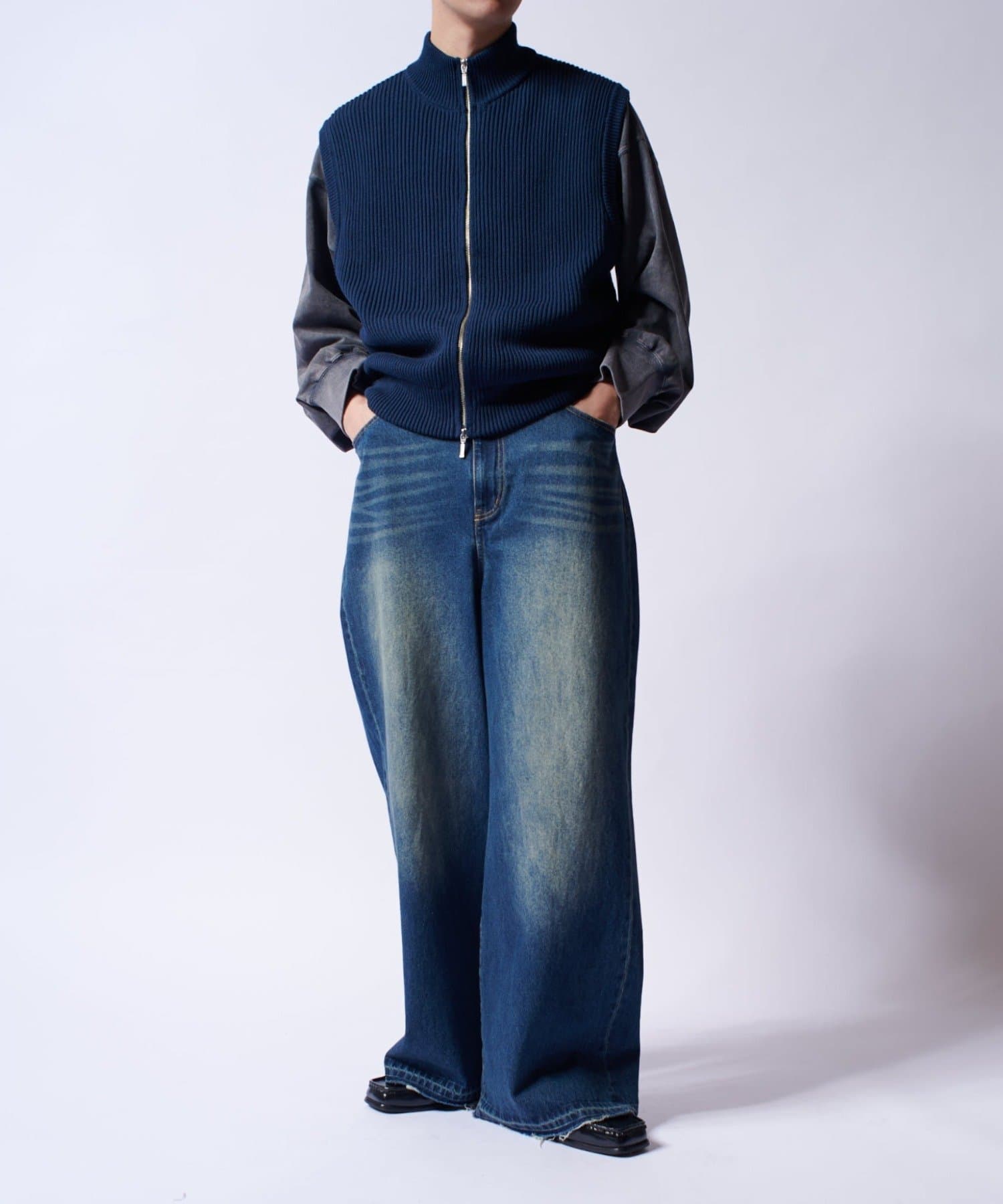 レイヤードしやすいニットベストなので、Tシャツやスウェットの上から、逆にアウターのインナーして頂くことも可能。