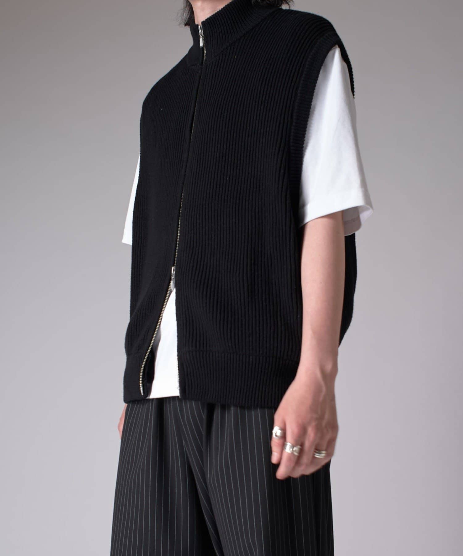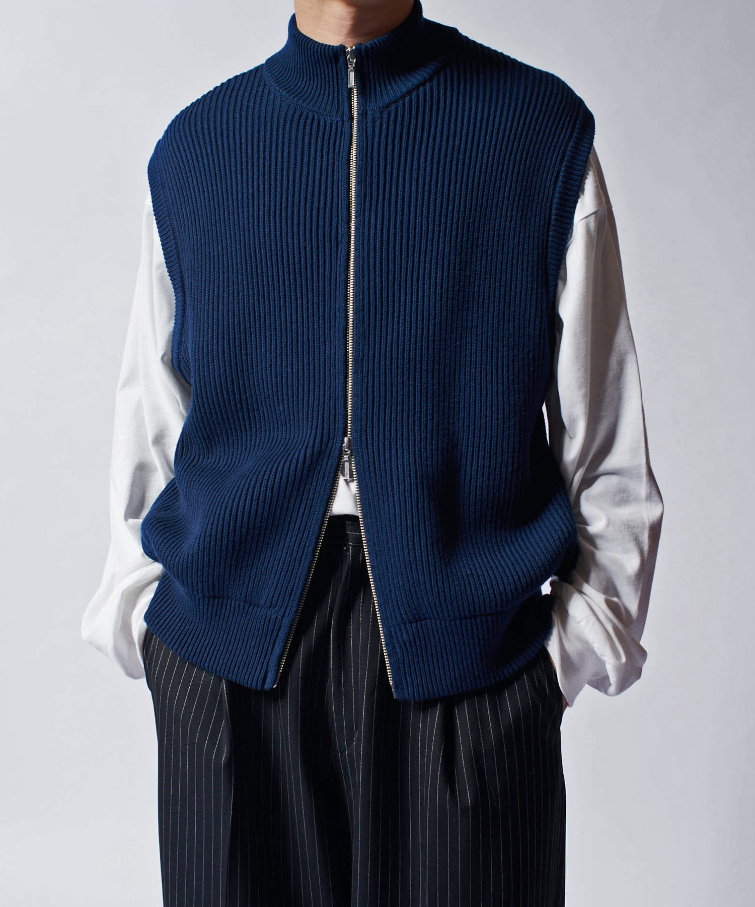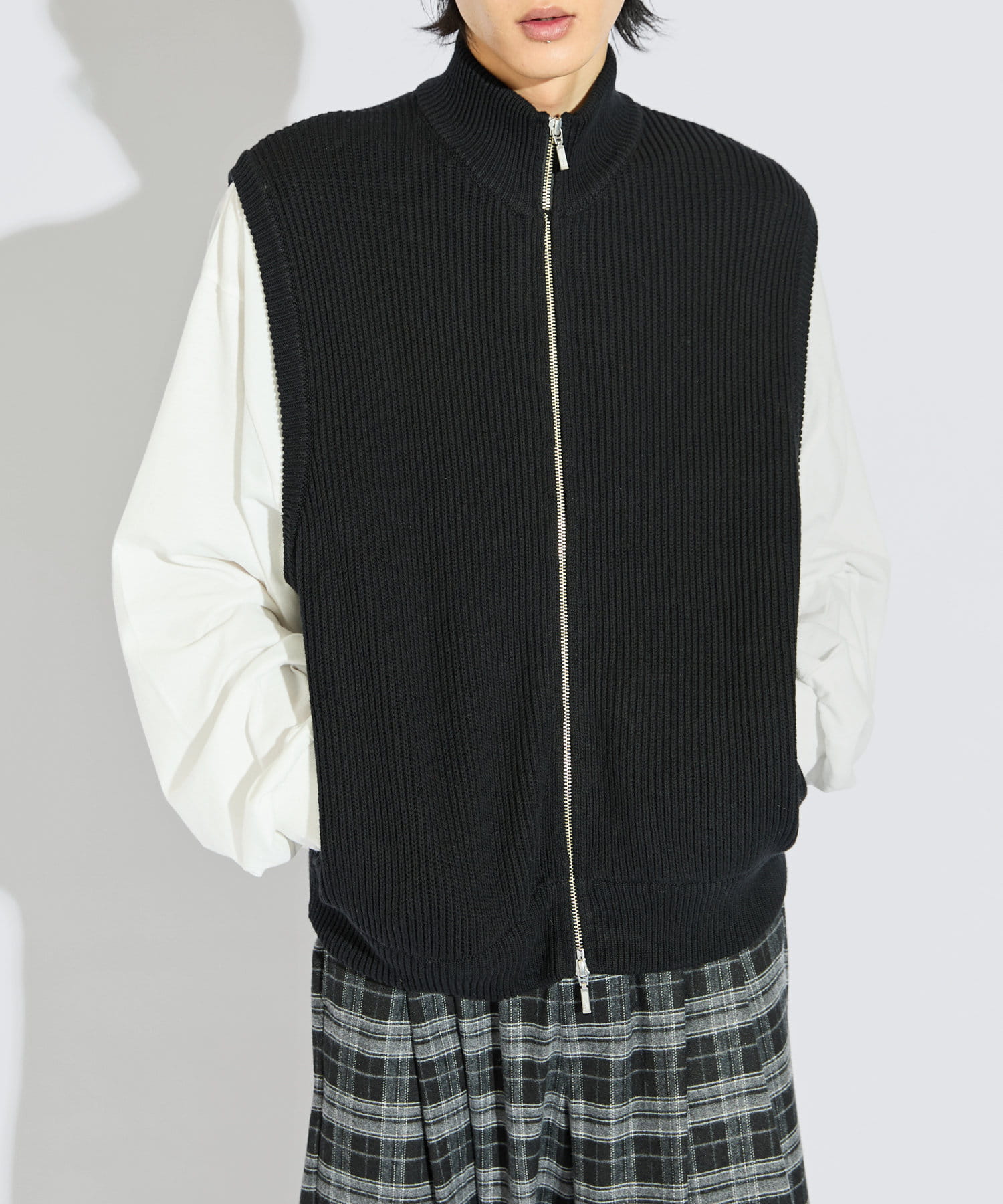 TシャツやロンTの上からサラッと合わせて頂けるちょうどいいサイズ感。ダブルZIPなので、お好みのスタイルで調整可能。