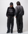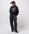 フロントの刺繡ロゴが特徴的なスウェットプルオーバーなので、ストレートシルエットのスラックスやデニムパンツと組み合わせたミニマルなキレイめカジュアルスタイルがオススメ。