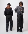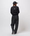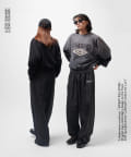 着丈に対して身幅を広くとったワイドシルエット。ラグランスリーブで、アームホールを広くとっており、着用した際にに丸みを帯びた、80'sのスウェットを彷彿とさせるレトロなシルエットがポイント。