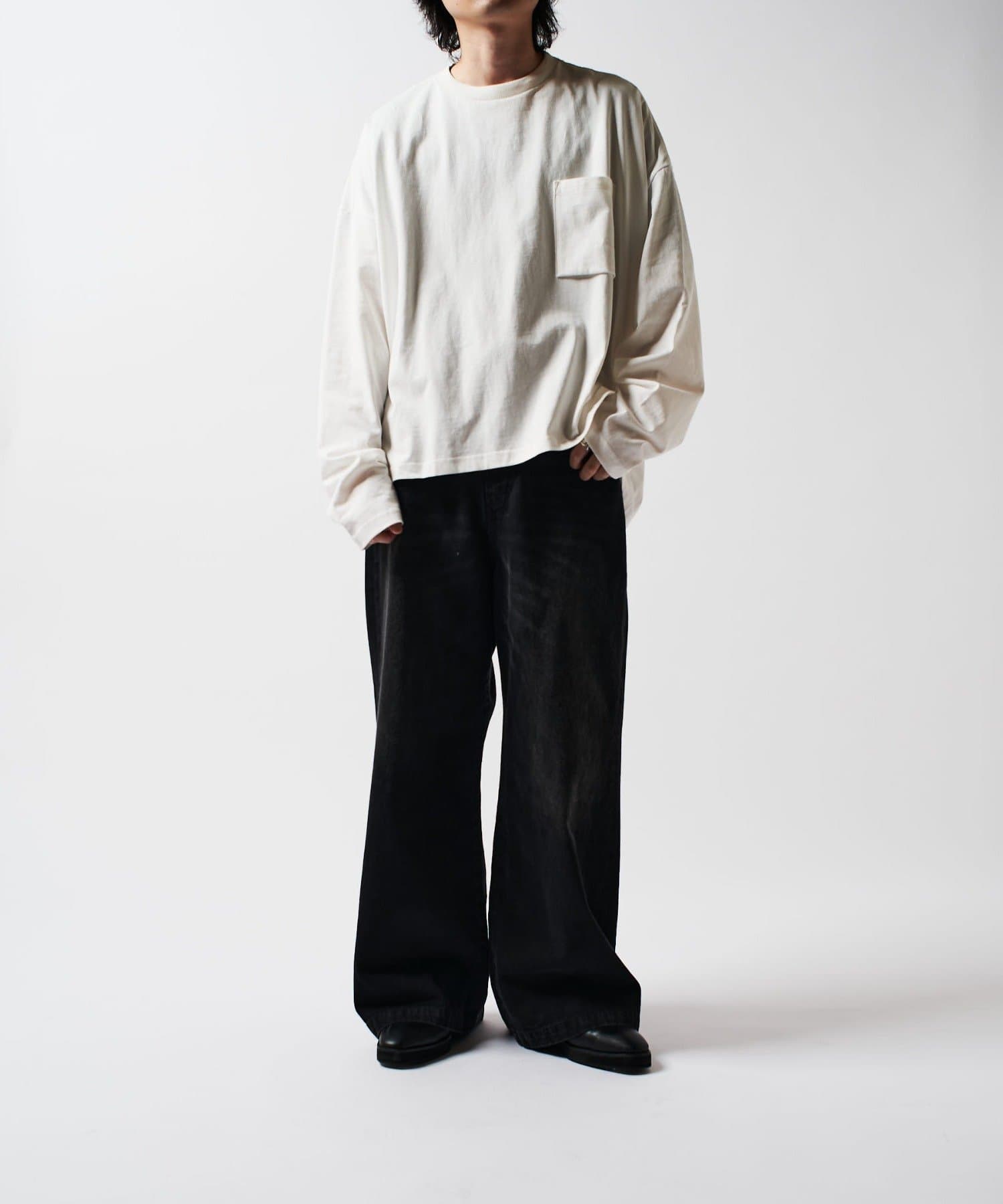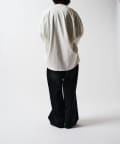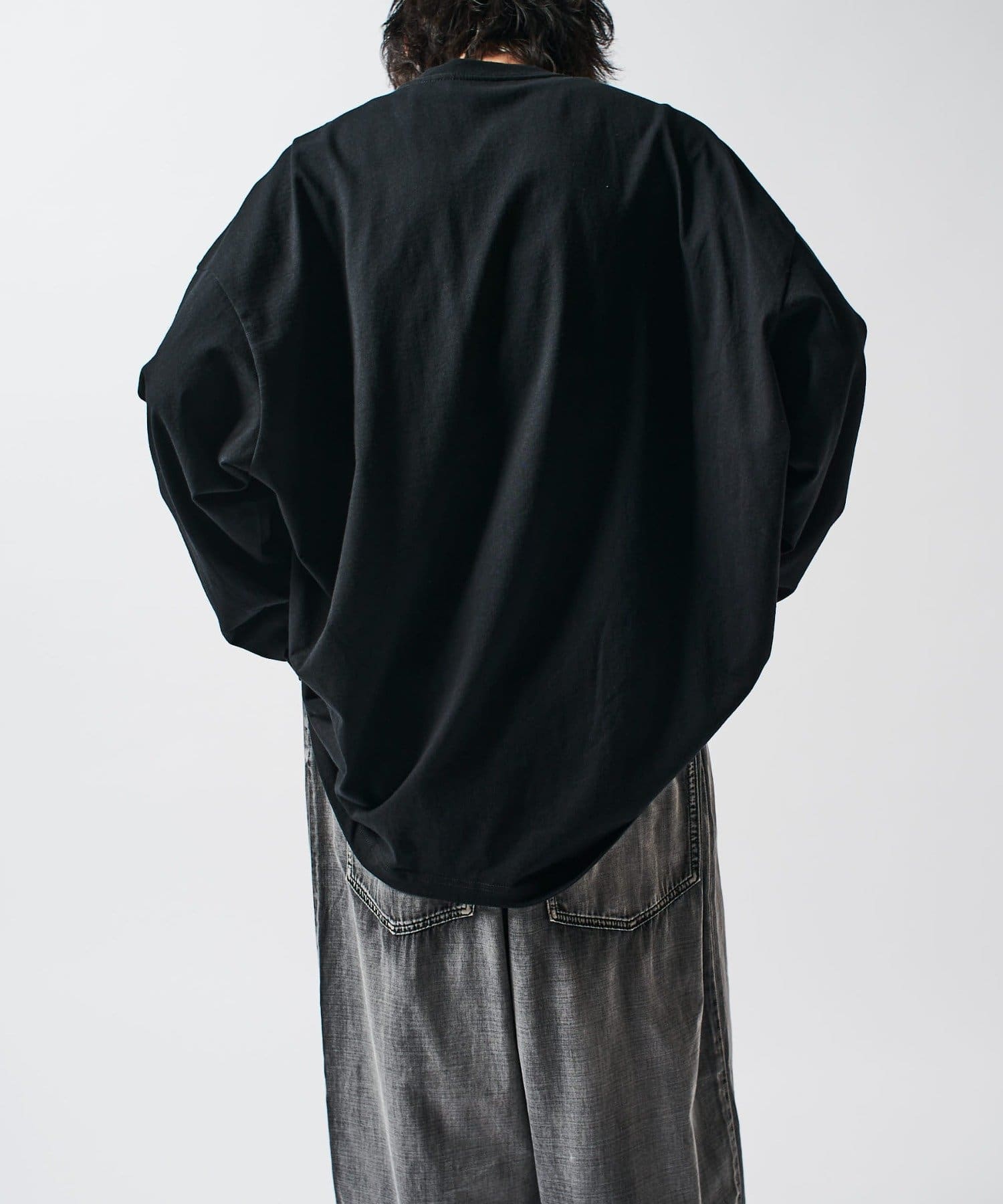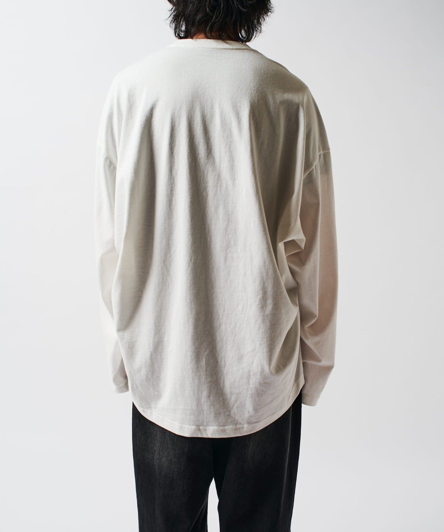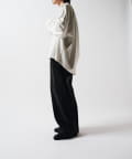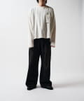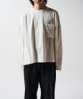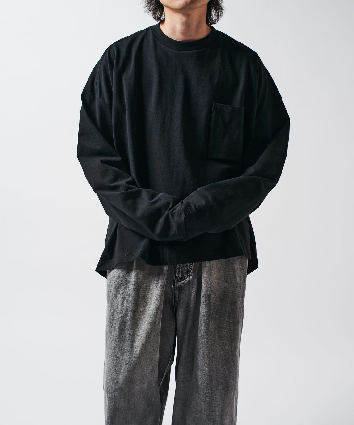 着用したときのシルエットはどことなく上品でモードな空気感を演出してくれます。 四角でミニマルなポケットは折り返しのマチ付きで機能性を向上し、袖には簡単なスリットのサムホールを装備しています。